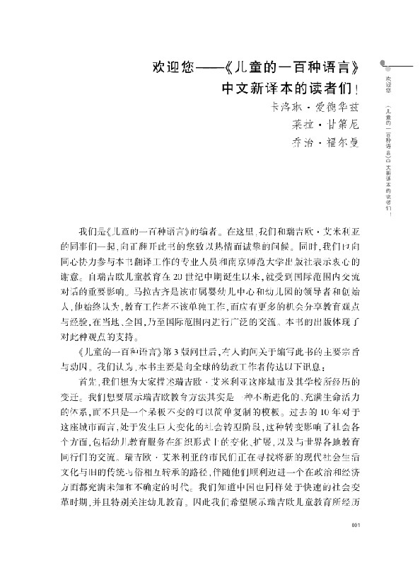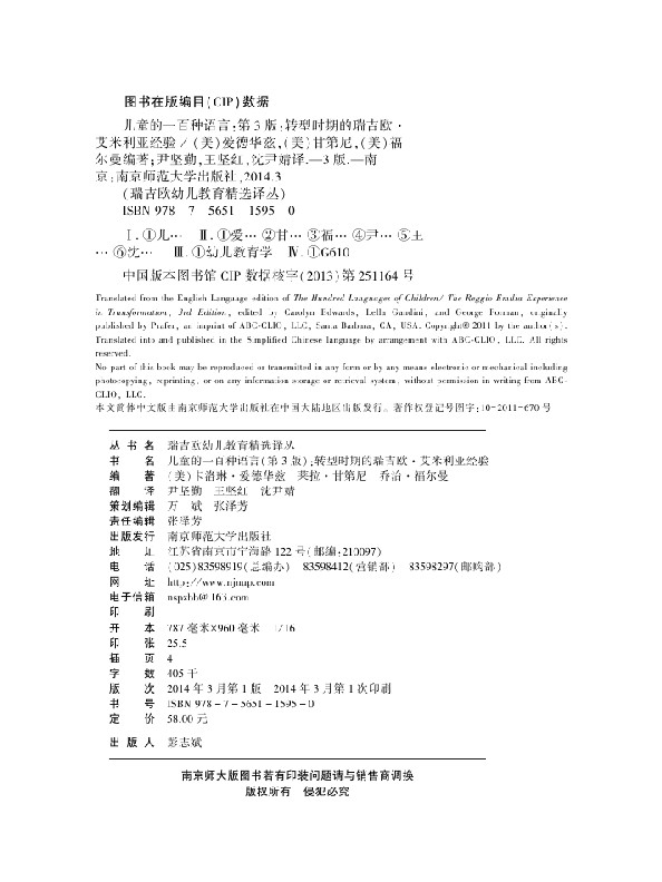 儿童的一百种语言:转型时期的瑞吉欧?艾米利亚经验(第3版)
