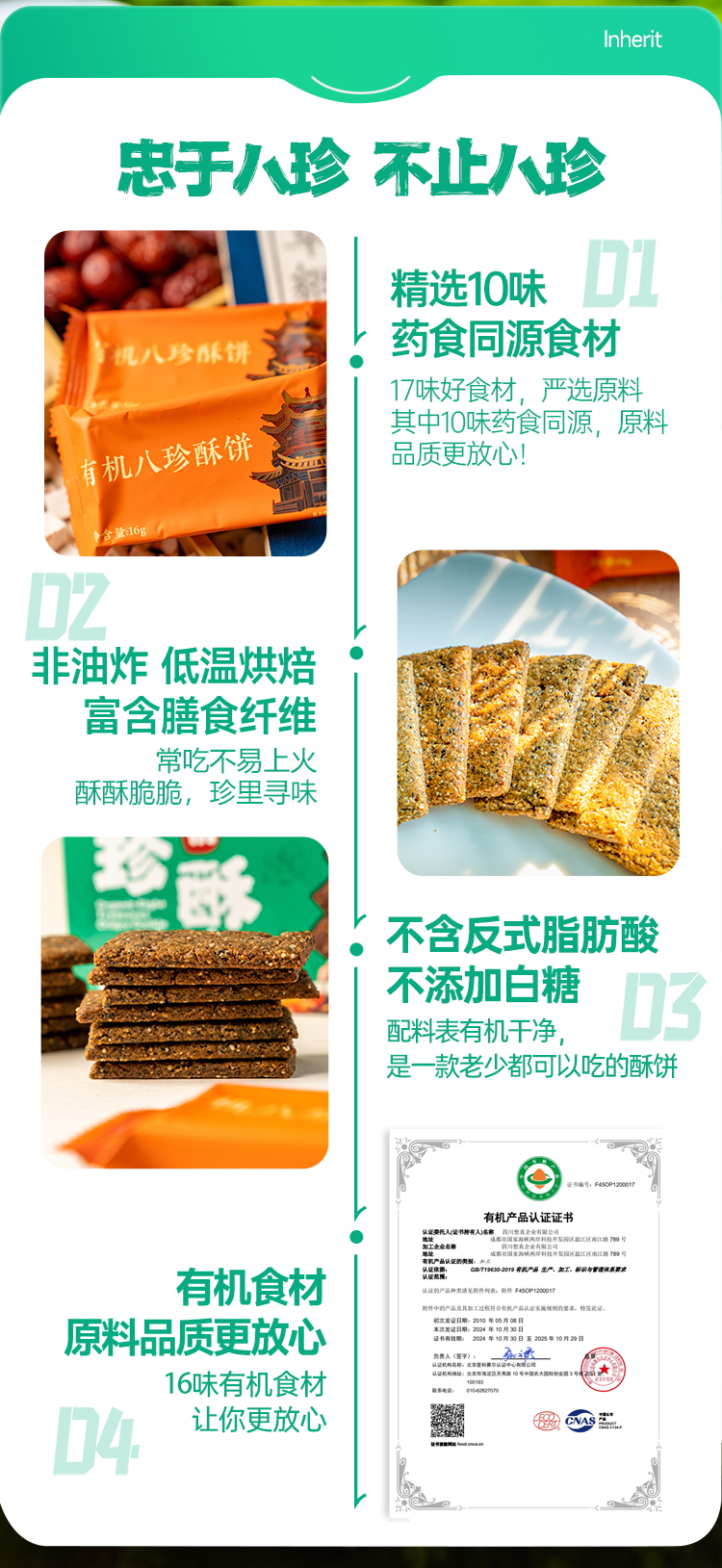 想真有机八珍酥饼干非油炸糕点健康办公室小零食便携即食粗粮点心