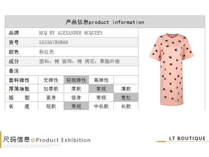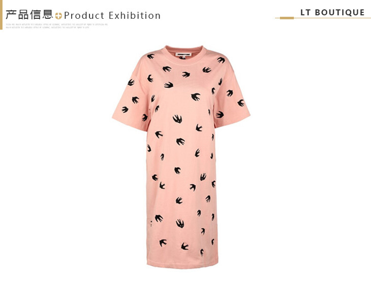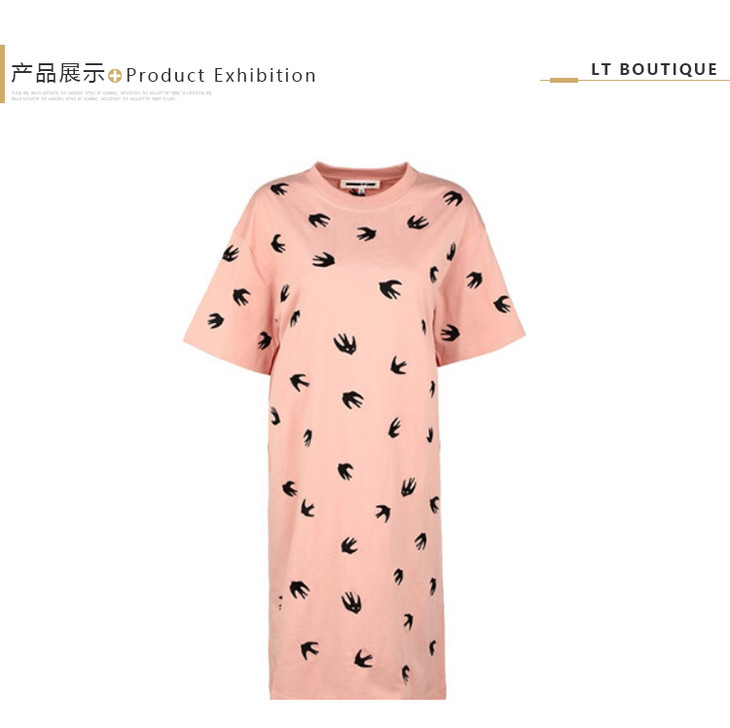 MCQ 麦昆 年秋冬新品女裙粉红色飞燕刺绣棉质宽松连衣裙 粉色 583307 ROR60 5701