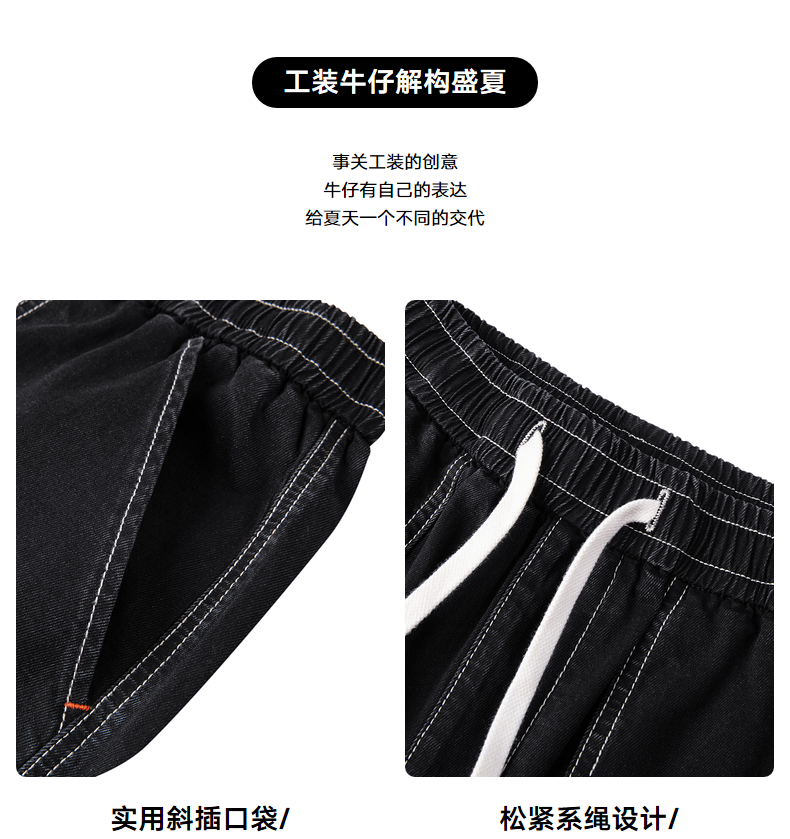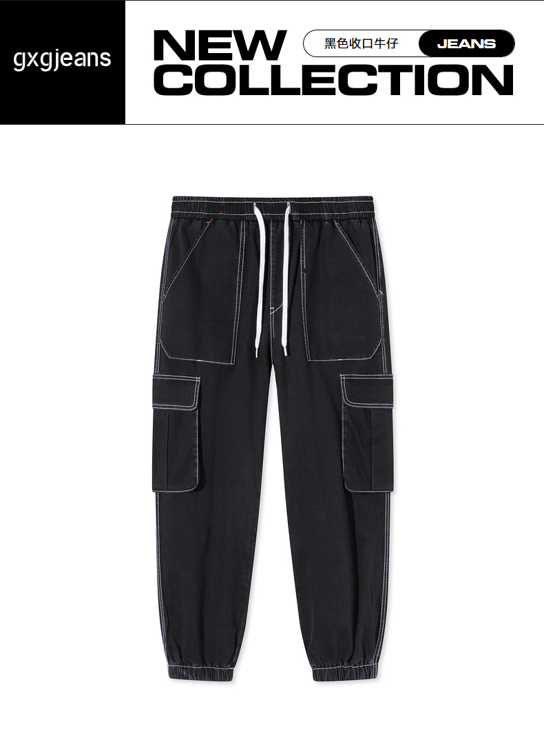 gxgjeans男装夏季黑色撞色明线设计热卖收口牛仔长裤JD1050251E