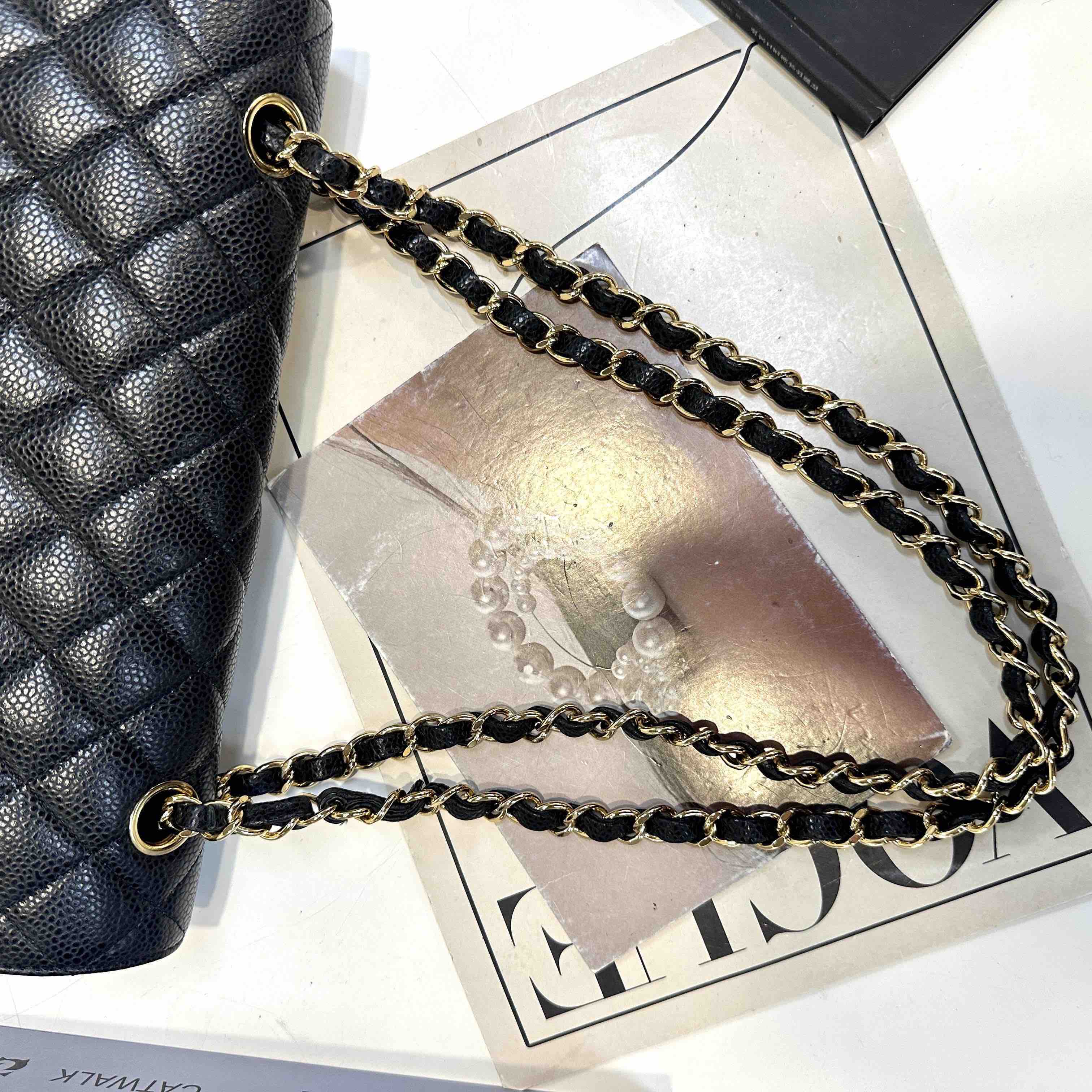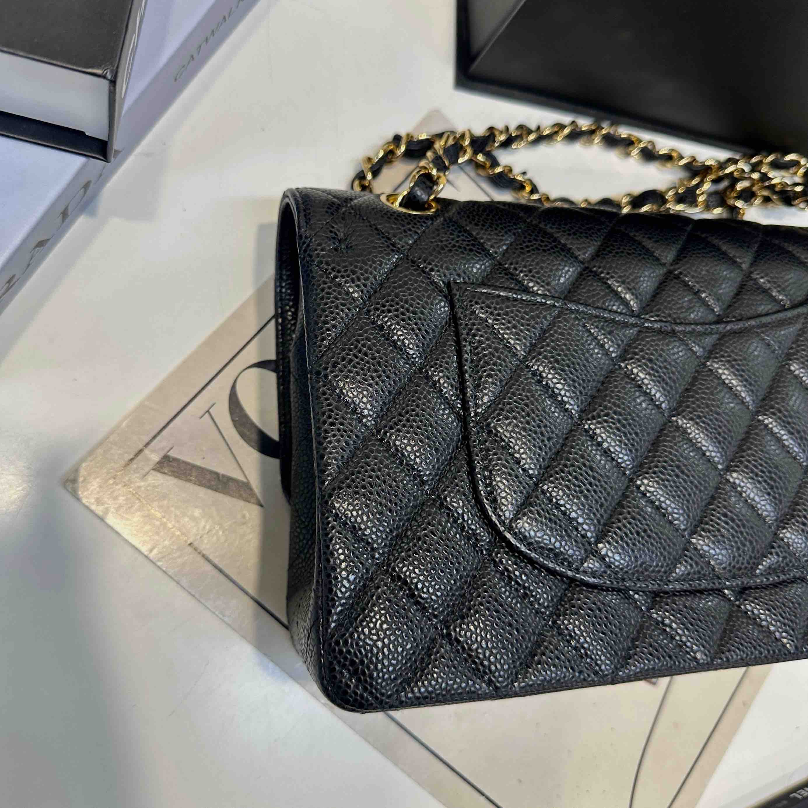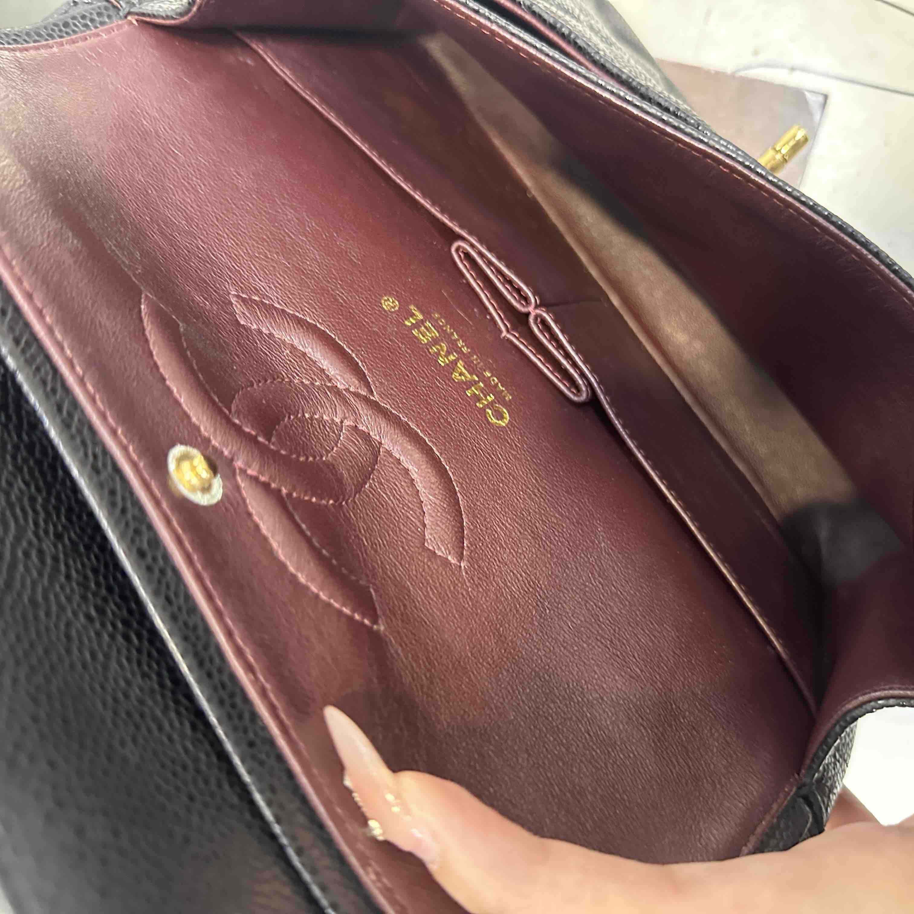 【商品详情】正品二手 CHANEL cf 中号 黑金 荔枝纹牛皮 斜挎包🧚🏻♀️97新 25x15 镭射19开 配件:卡、盒、防尘袋。包身轻微使用感 内翻盖轻微使用磨损 整体状态好