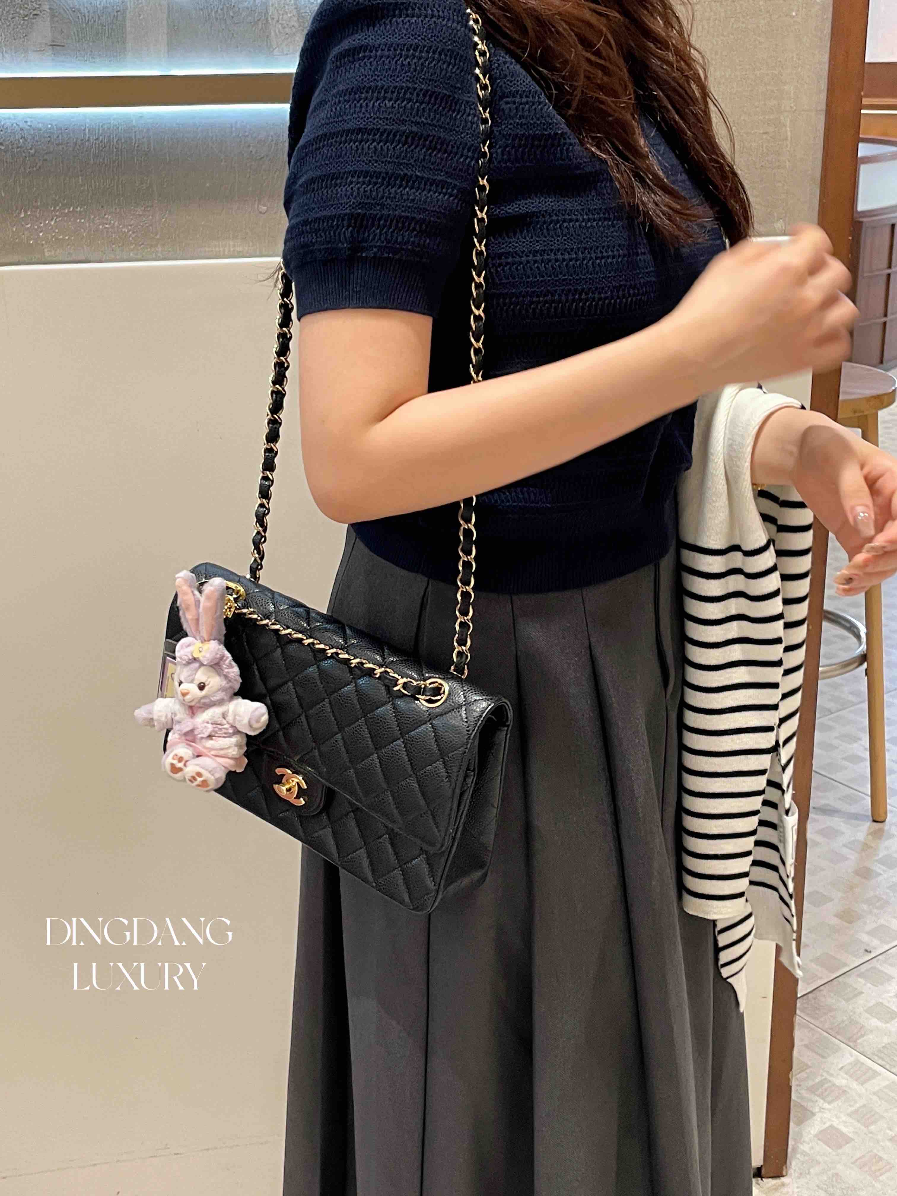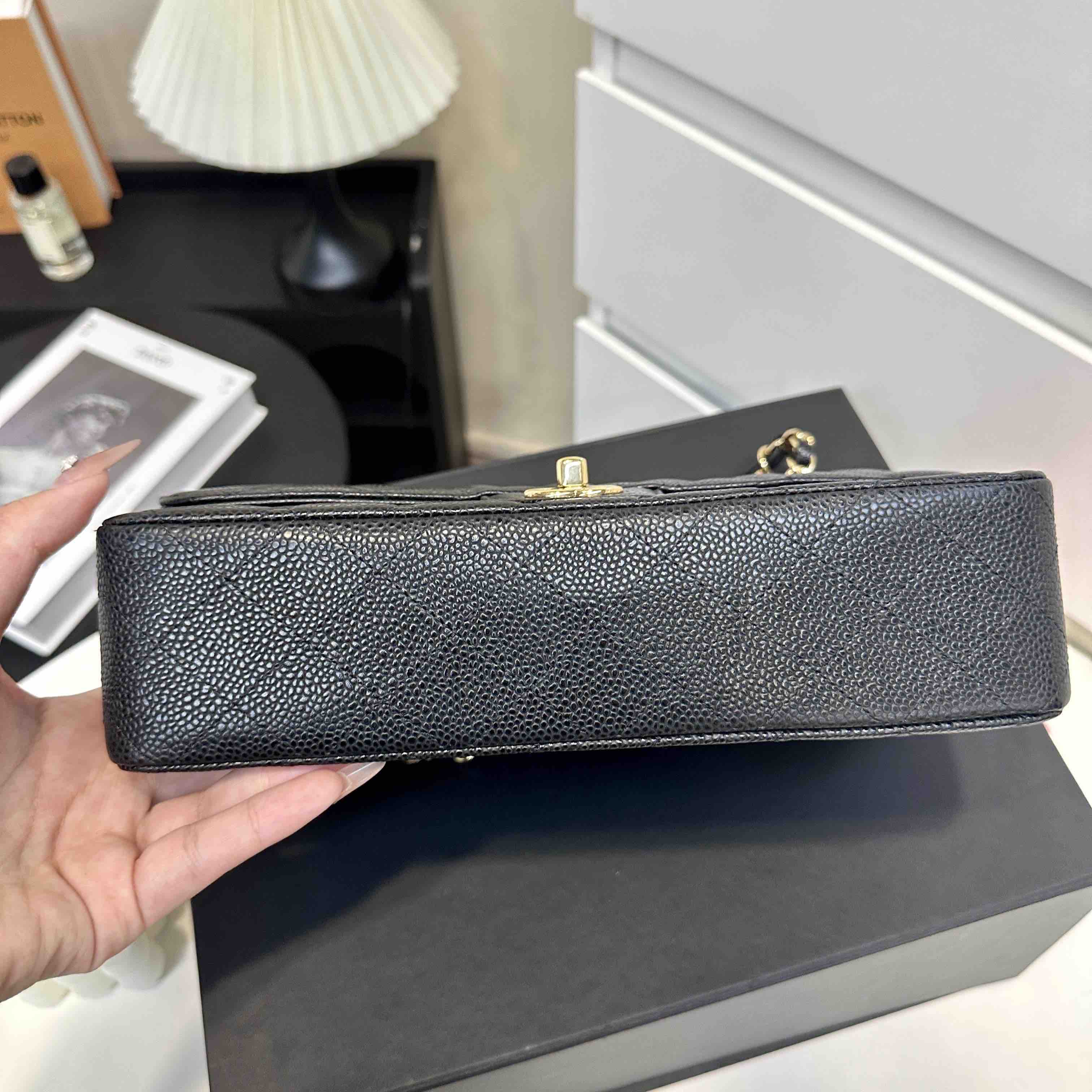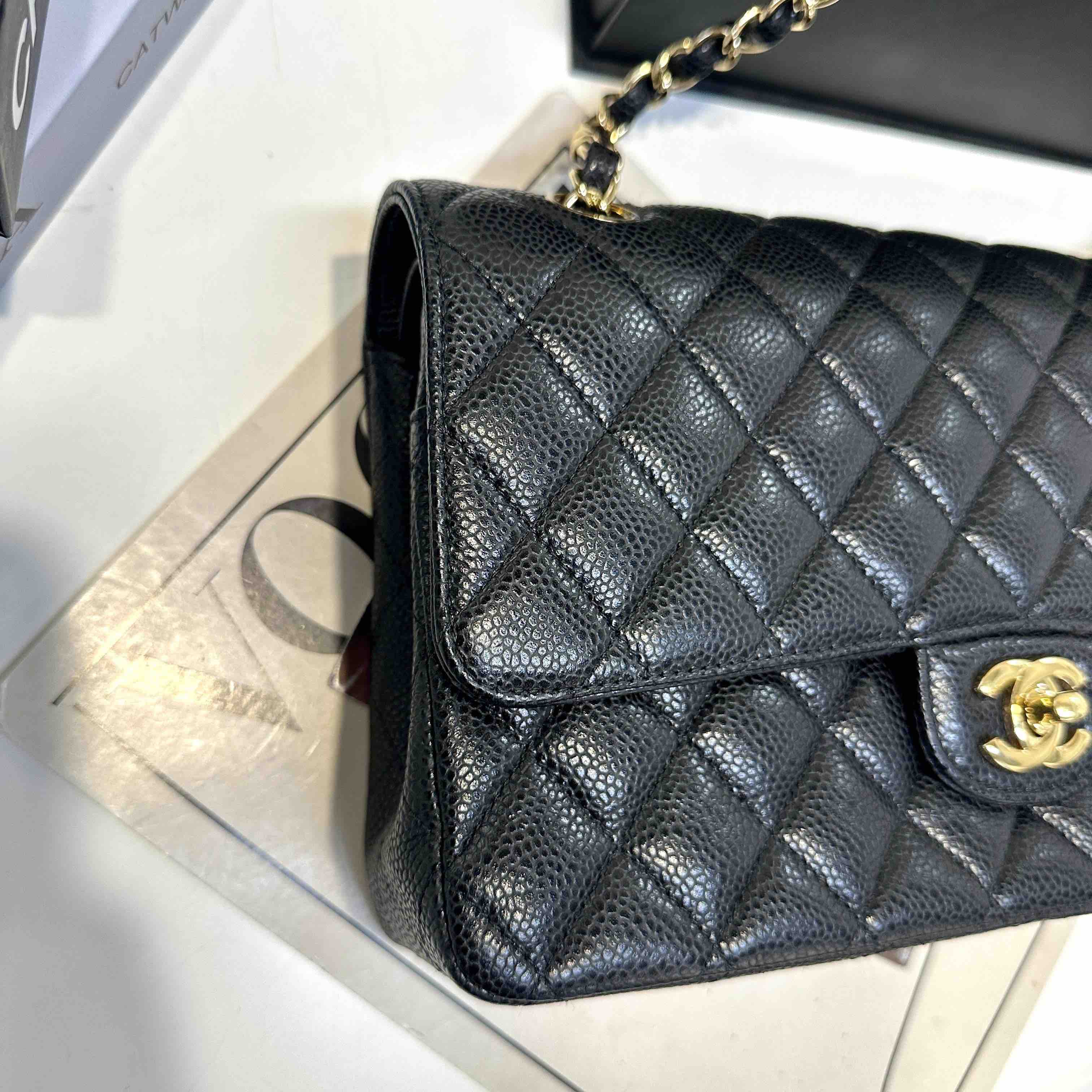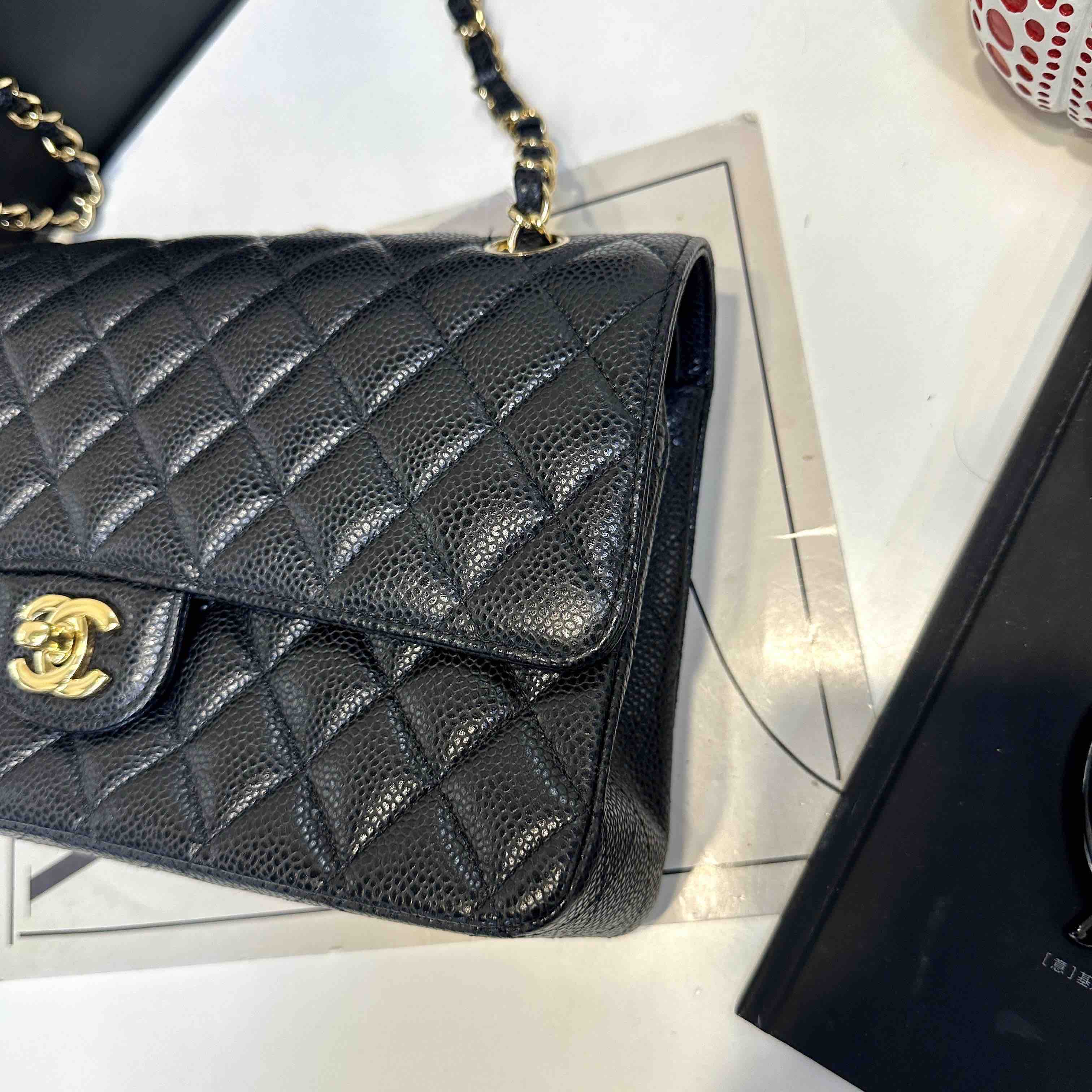 【商品详情】正品二手 CHANEL cf 中号 黑金 荔枝纹牛皮 斜挎包🧚🏻♀️97新 25x15 镭射19开 配件:卡、盒、防尘袋。包身轻微使用感 内翻盖轻微使用磨损 整体状态好