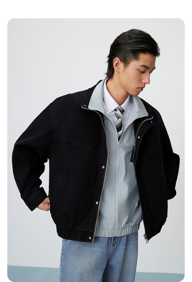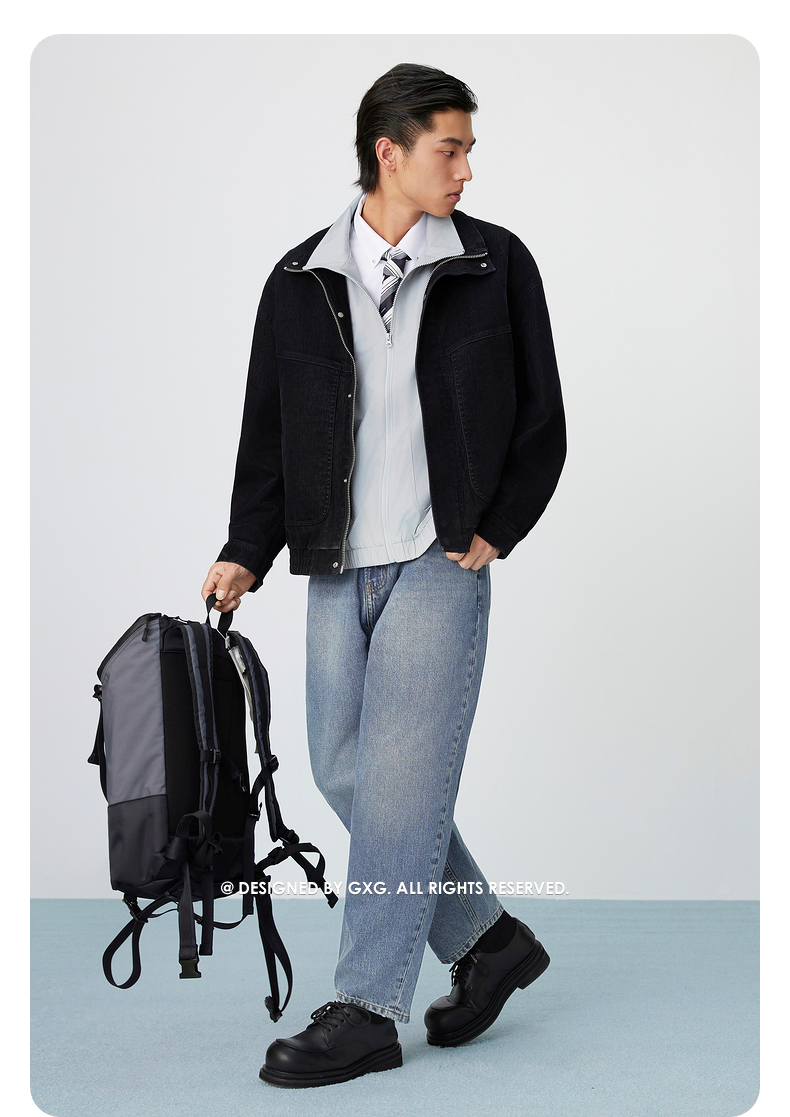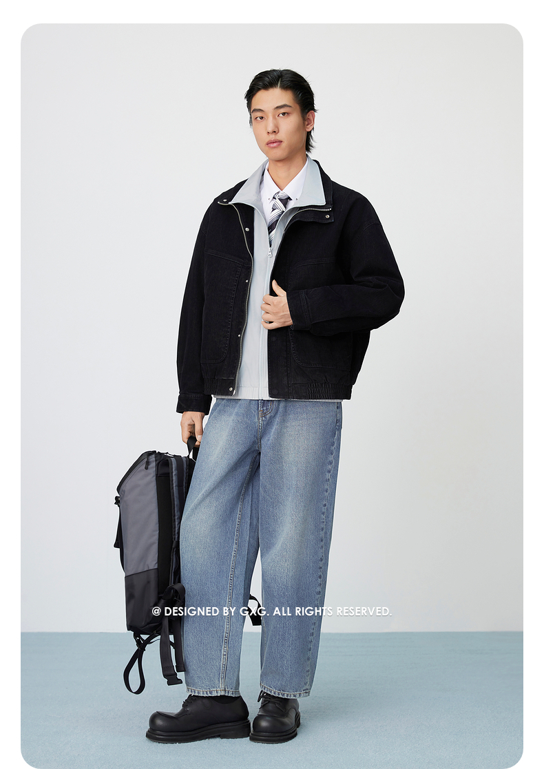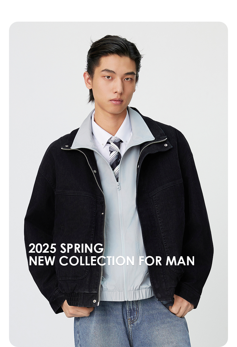 GXG男装 微肌理时尚通勤商务设计感简约立领夹克外套 25年春热卖