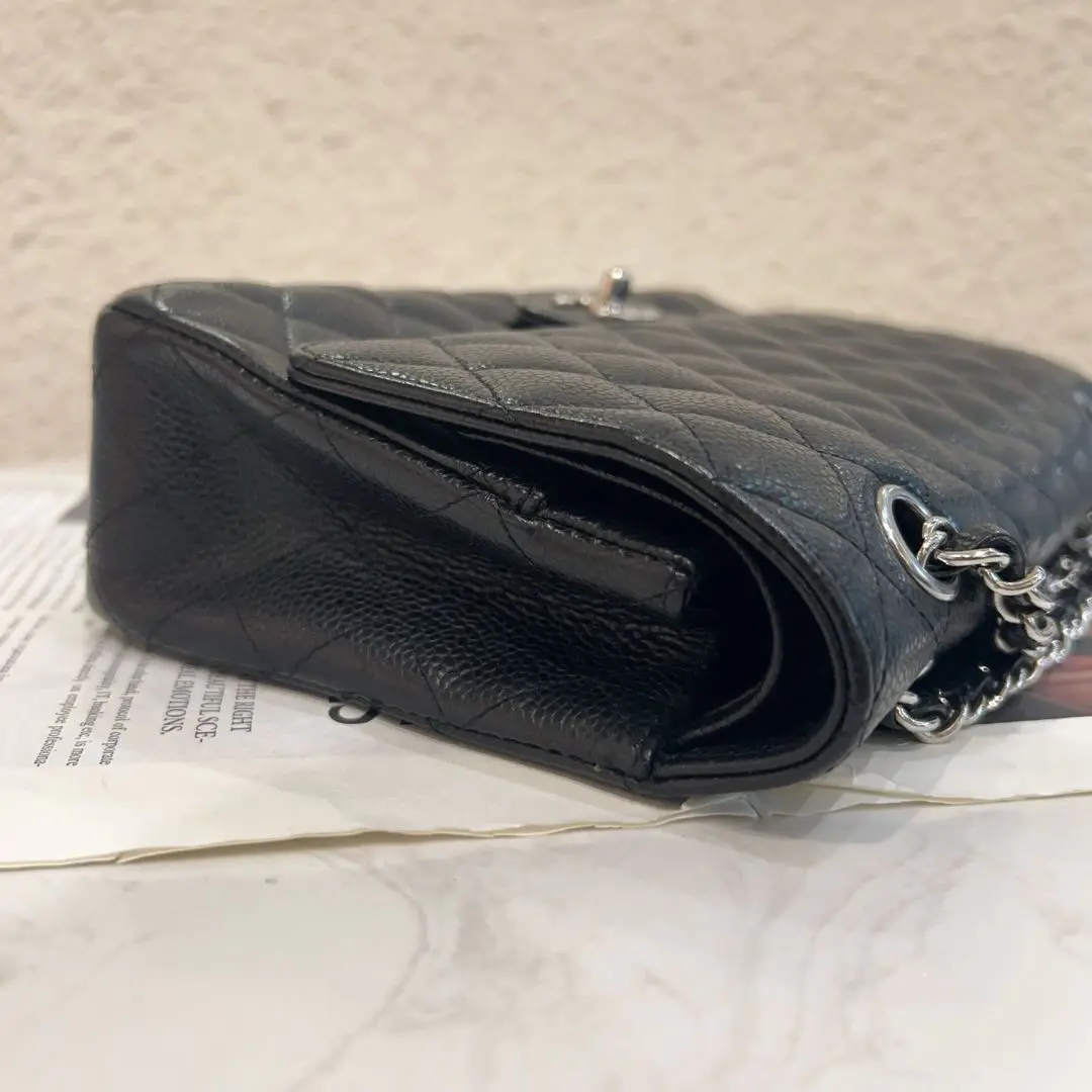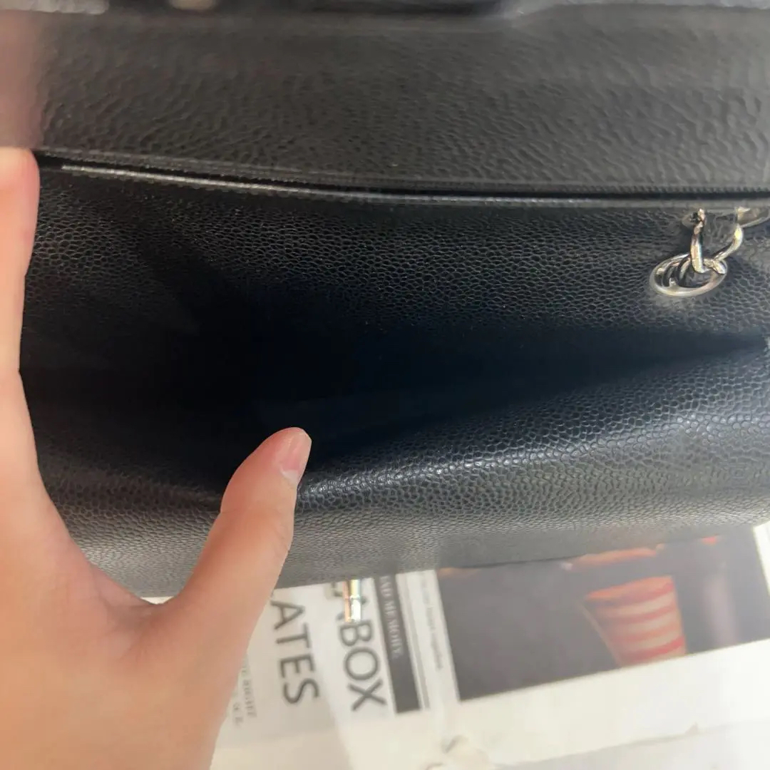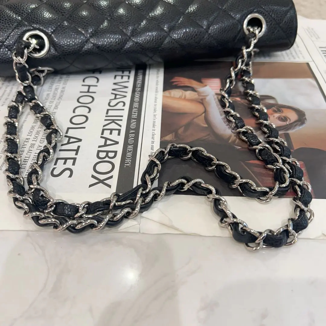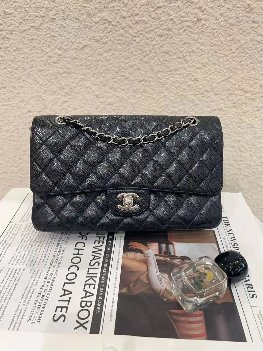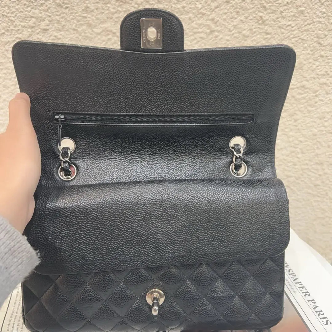 正品二手 Chanel CF 中号 黑银 荔枝纹牛皮 斜挎包🥕95新 25×14 镭射13开。 内里正常使用感。永恒的经典
