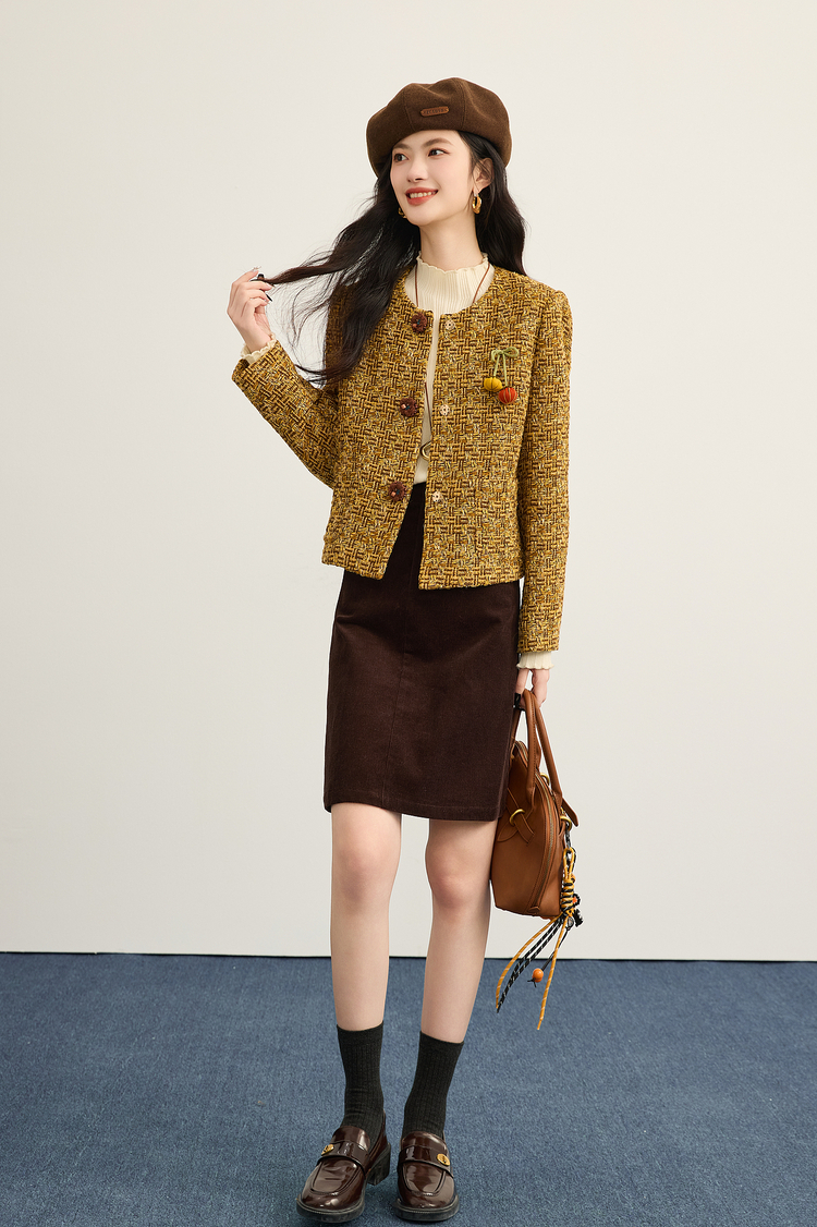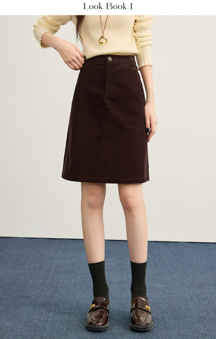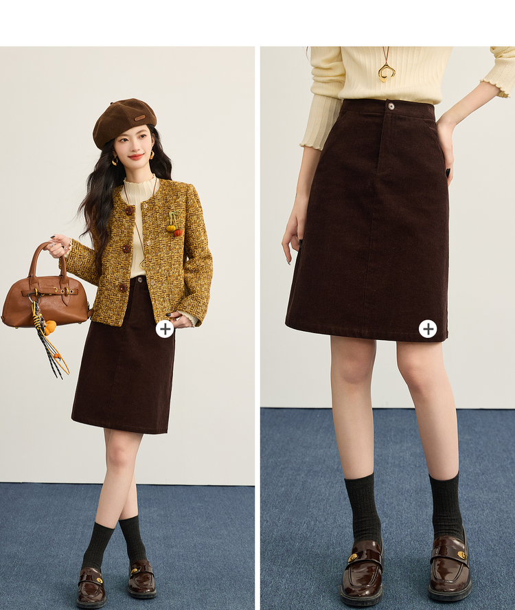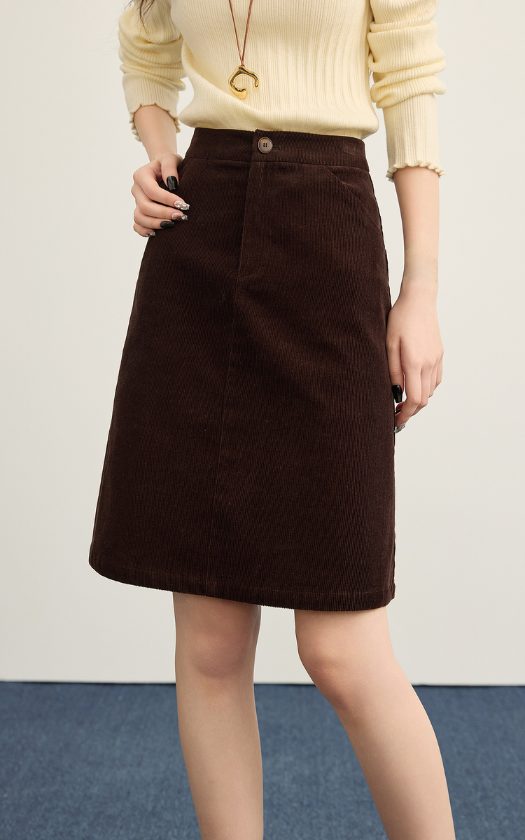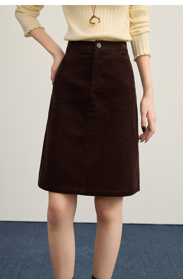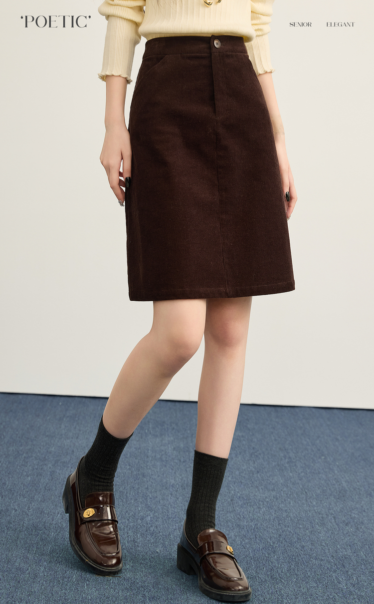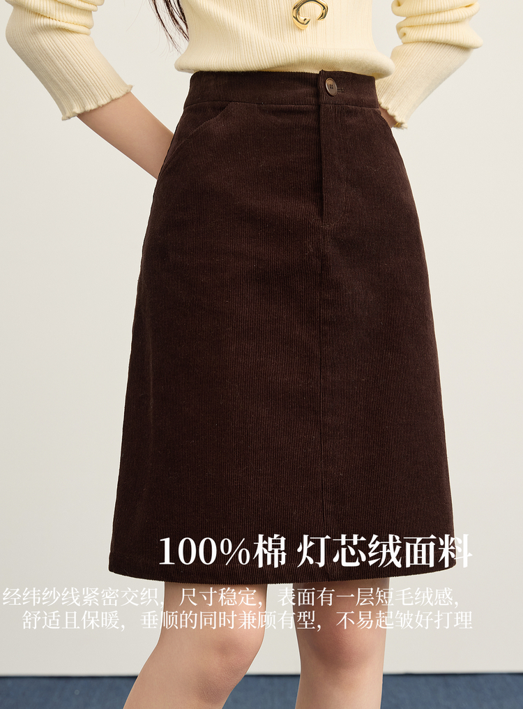 【12/10新品6折】熙世界复古咖色灯芯绒半身裙女2025秋冬新款高腰显瘦a字包臀半裙