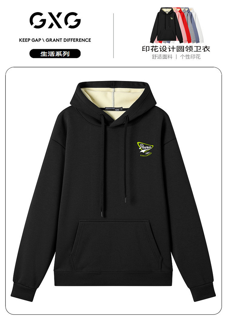 GXG男装 多色字母绣花简约连帽卫衣男士24年秋季热卖G24X313013