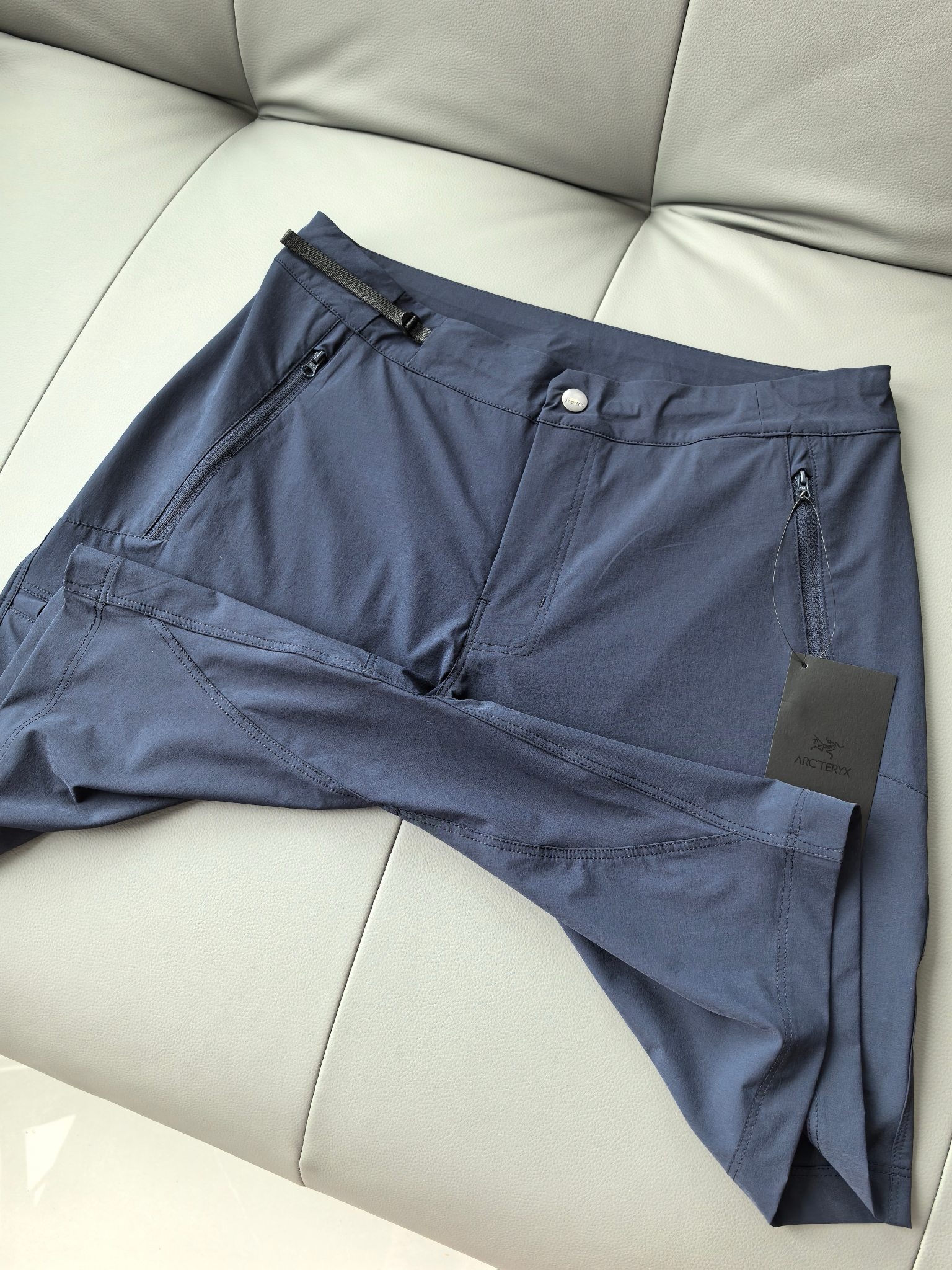 多袋+防水拉链,腰部可收缩调节设计。裤脚刺绣LOGO。
