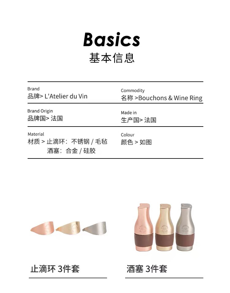 法国L'Atelier du Vin红酒保鲜瓶塞创意葡萄酒塞子密封塞止滴环