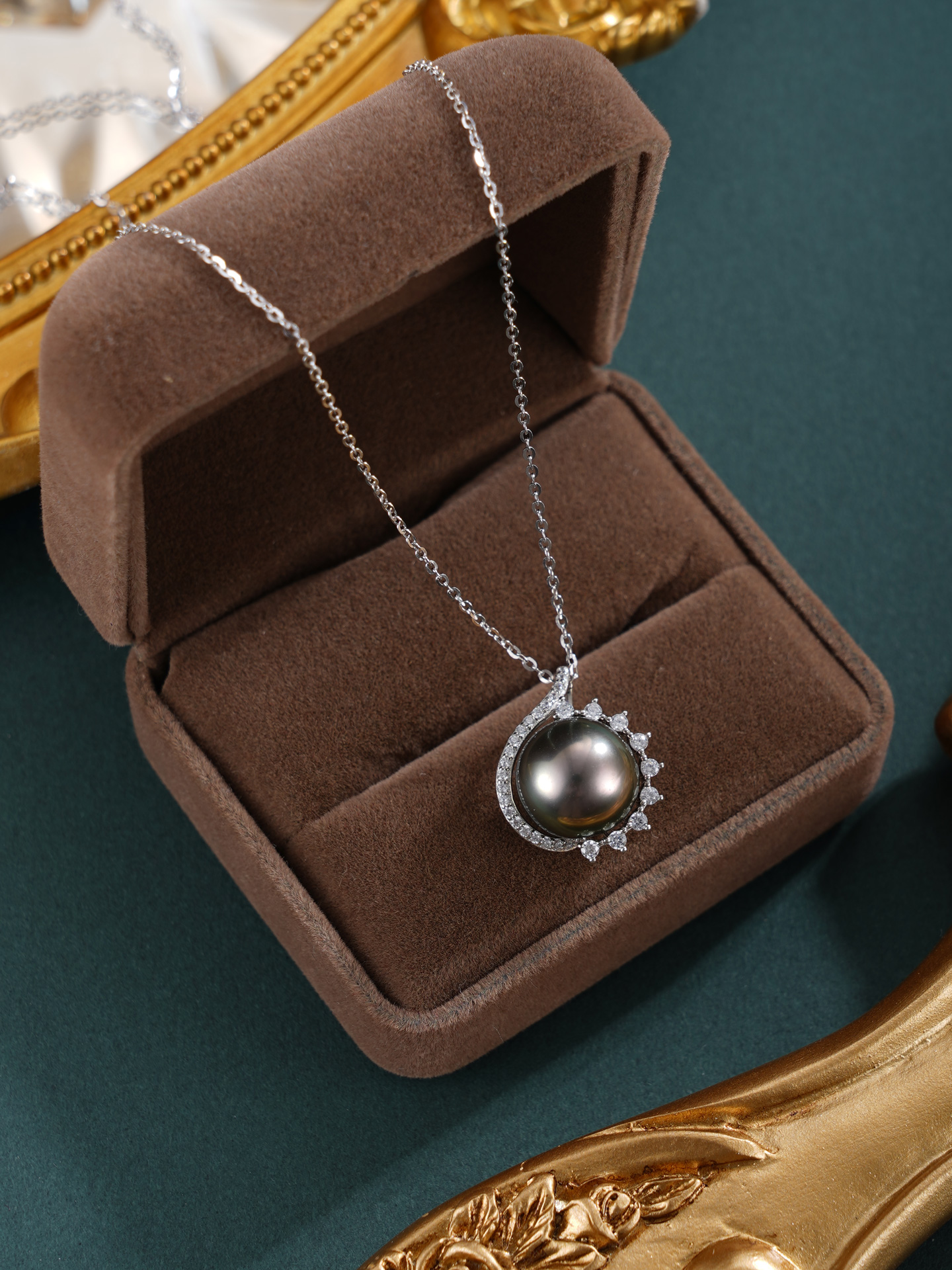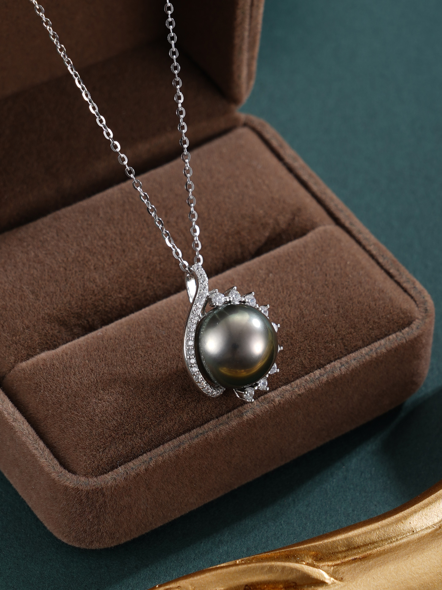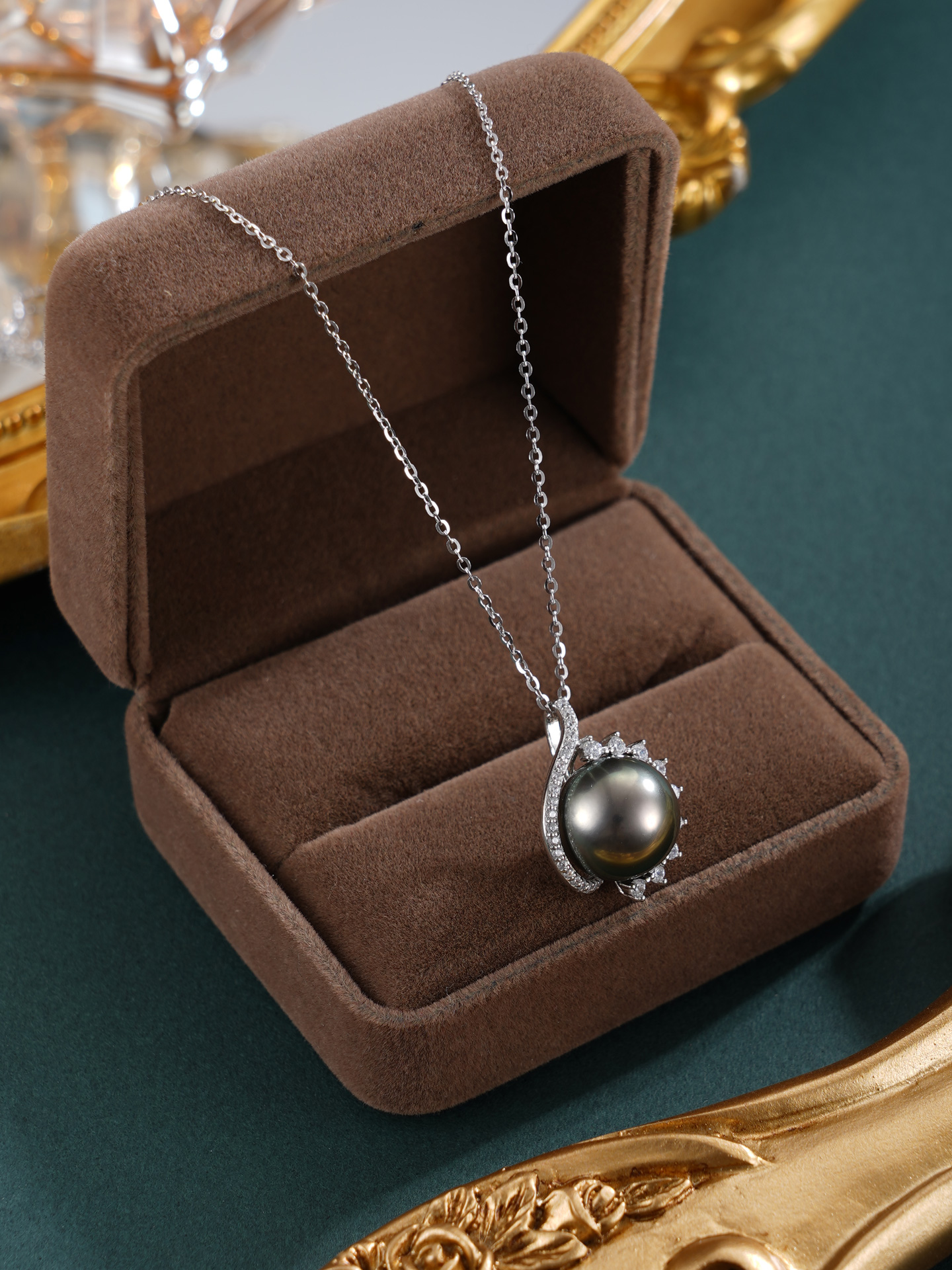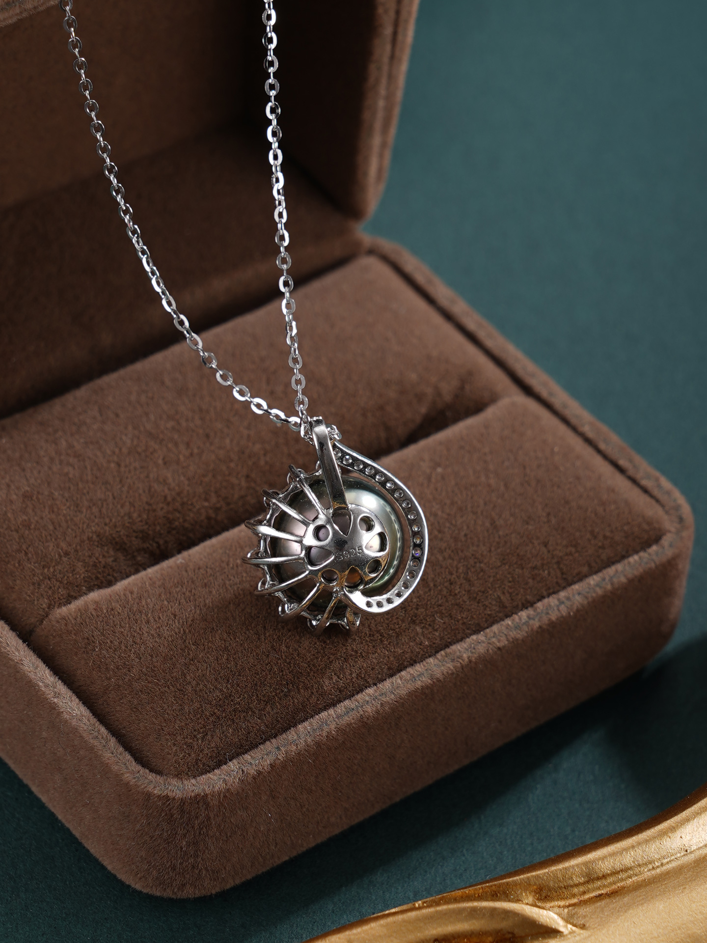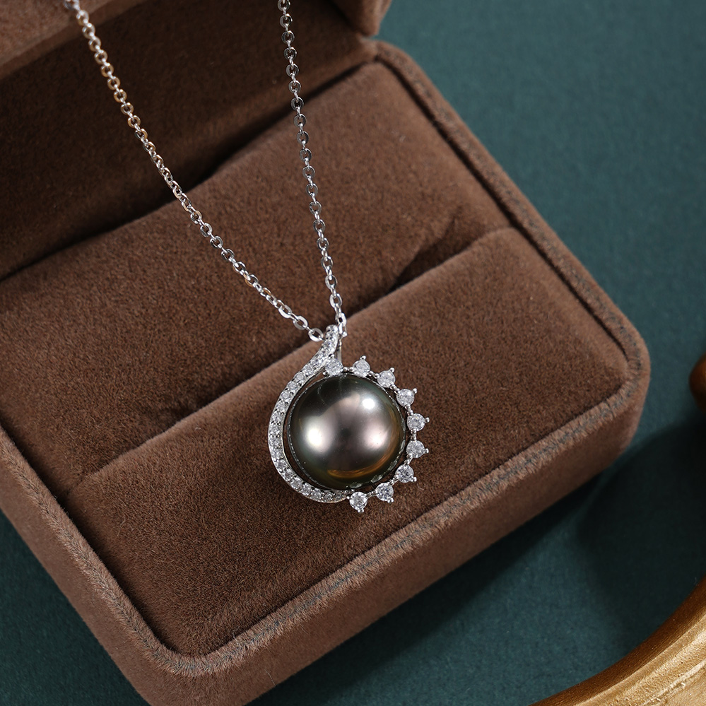 子佩集【黛影清辉】银S925珍珠惜王妃套链【HJYDZ010】11.5mm珠半环黑珠2601