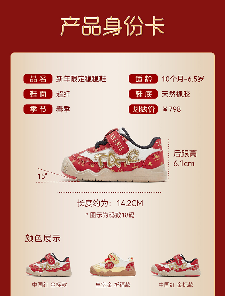 泰兰尼斯稳稳鞋Pro春季新款童鞋新年限定学步鞋送礼款男女童鞋子 T26T5A6269