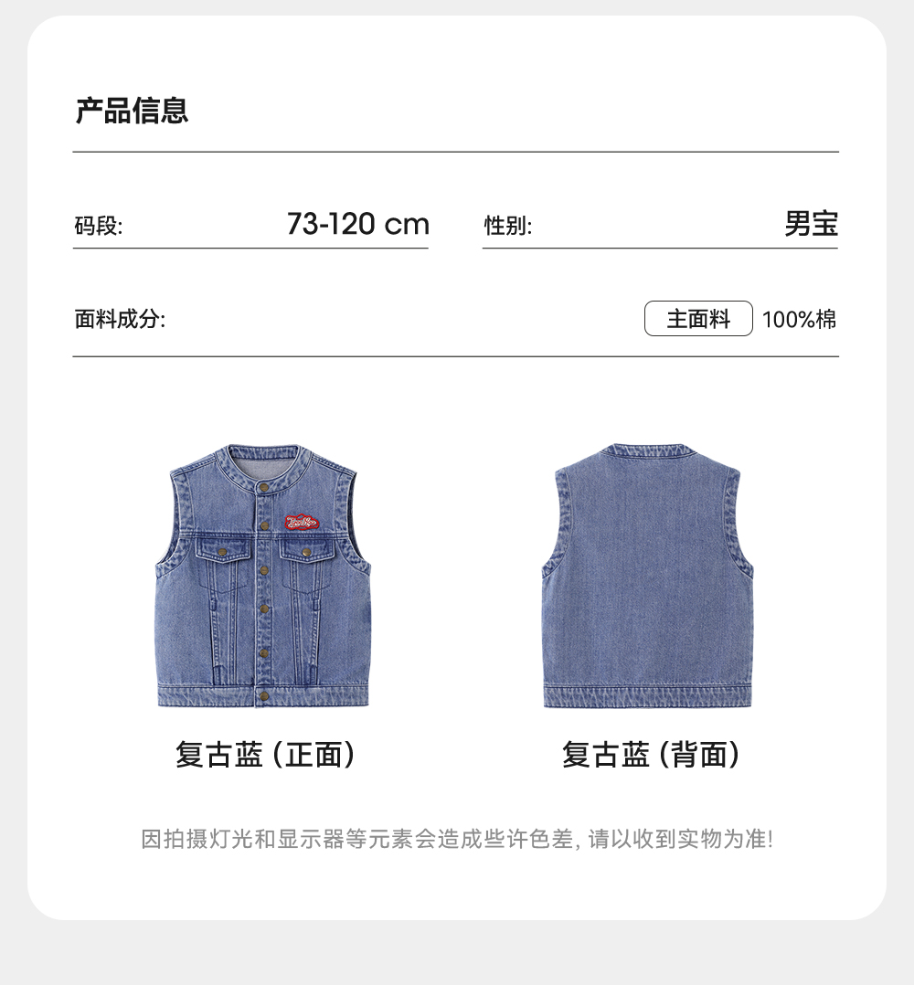 英氏儿童马甲2025新款春装马甲男宝纯棉帅气背心外套YRWHJ1R012A
