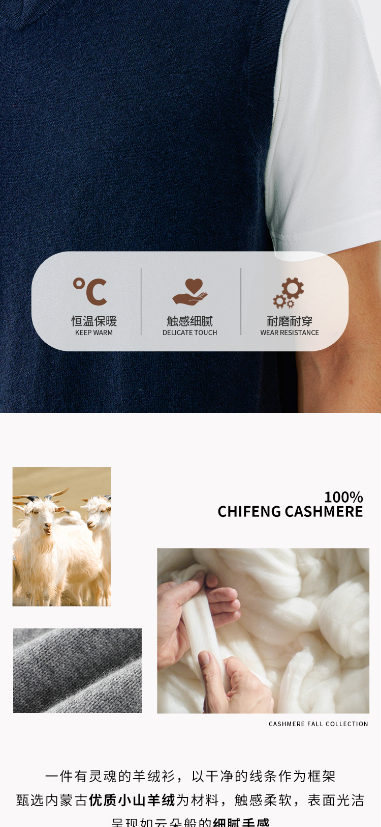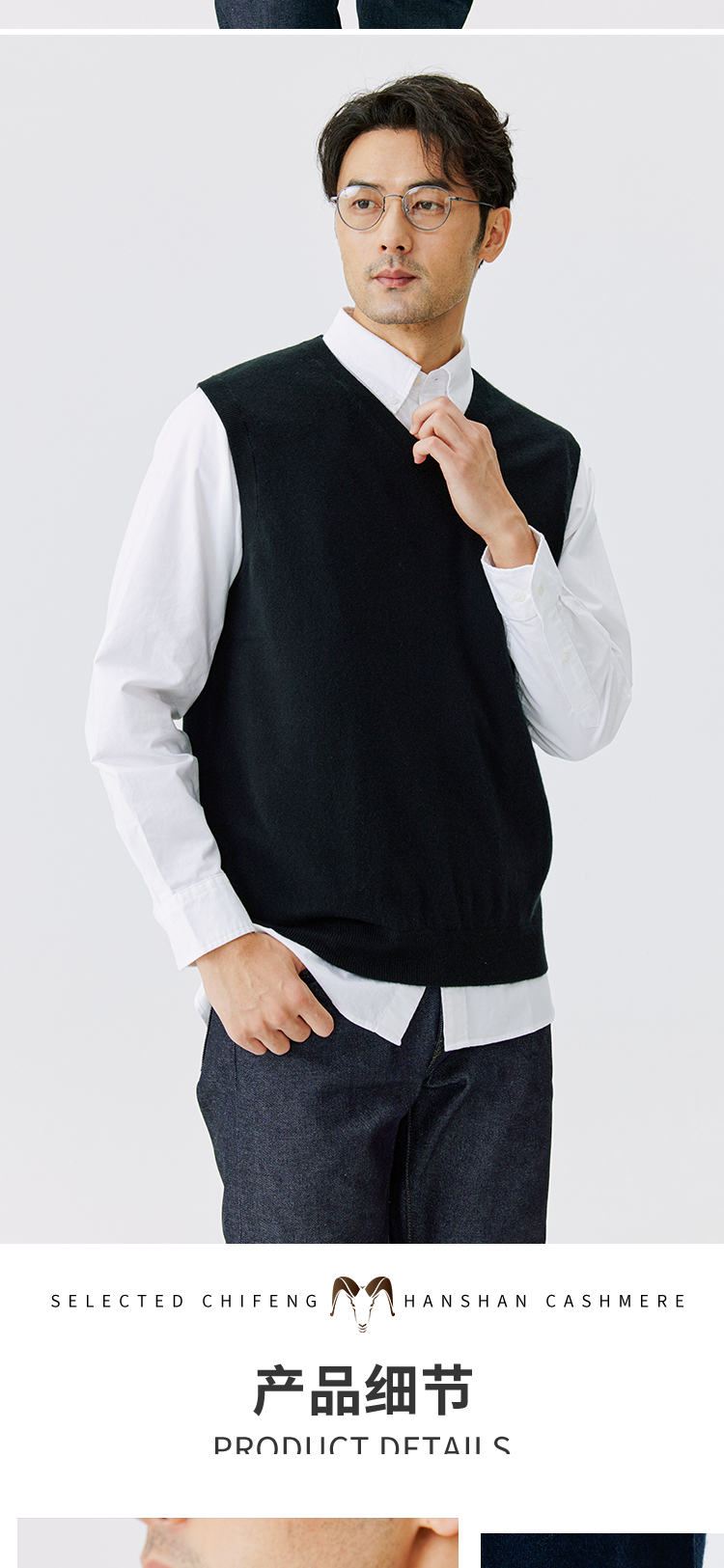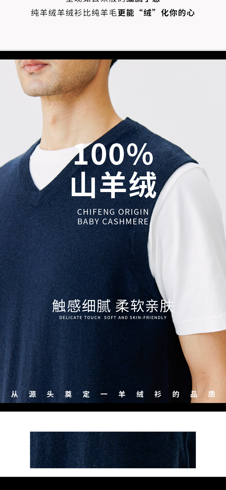 东黎 • 小山羊绒男士秋冬V领纯色马甲套头衫 21S221