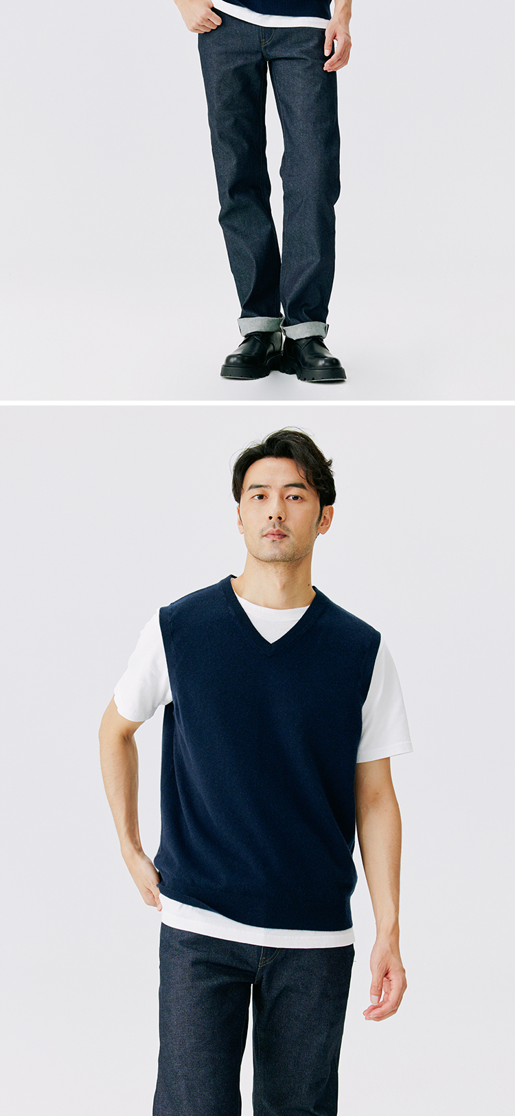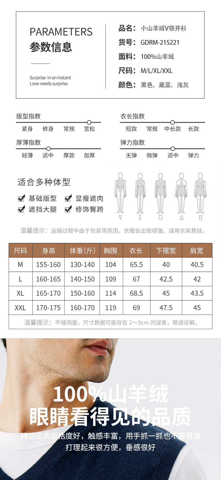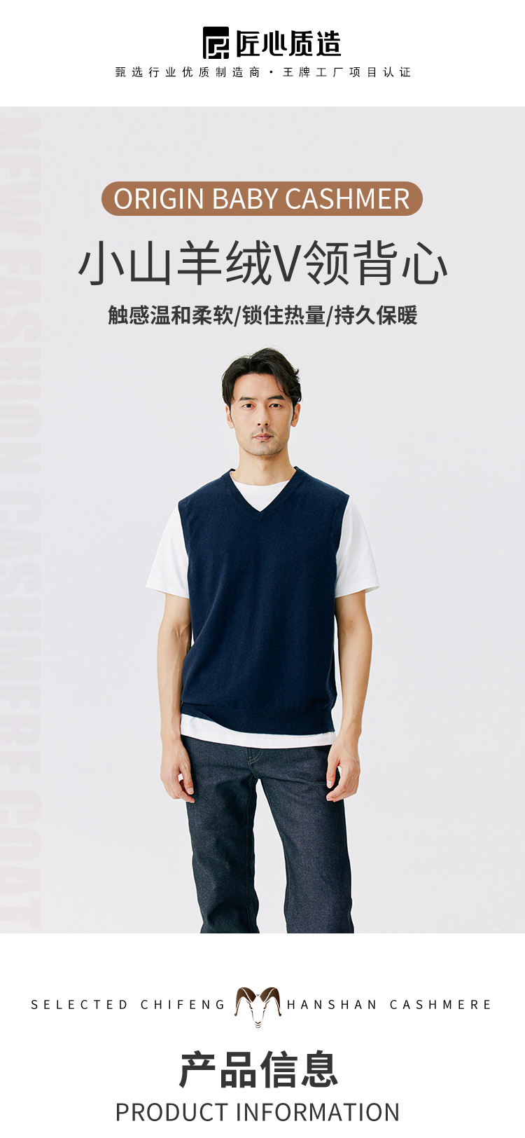 东黎 • 小山羊绒男士秋冬V领纯色马甲套头衫 21S221