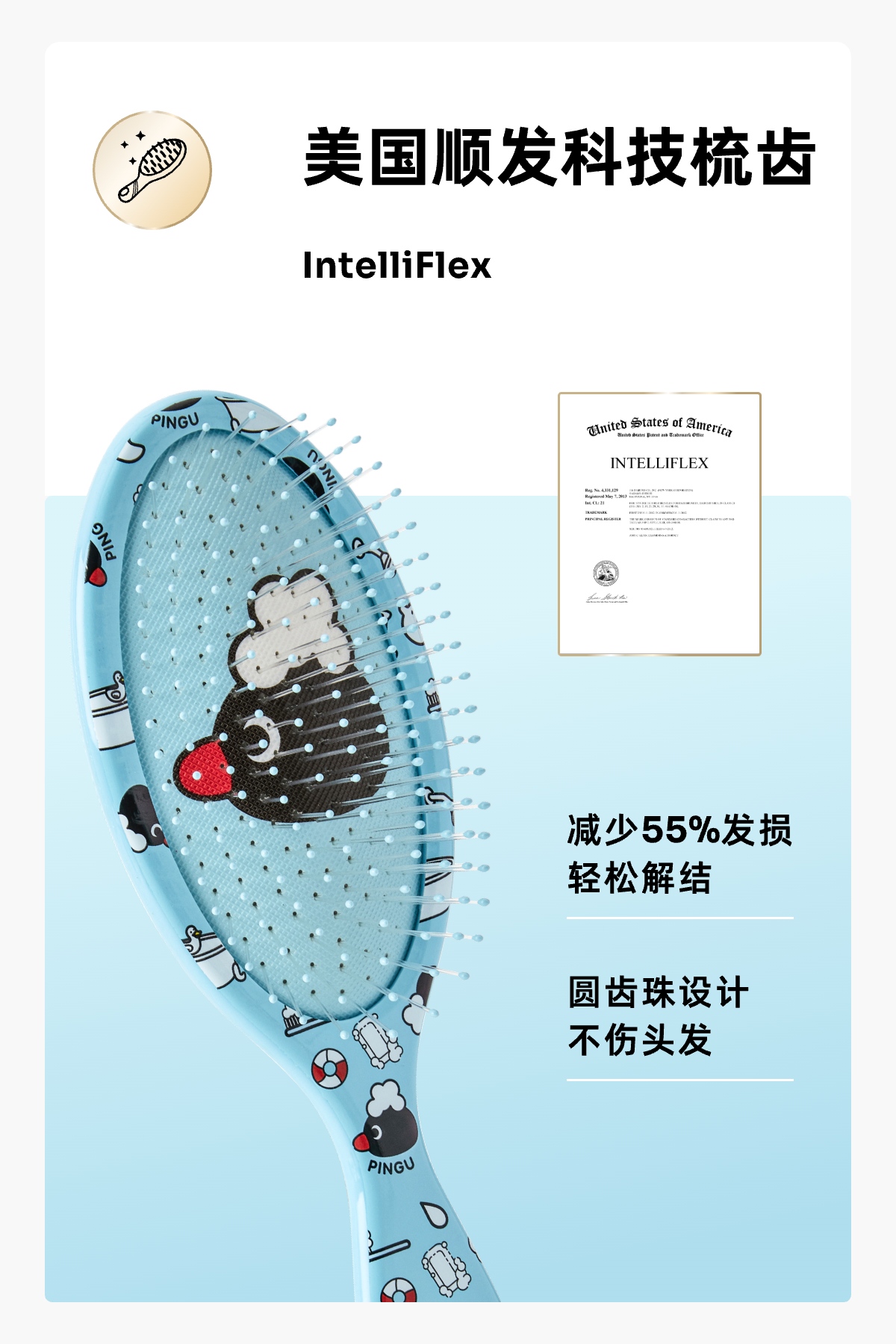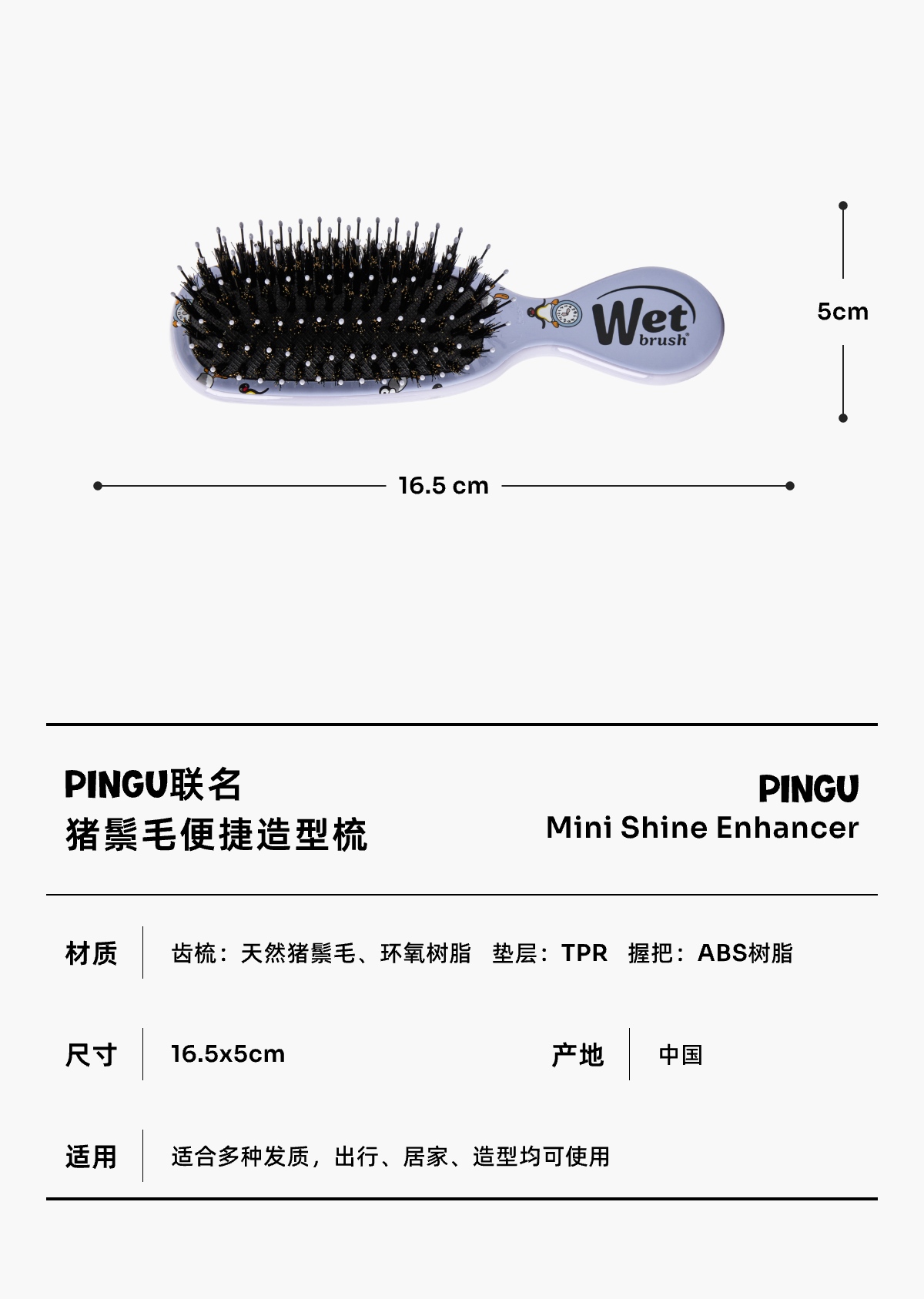 【云优选】美国Wet brush& Pingu合作系列 猪鬃毛顺发梳(拆封使用后不支持7天无理由退换货,介意慎拍)