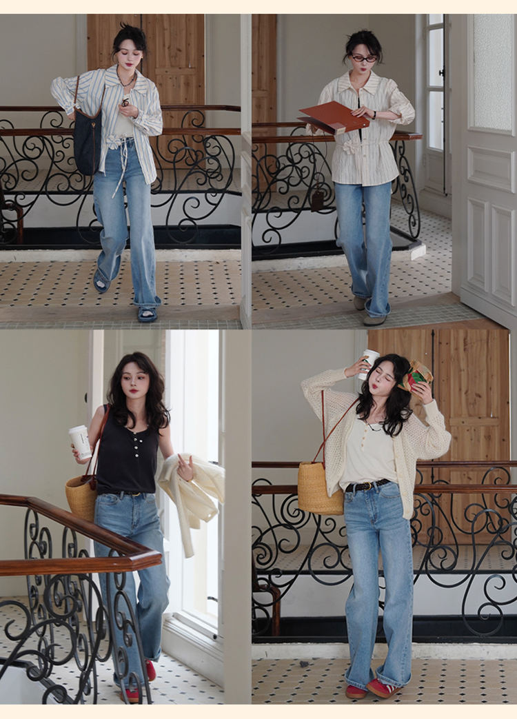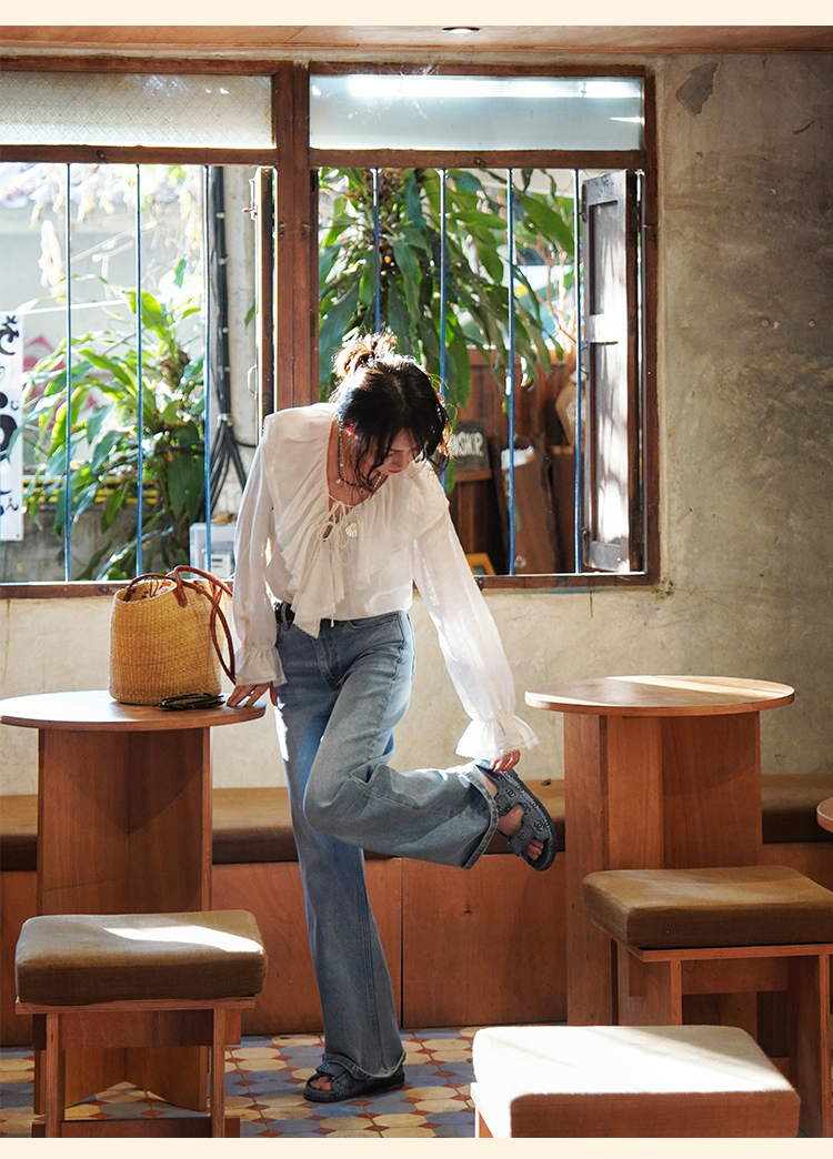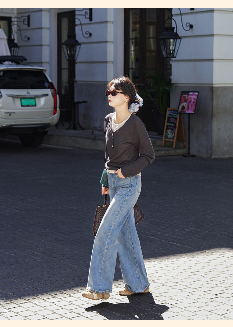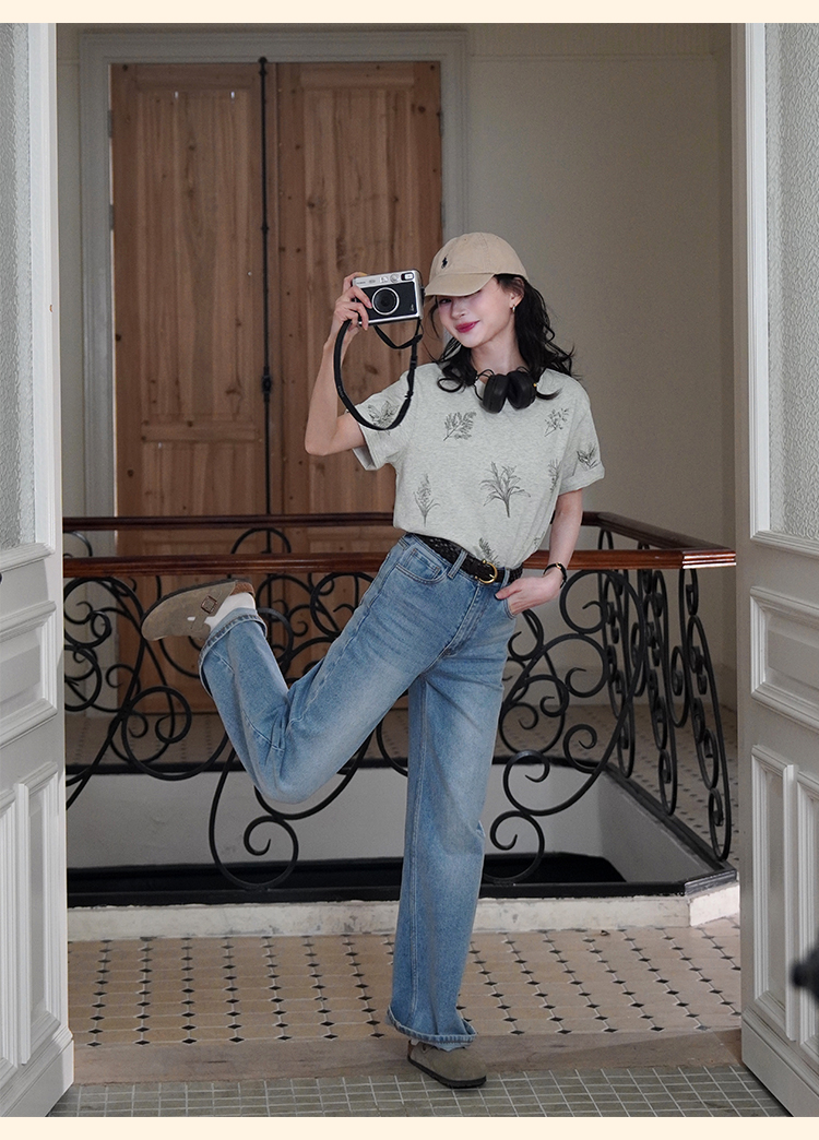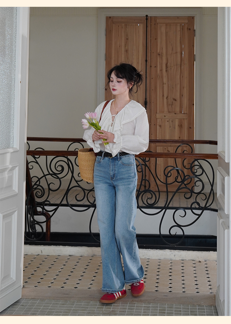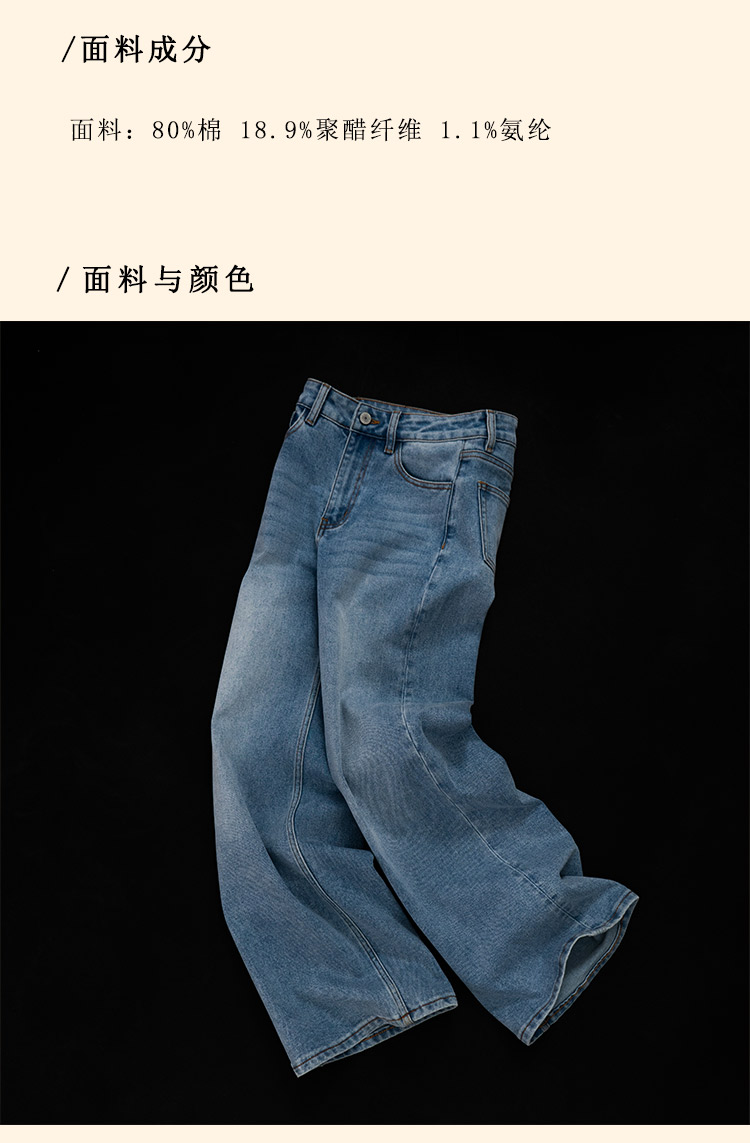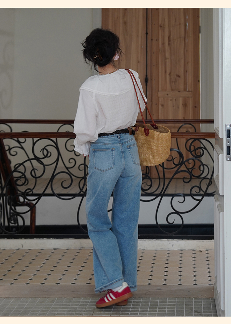 浮生八记/25A022/法式水洗磨白牛仔裤
