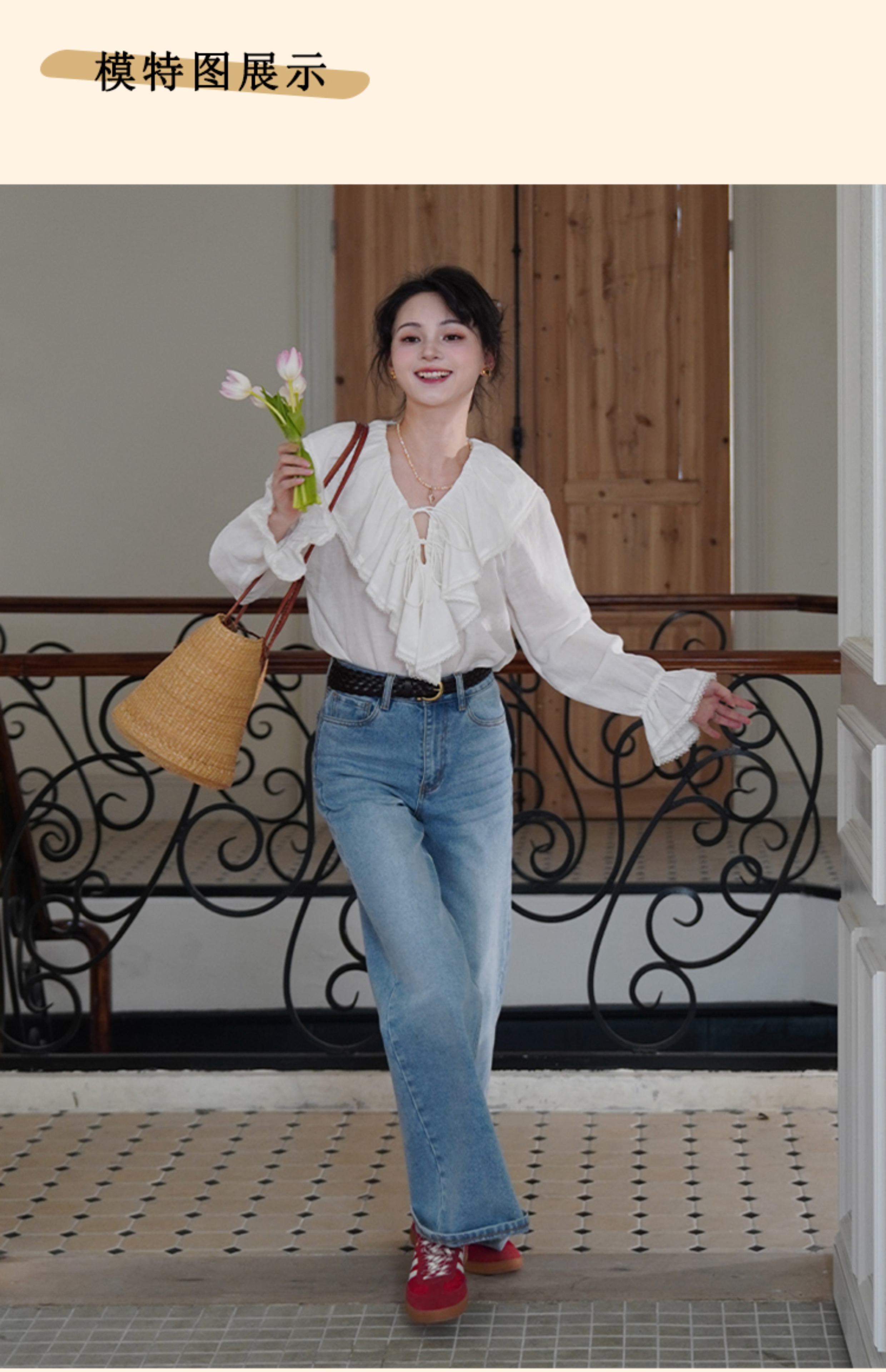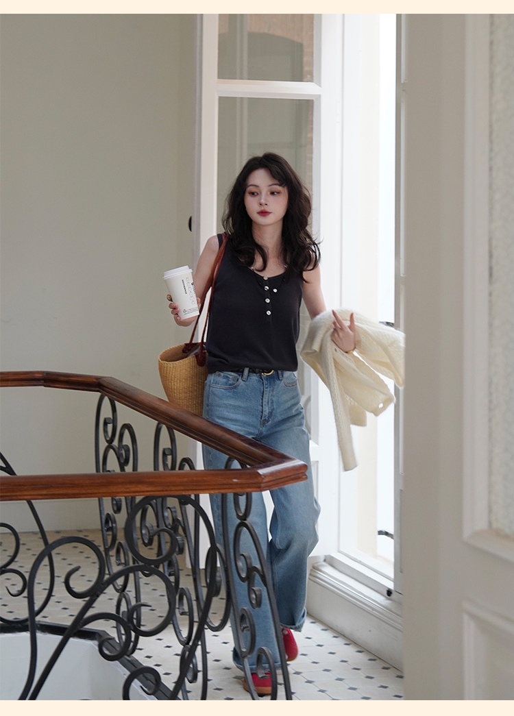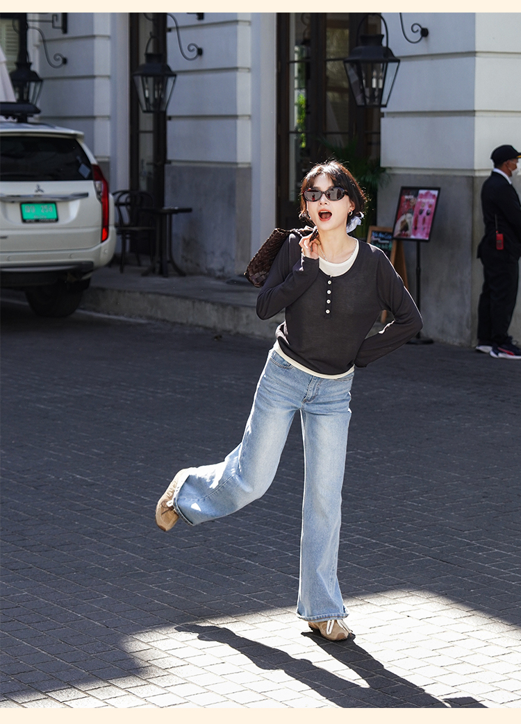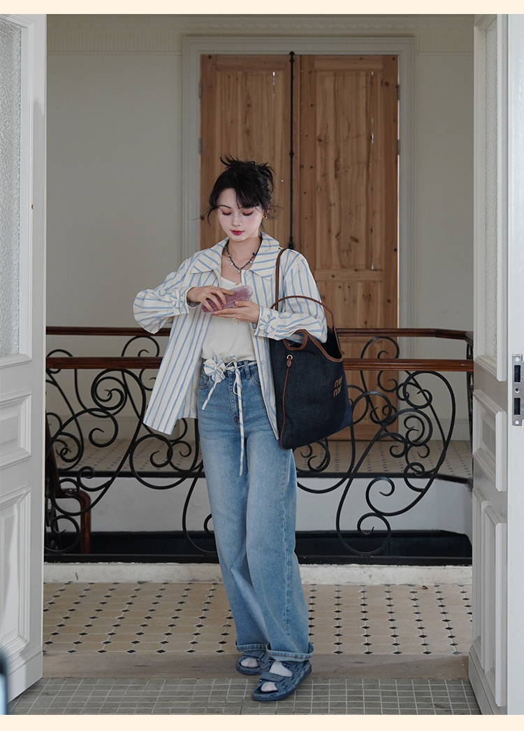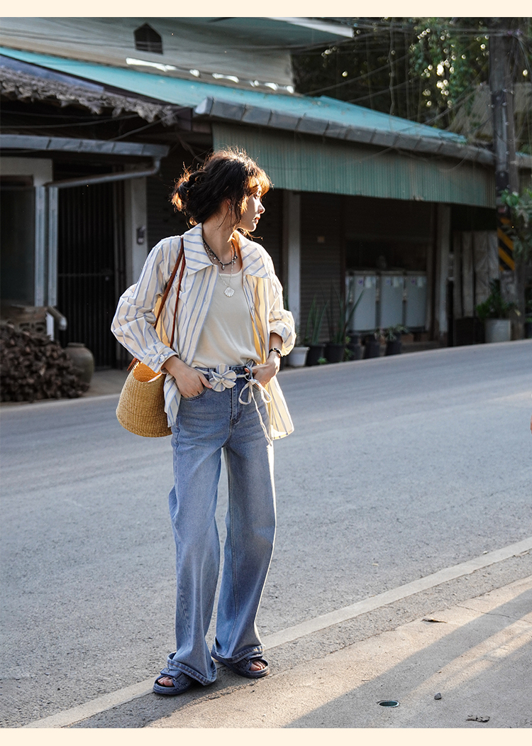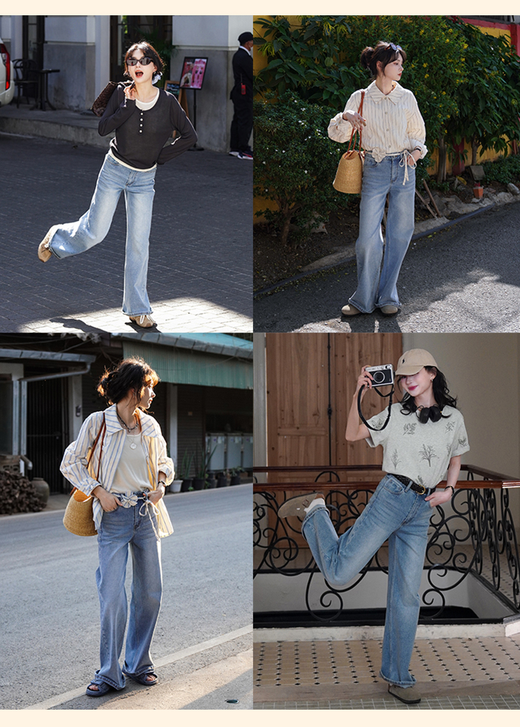 浮生八记/25A022/法式水洗磨白牛仔裤