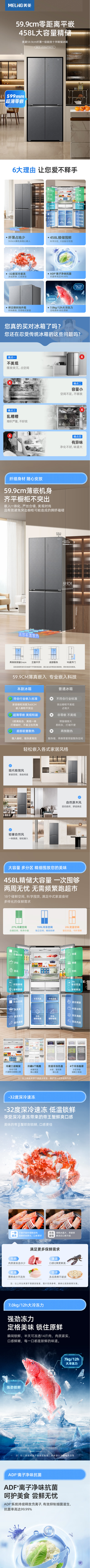 【天津】【美菱】冰箱_超薄两侧零嵌入底部散热_BCD-458WP9BZX【不包安装】