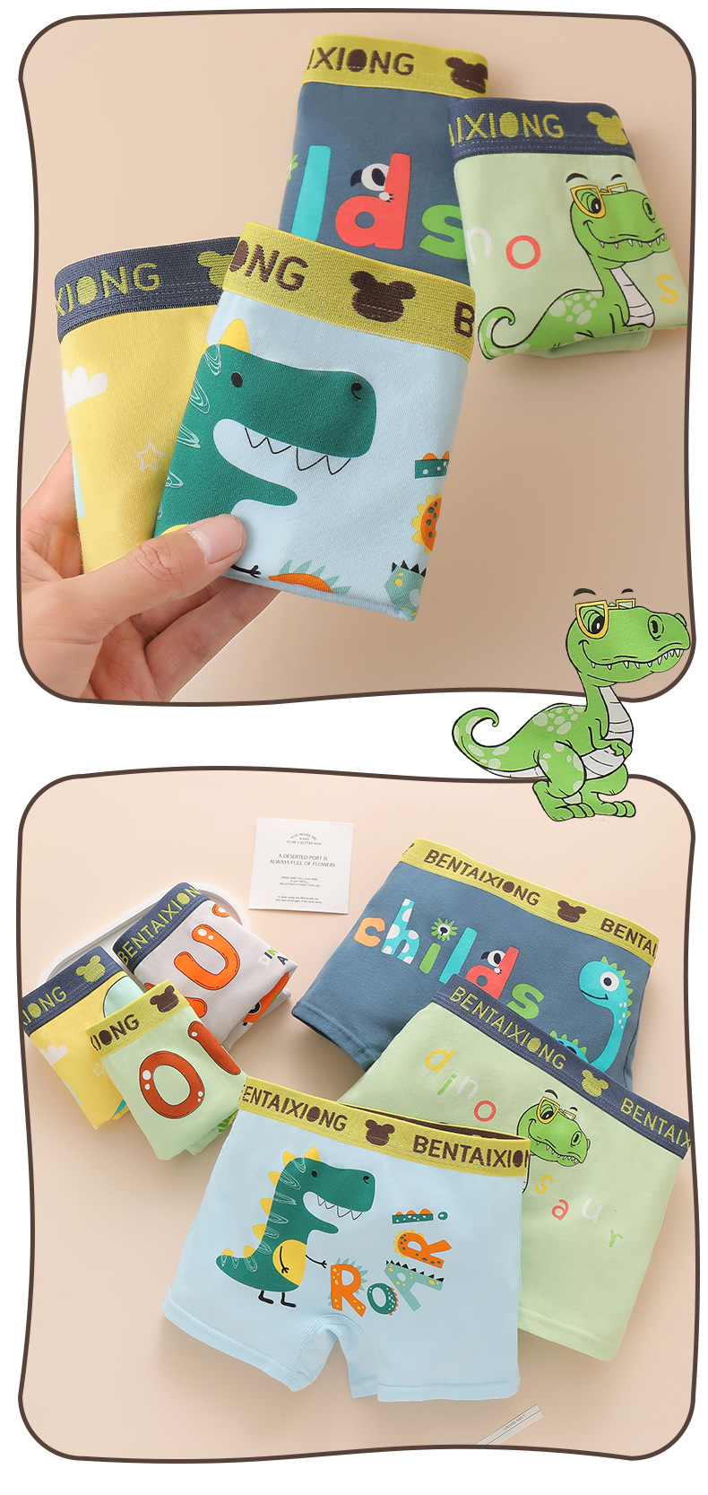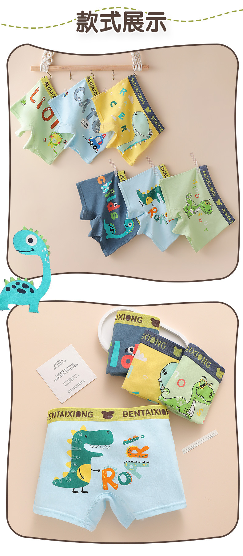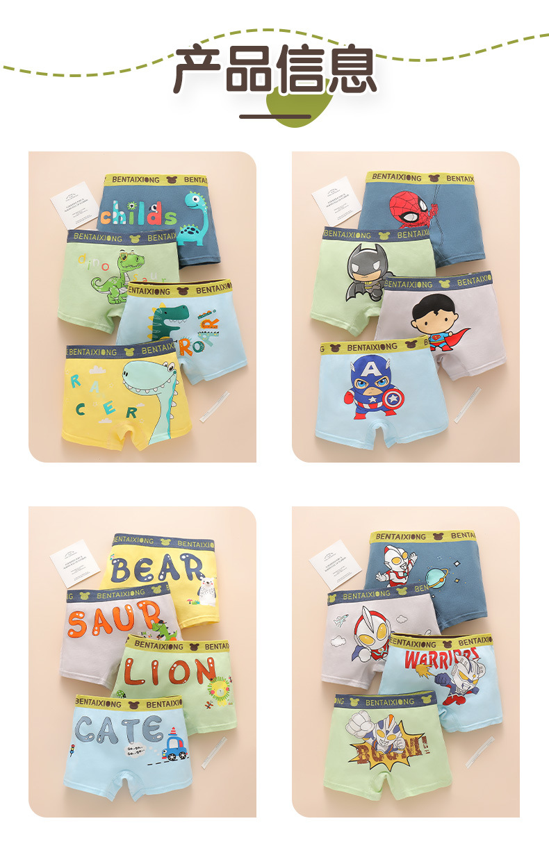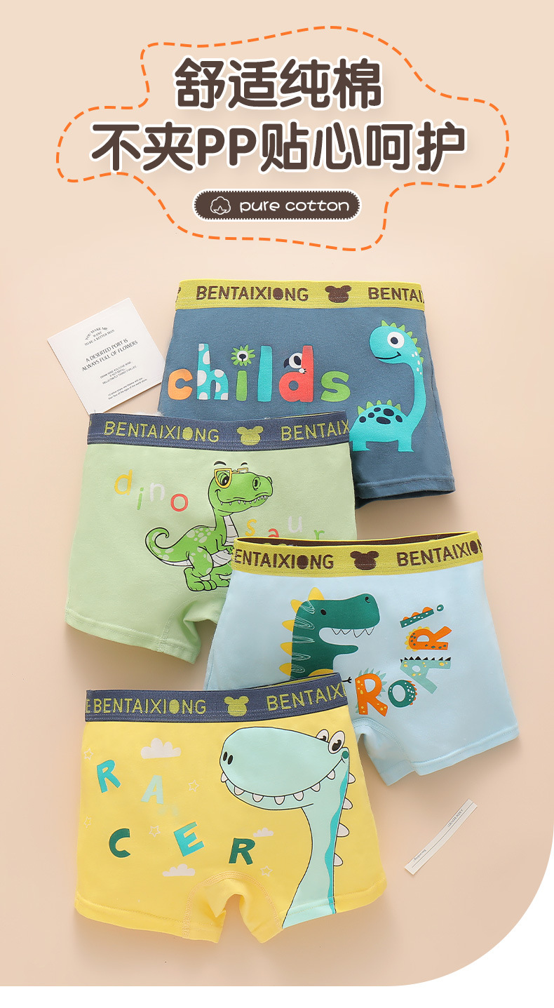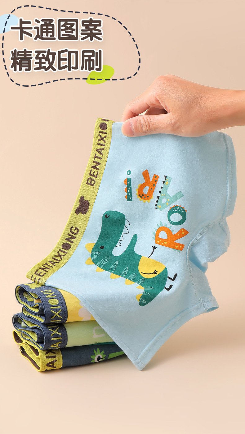 【A类纯棉四条装男童平角内裤】儿童内裤纯棉男童平角内裤,精选面料新疆长绒棉更亲肤,轻盈柔软舒适体验,活性印染多次清洗不掉色,3D立体裁剪不夹pp男孩中大童宝宝抗jun短裤QQ