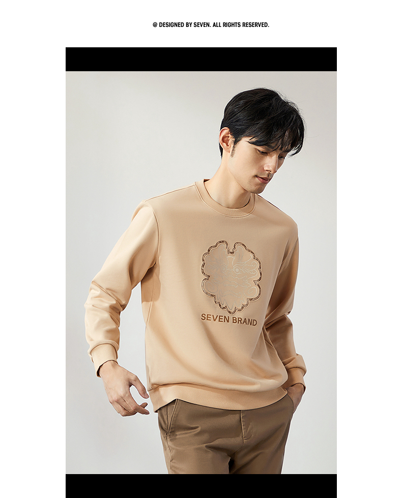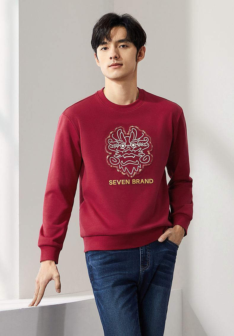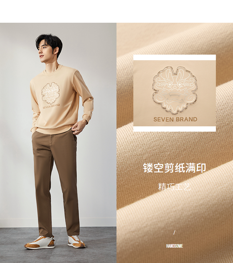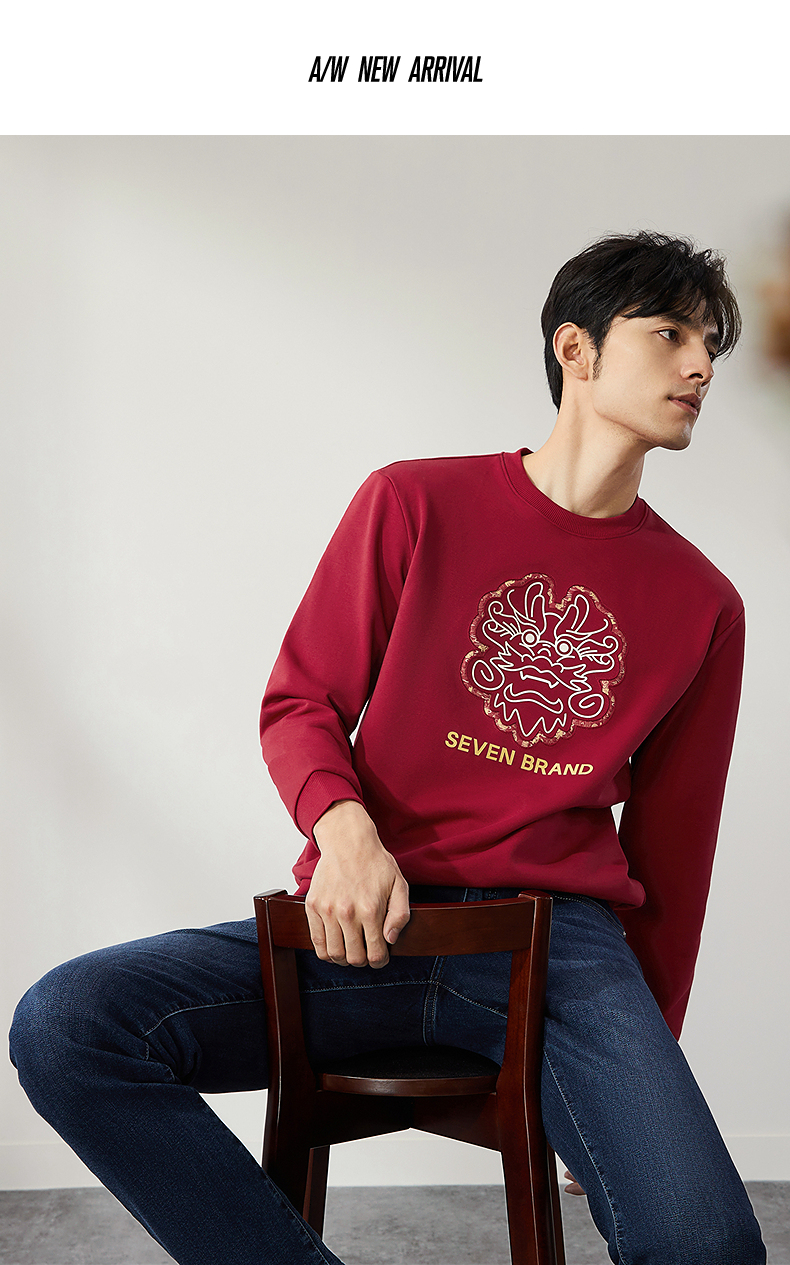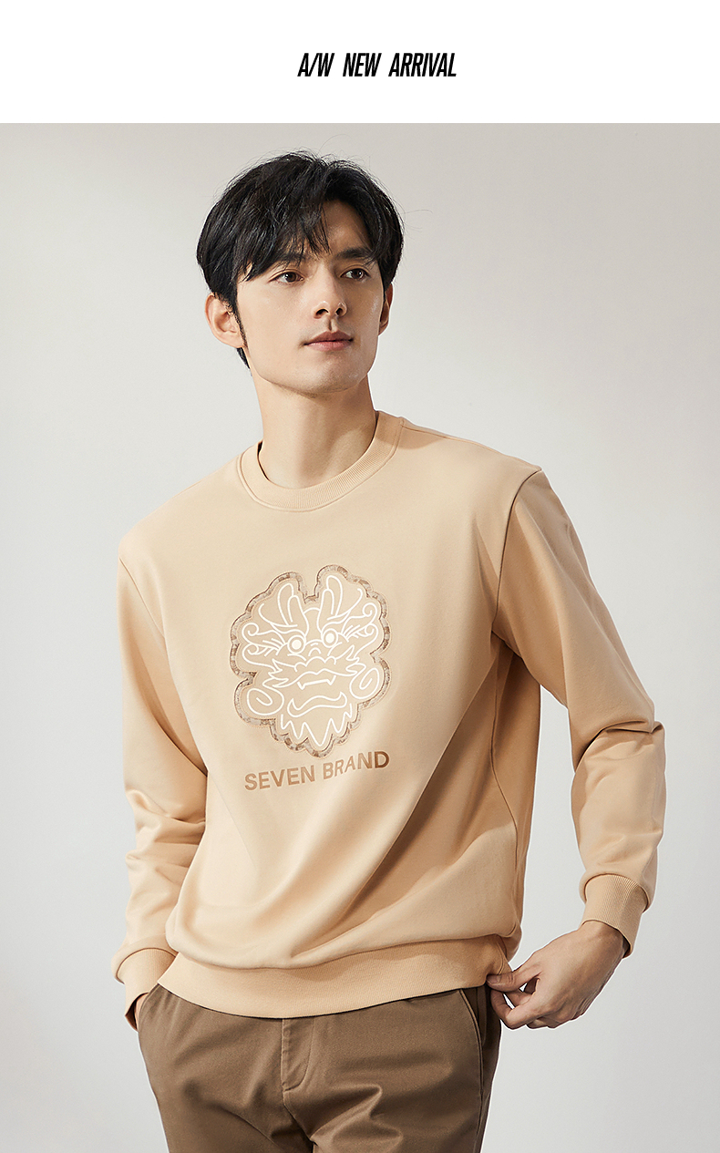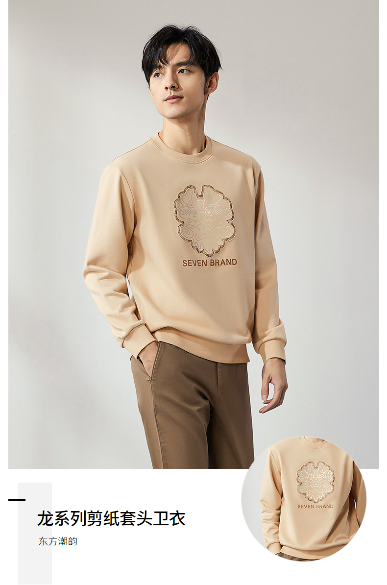 【龙系列】柒牌圆领卫衣男秋季新款保型索罗纳休闲中青年套头上衣 127W70900