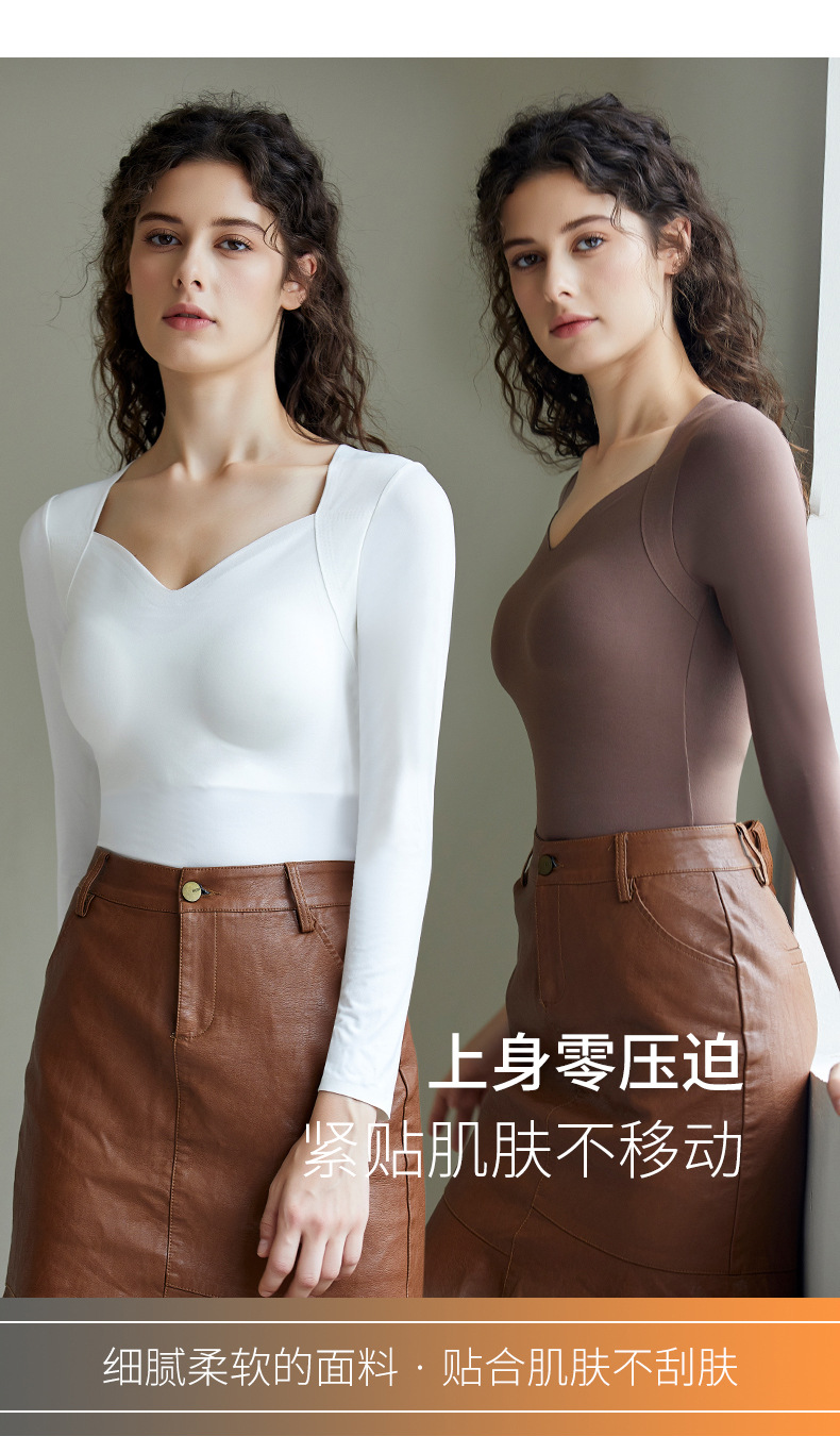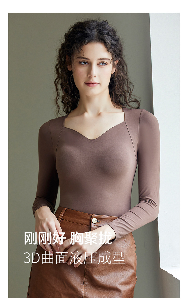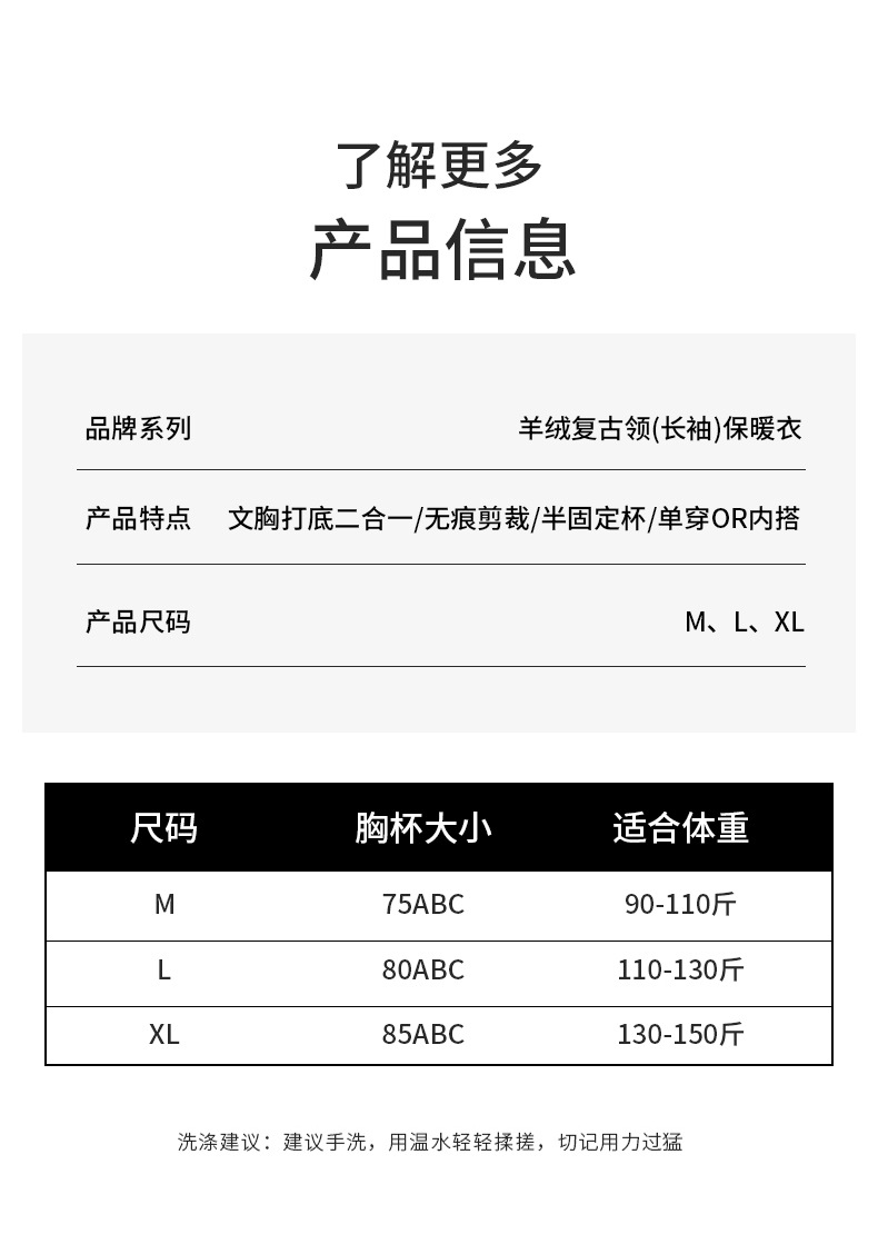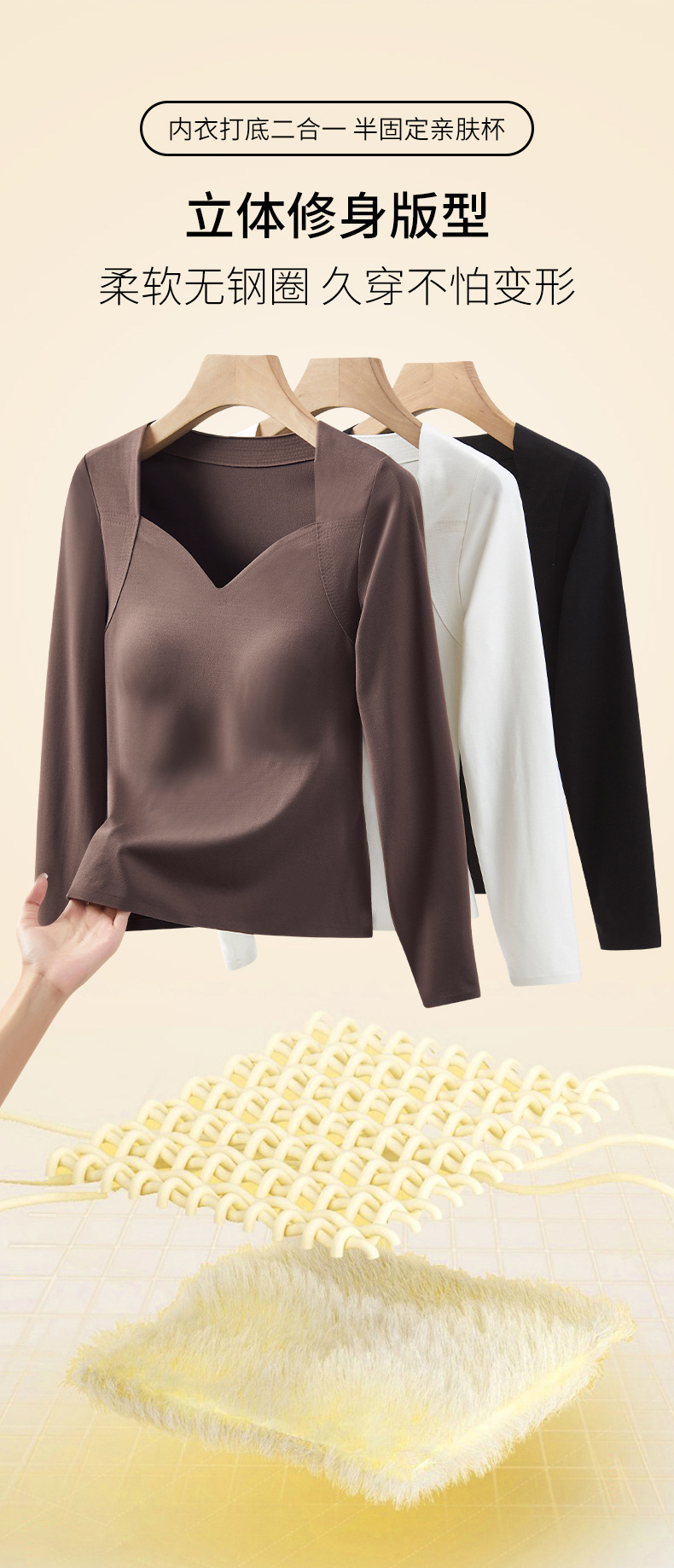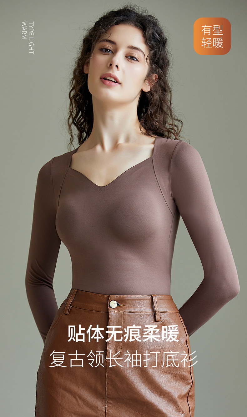 秋冬【复古领可外穿打底衫】带胸垫 免穿内衣 长袖百搭 保暖内衣女