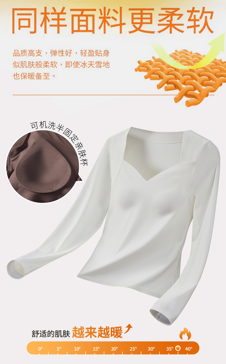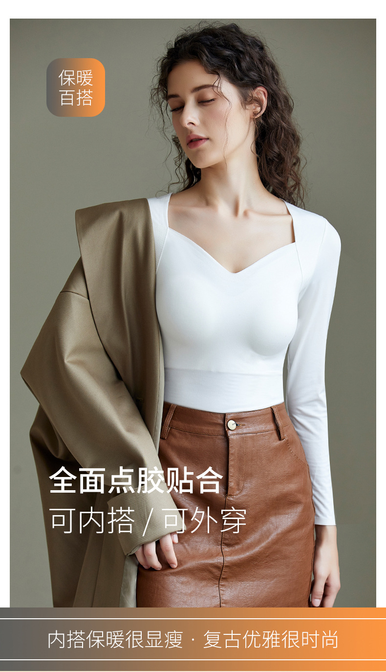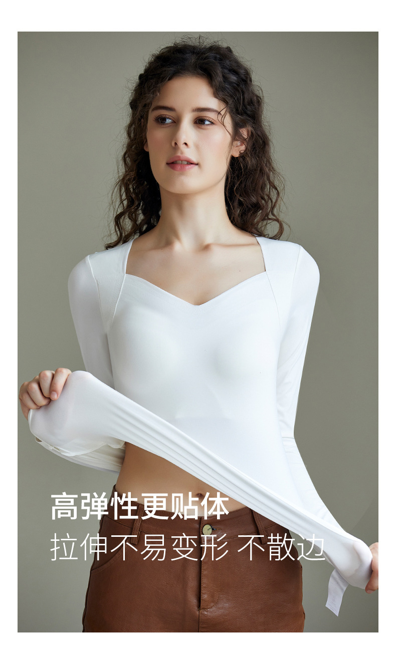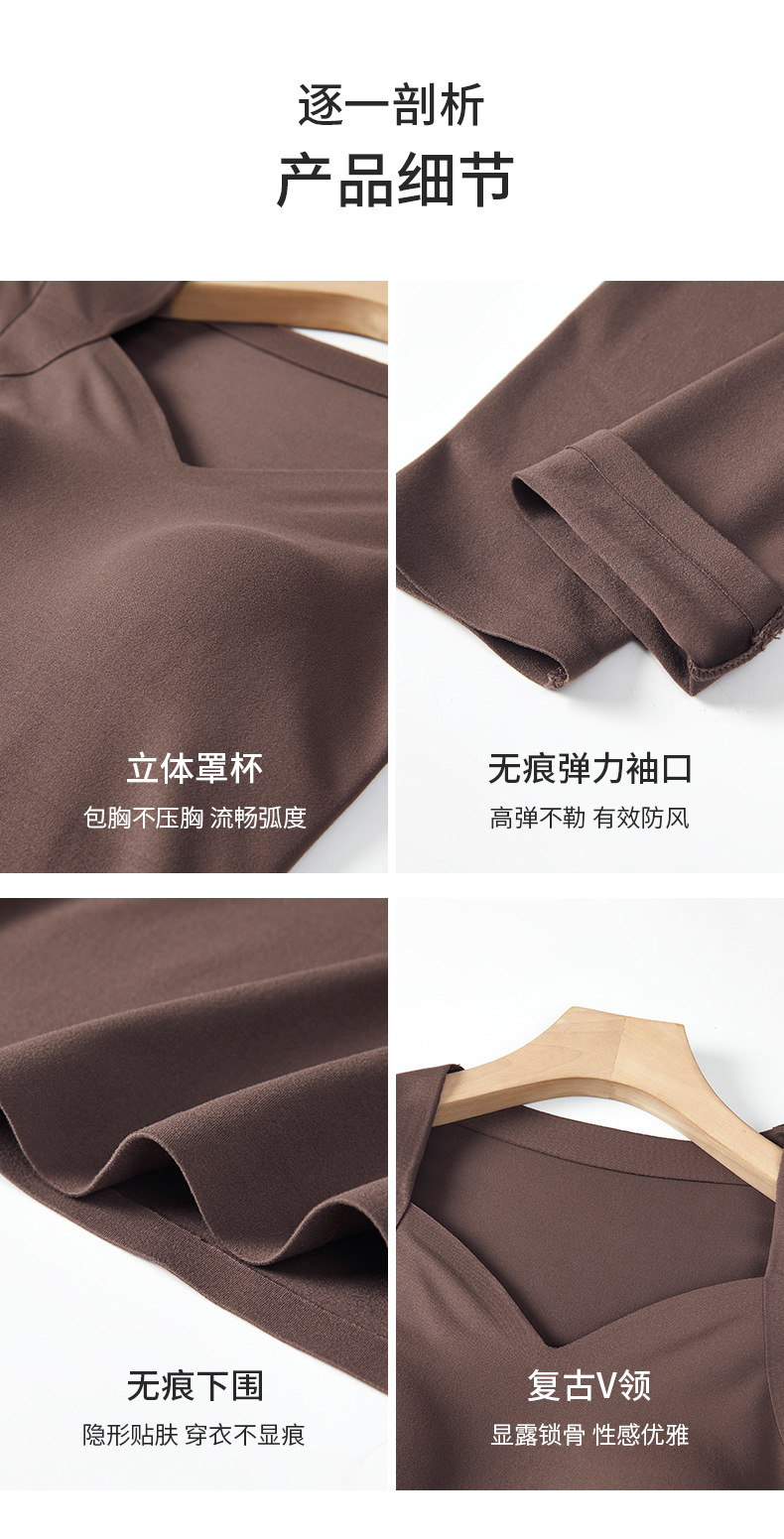 秋冬【复古领可外穿打底衫】带胸垫 免穿内衣 长袖百搭 保暖内衣女