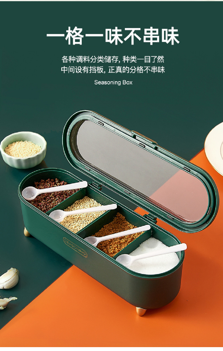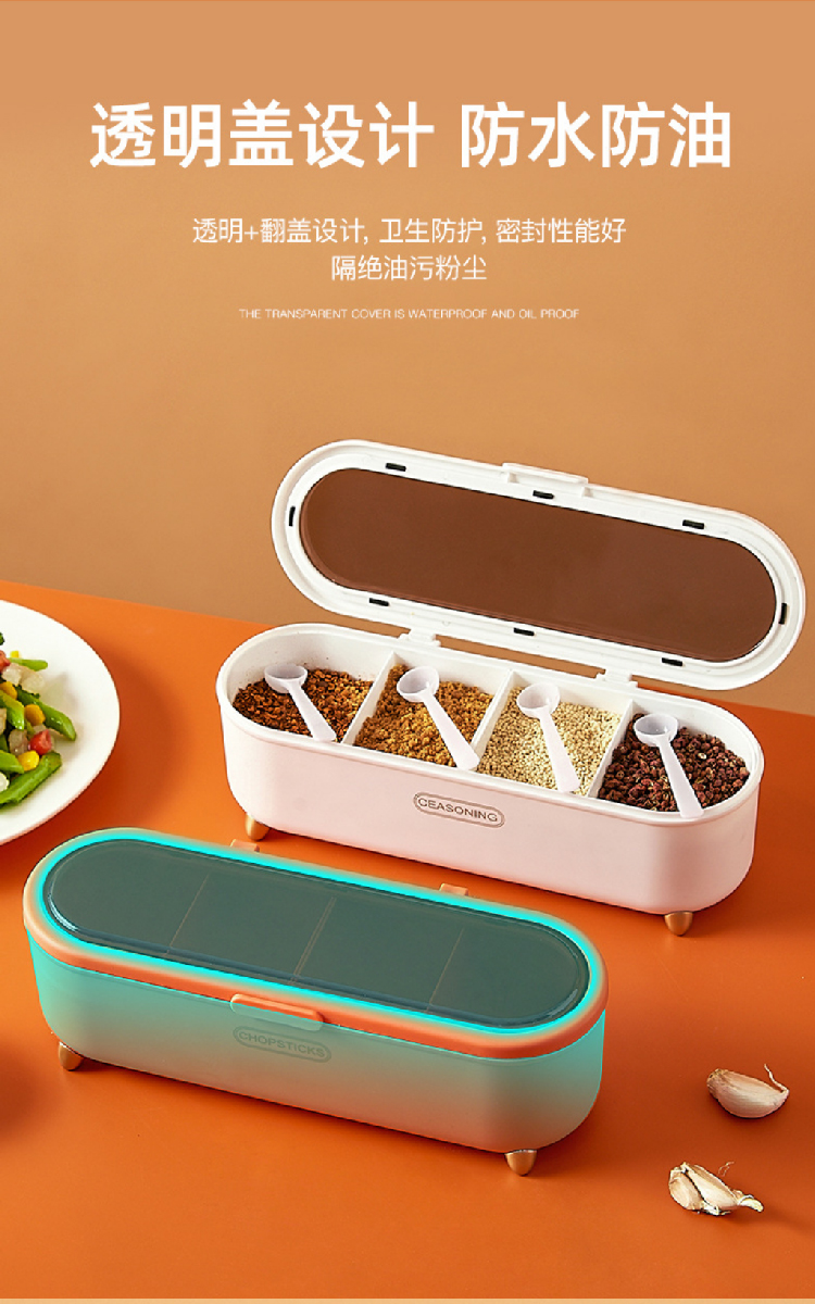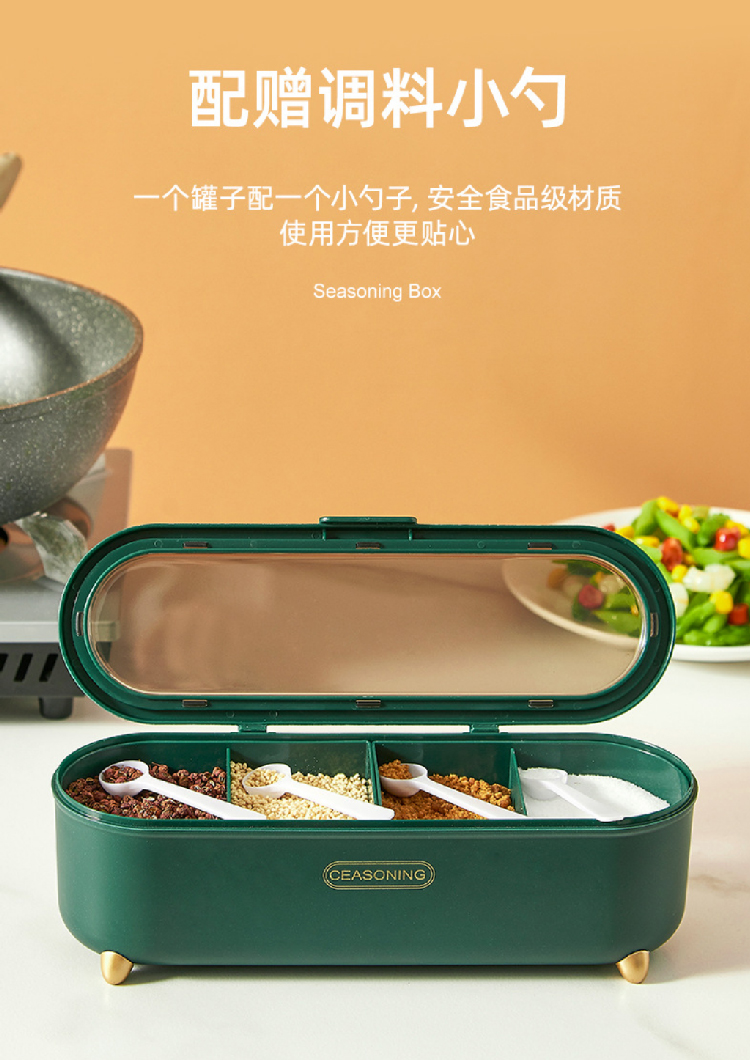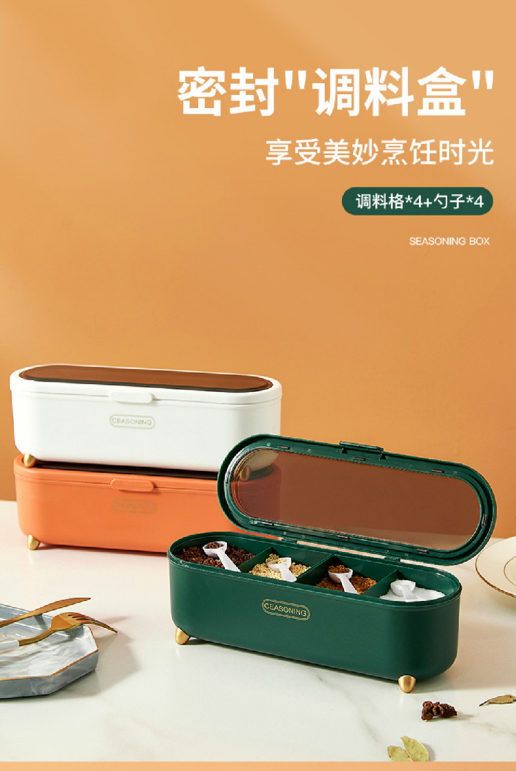 【4格4勺调味罐套装】新品家用厨房翻盖调味罐多格盒 轻奢调料盒调味调料罐盐罐套装