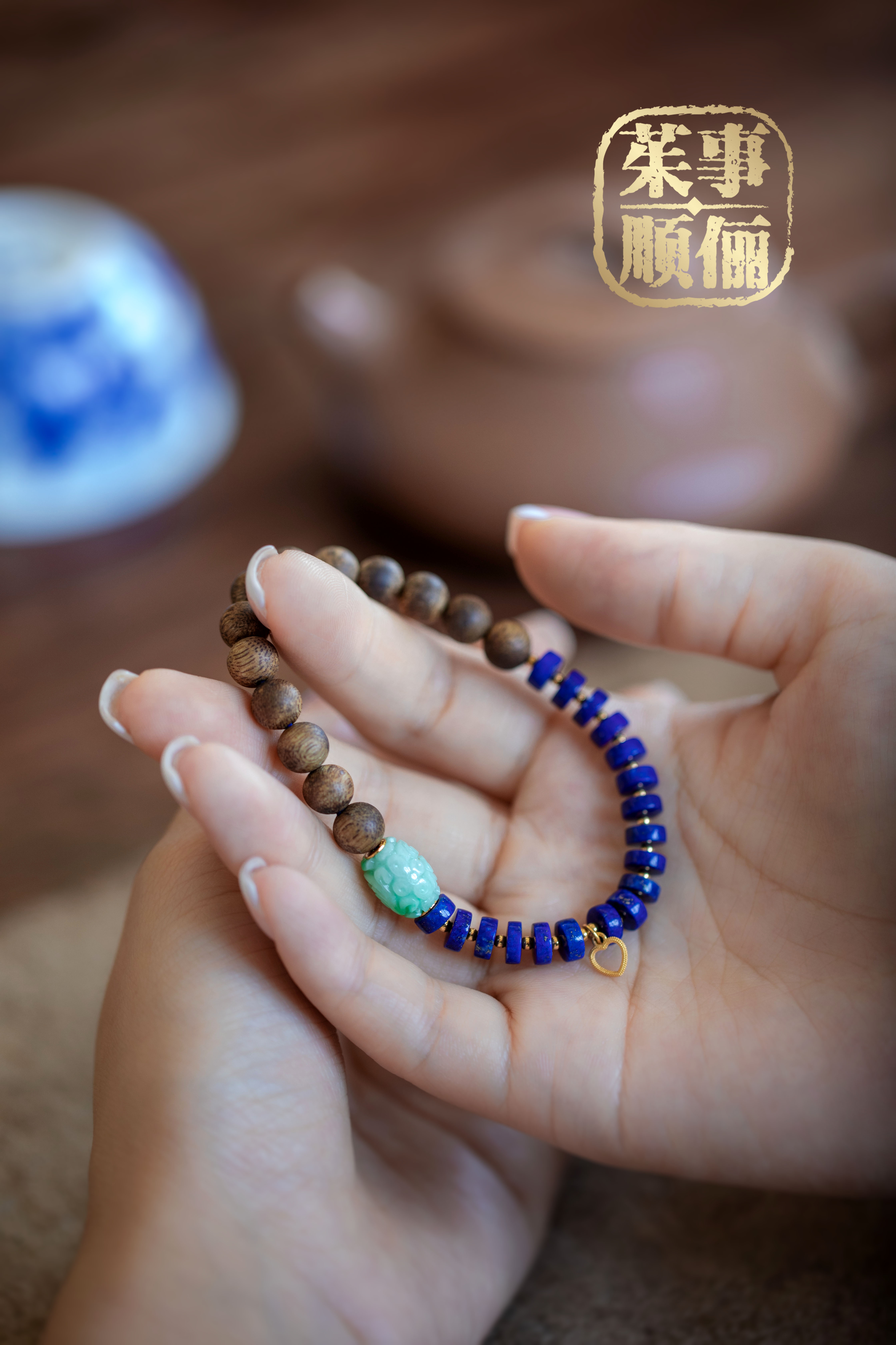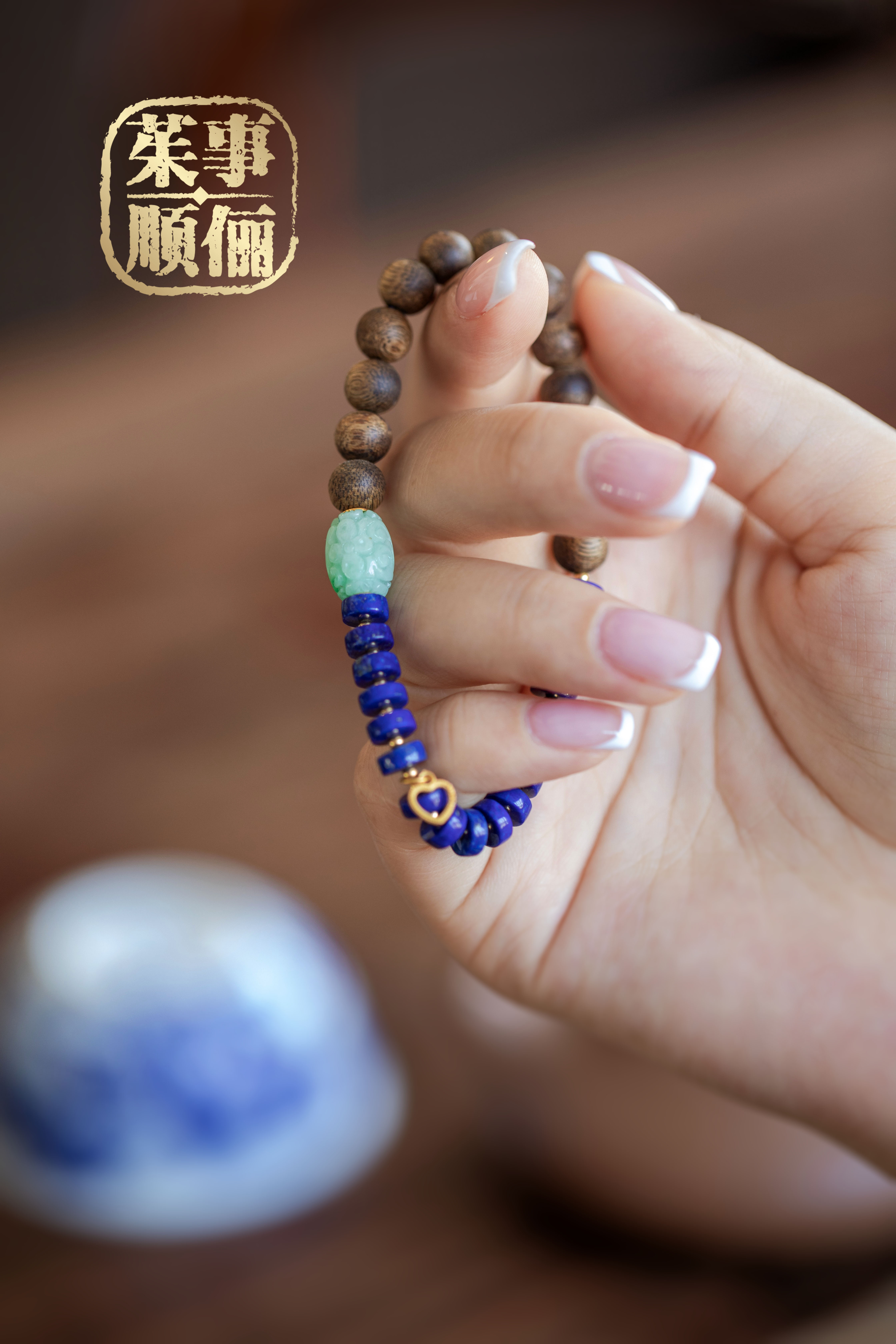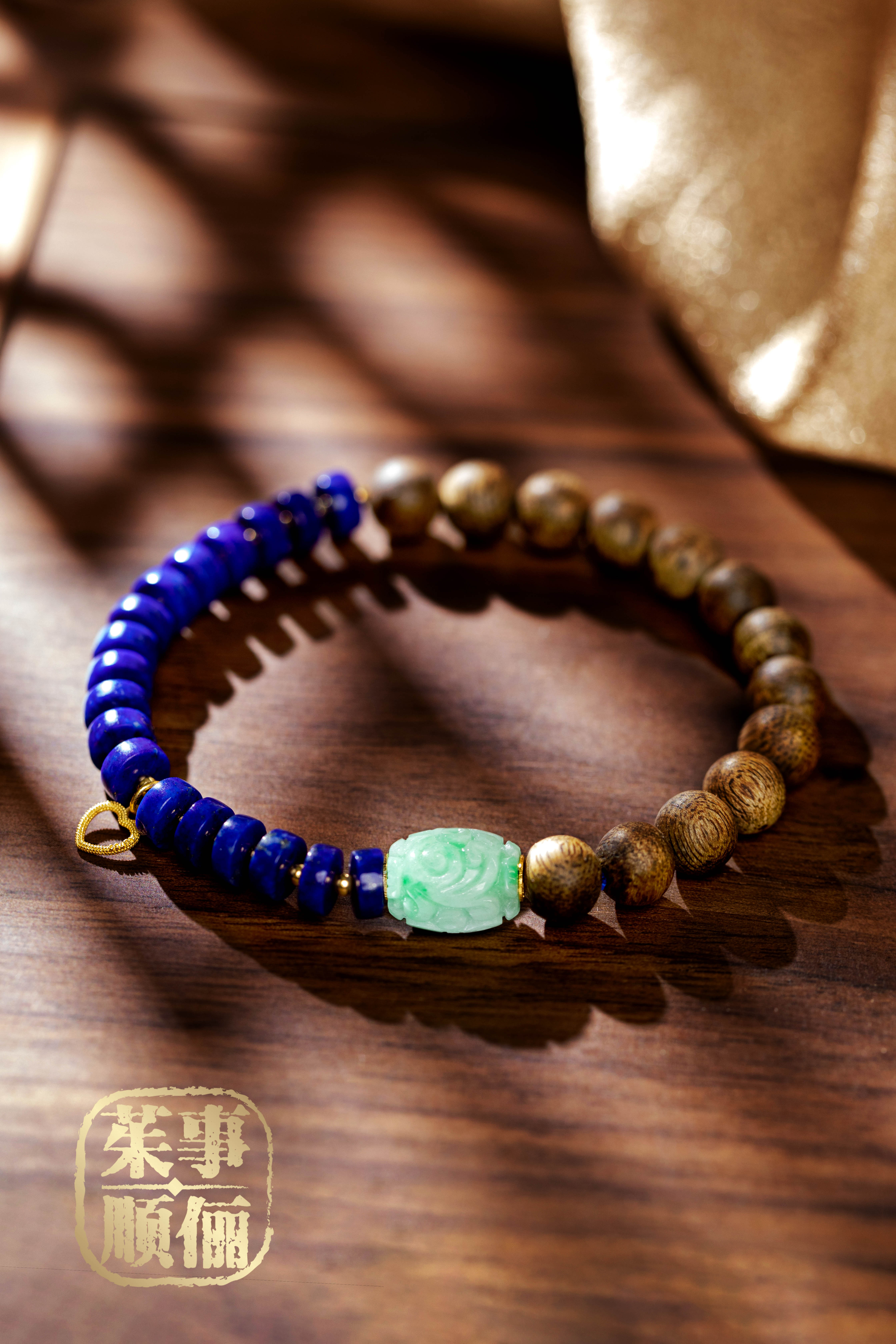 【茱事顺俪】18K黄金翡翠青金沉香手链