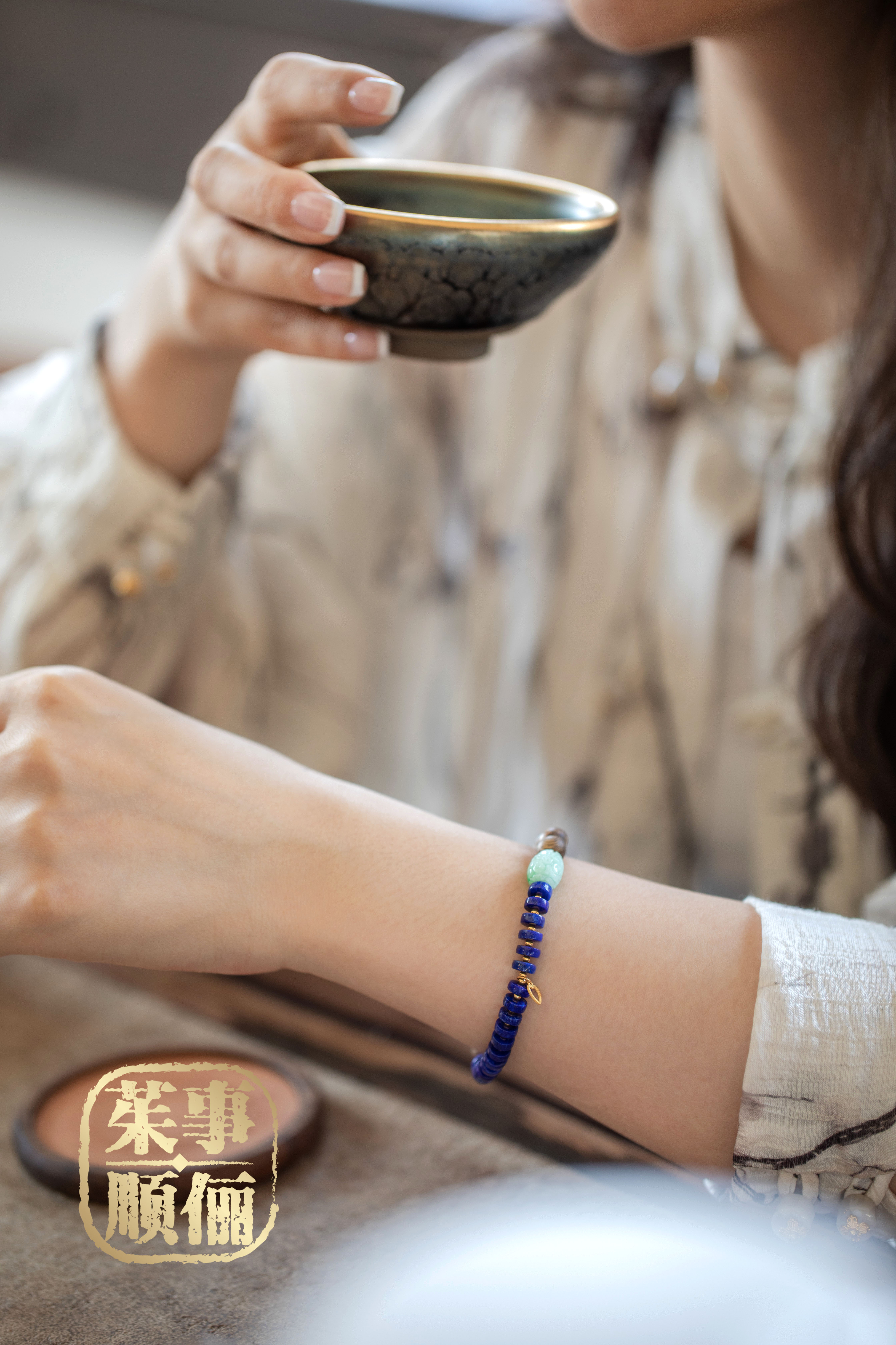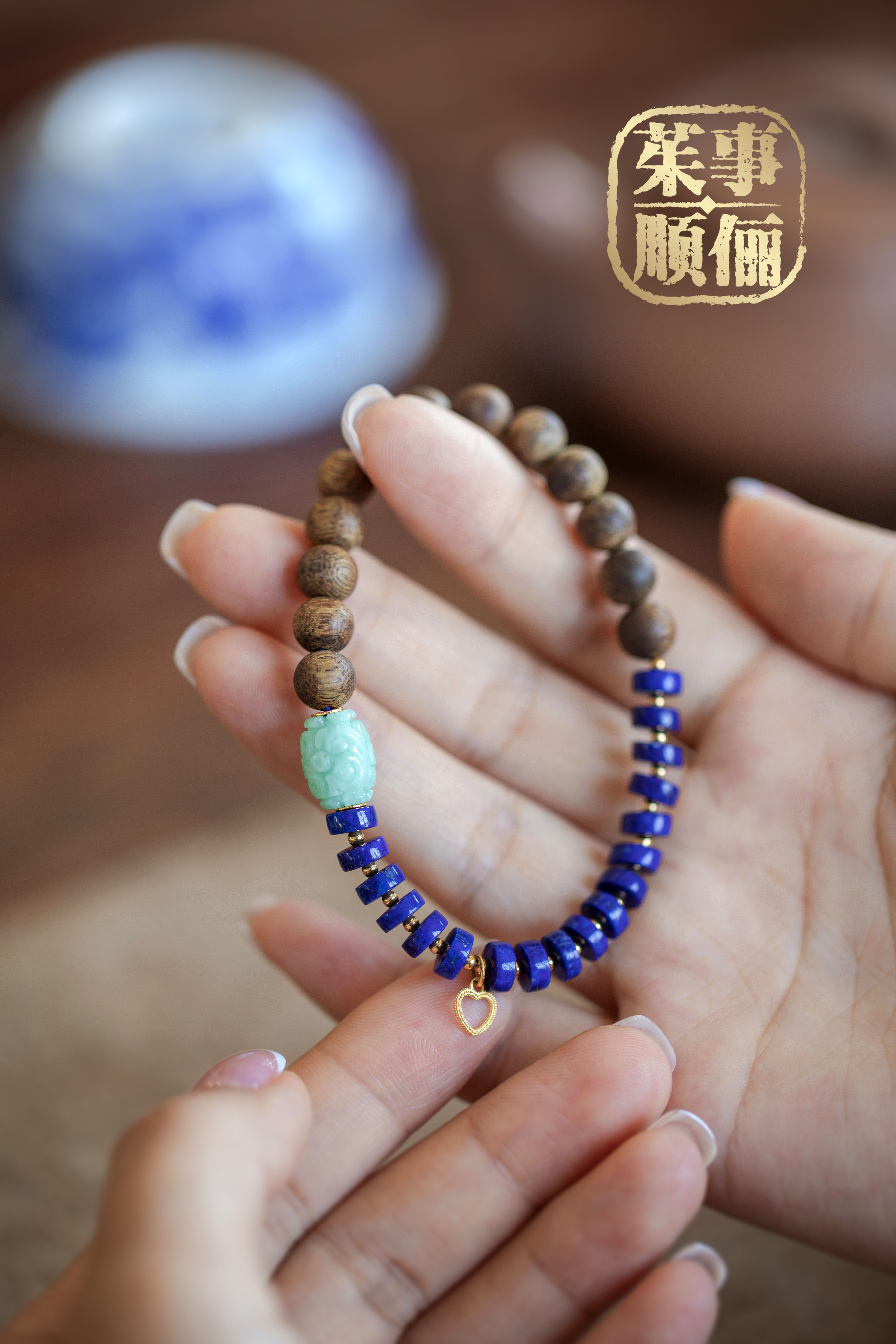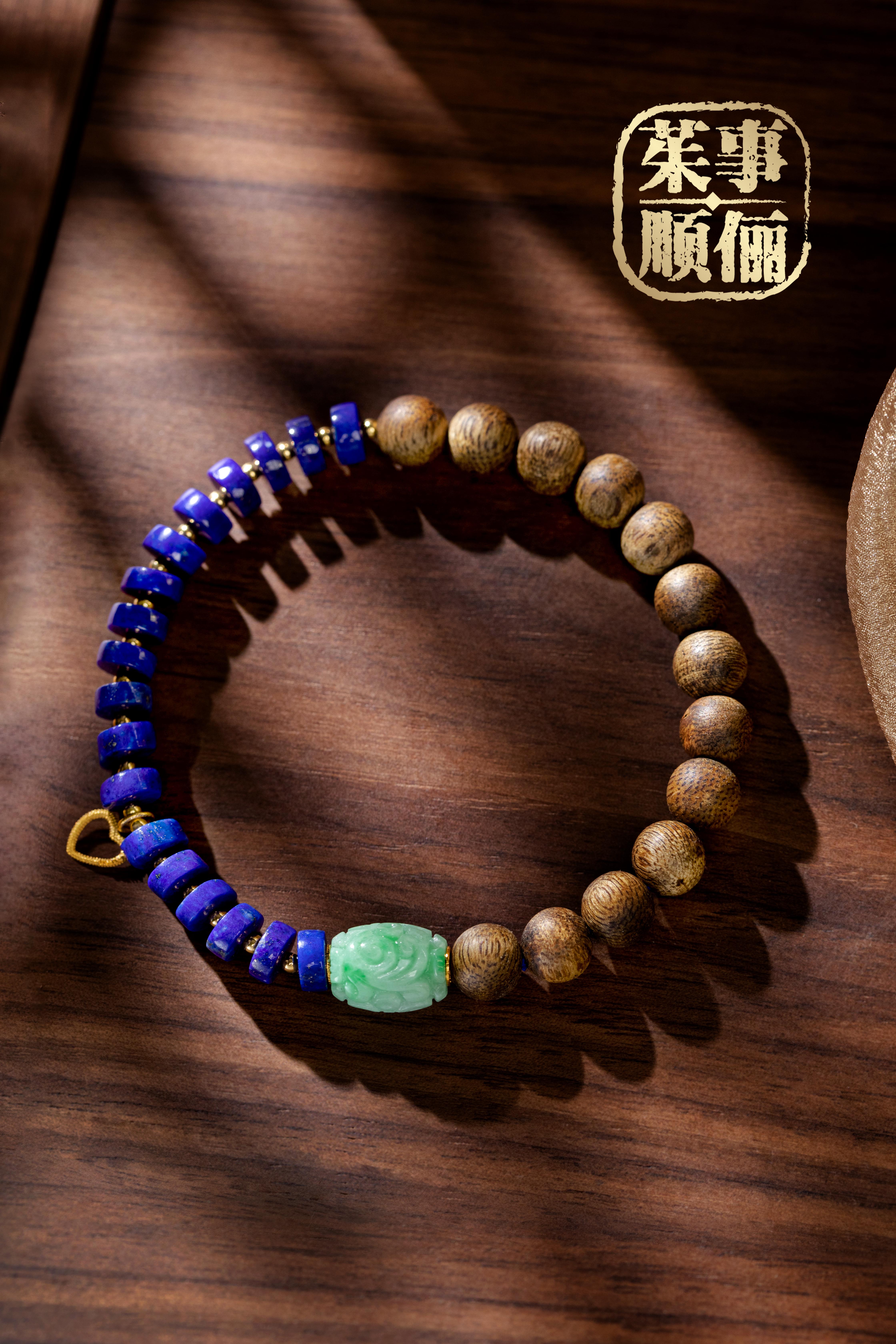 【茱事顺俪】18K黄金翡翠青金沉香手链