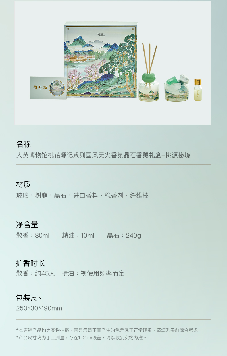 大英博物馆 桃花源记系列 国风无火香氛晶石香薰礼盒桃源秘境