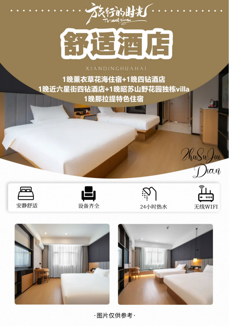 ✅住宿特色:1晚薰衣草花海住宿+2晚四钻酒店+1晚那拉提特色住宿+1晚昭苏山野花VILLA;