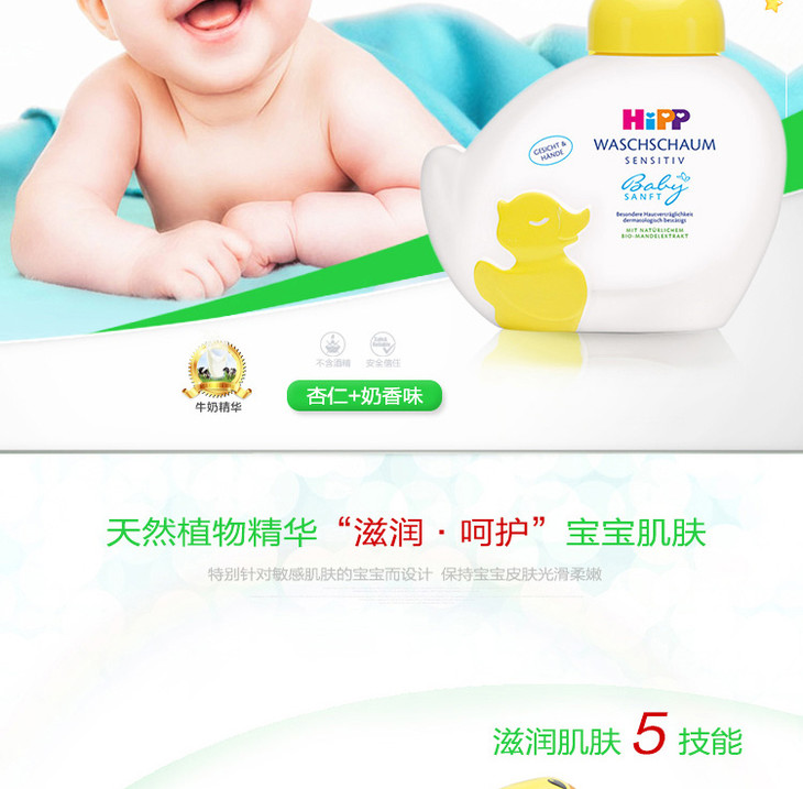 【保税仓】HIPP/德国喜宝 小海豹天然有机免敏洗发沐浴2合1 200ML