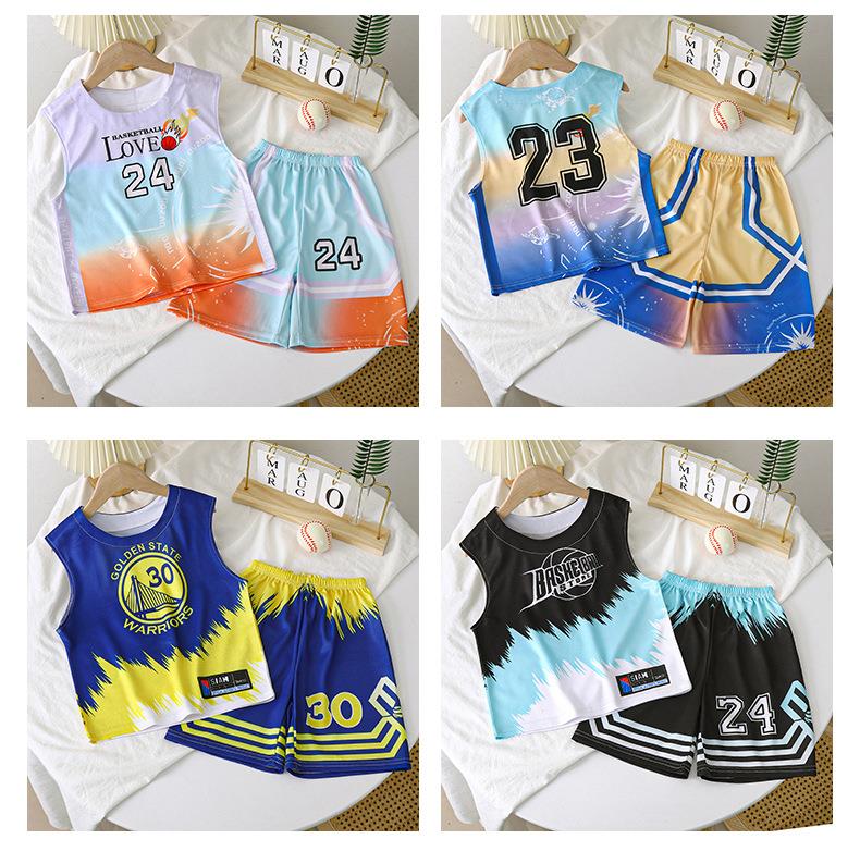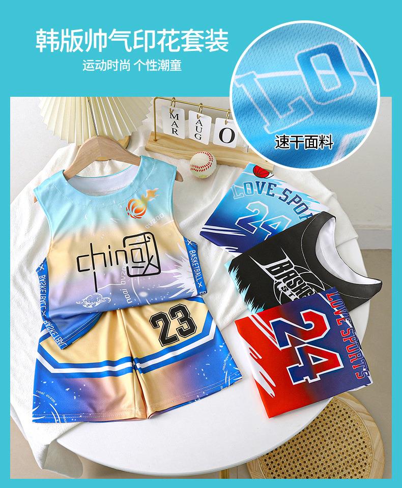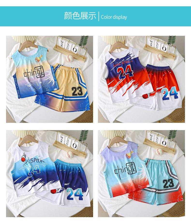 2023儿童渐变色篮球服套装中大童男女夏季背心运动宽松夏装球衣潮