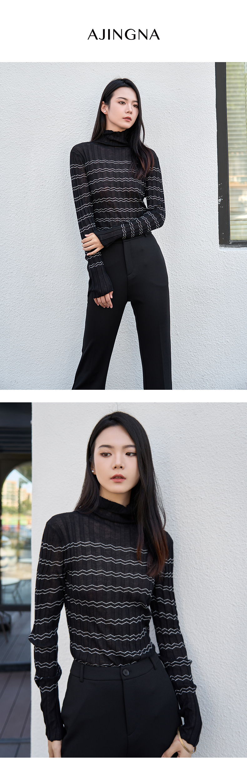 【商场同款】阿菁娜高领时尚条纹打底衫上衣A28Q301100