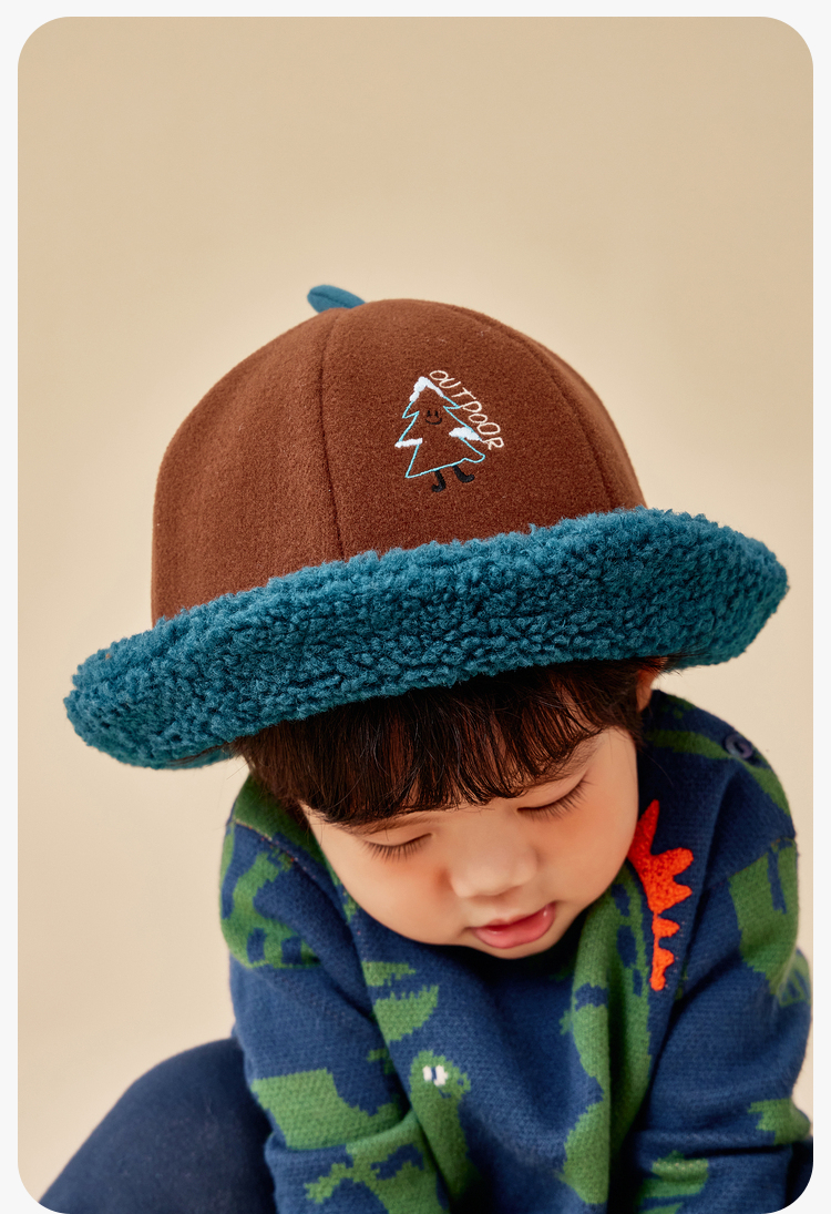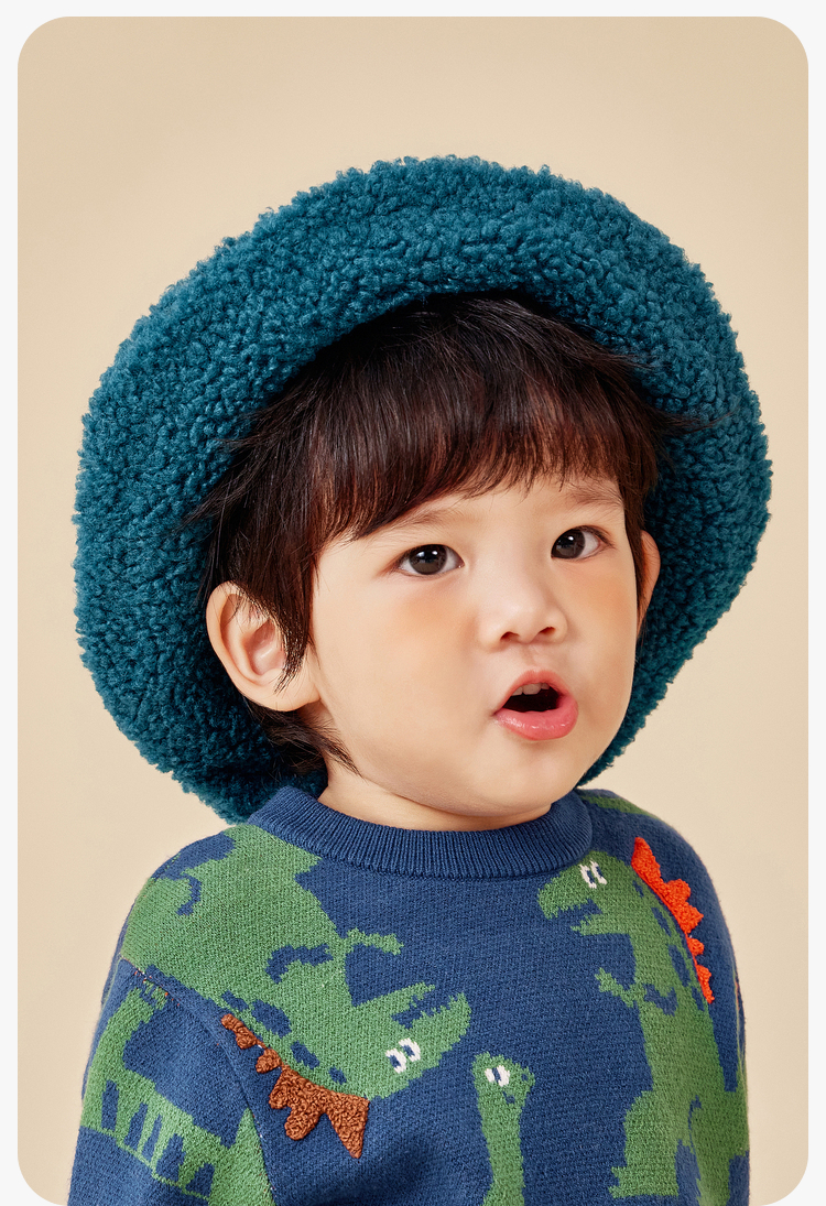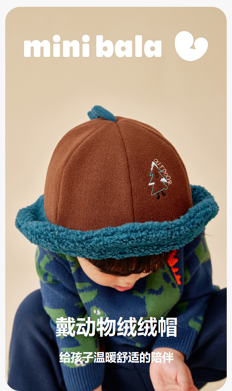 迷你巴拉男童女童帽子秋冬宝宝加绒保暖时尚洋气儿童盆帽