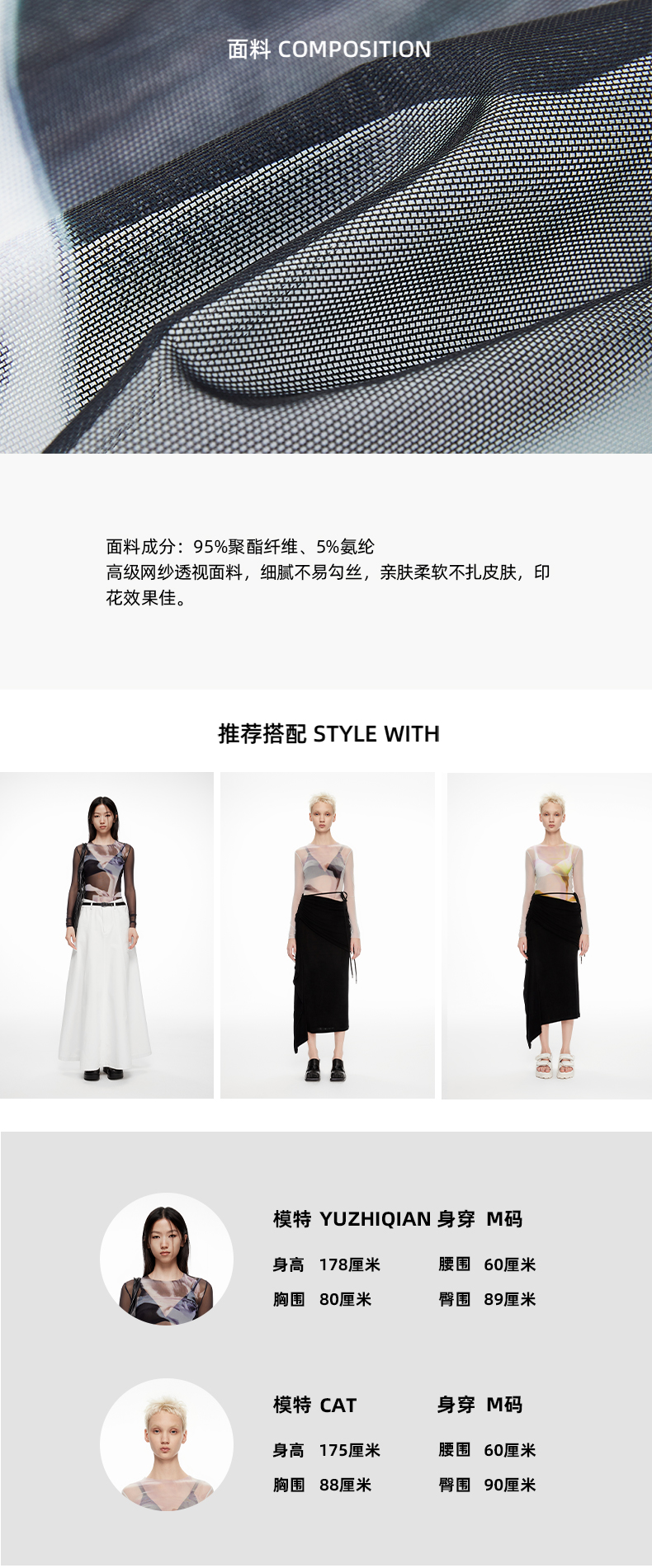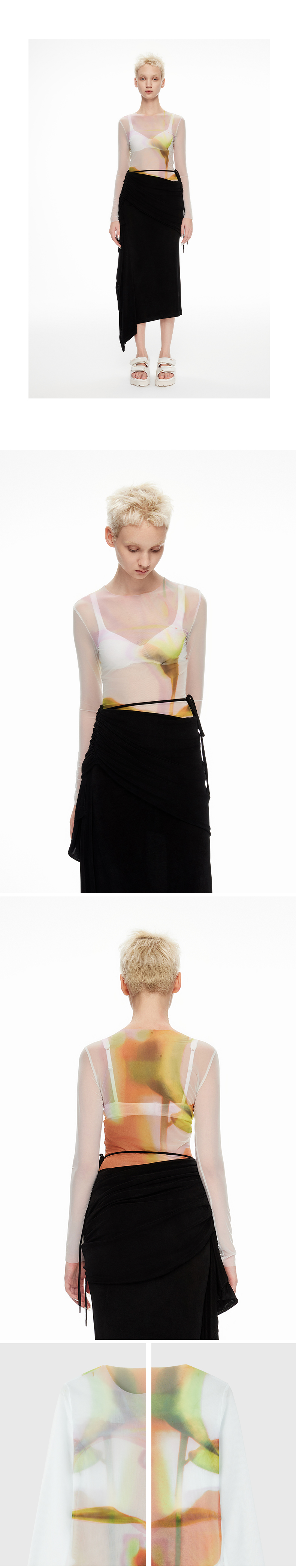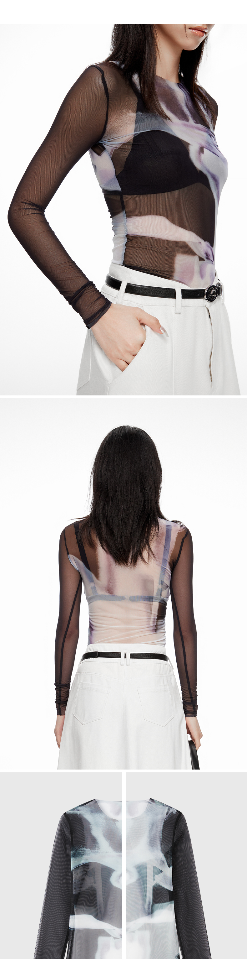 lost in echo2024春季新款设计师品牌光影独特印花网纱透视打底衫