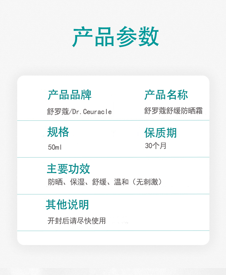 【买一赠一 】韩国院线防晒舒罗蔻舒缓防晒霜SPF50+ PA++++ 积雪草清爽水润防紫外线面部隔离乳 50ml/支