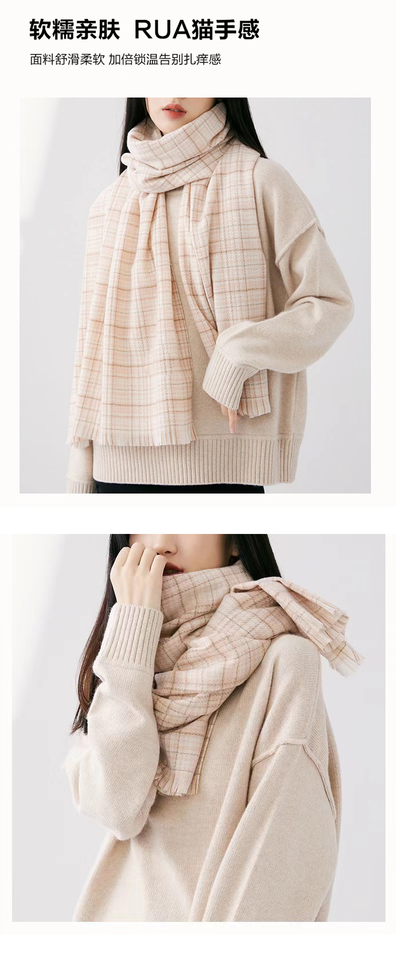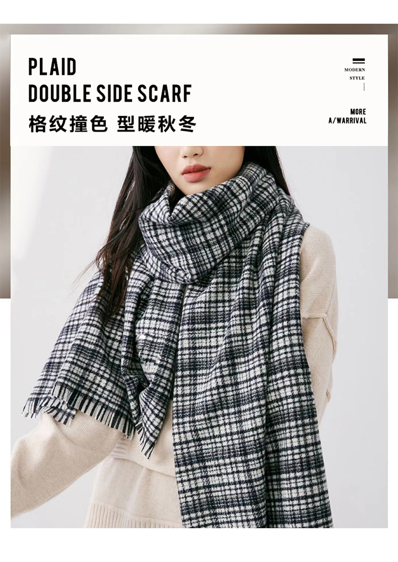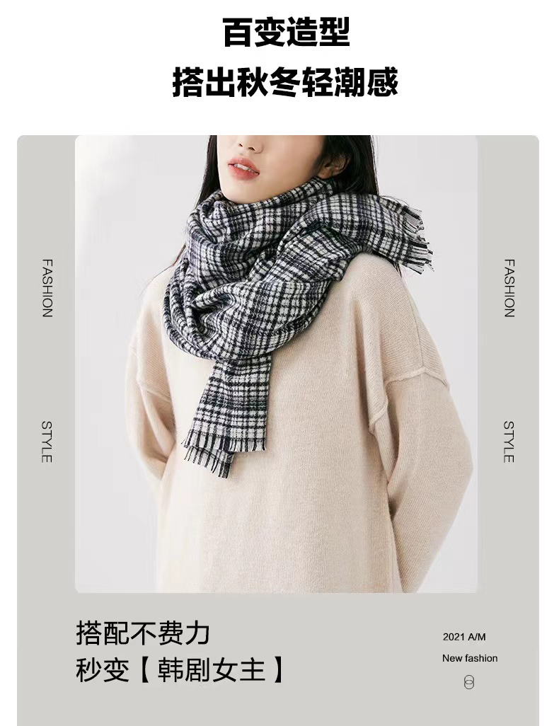 阿菁娜秋冬氛围感英伦复古格纹围巾女韩版时髦百搭披肩保暖围脖F26Q320013