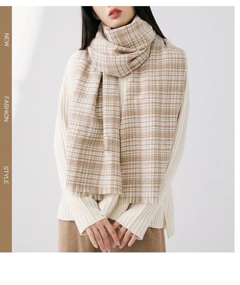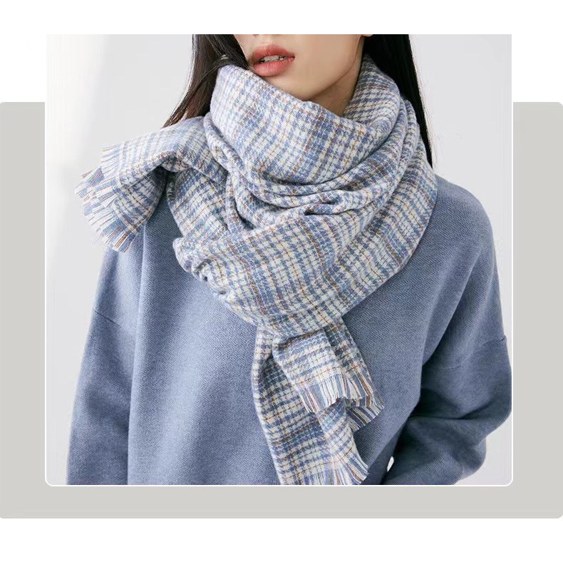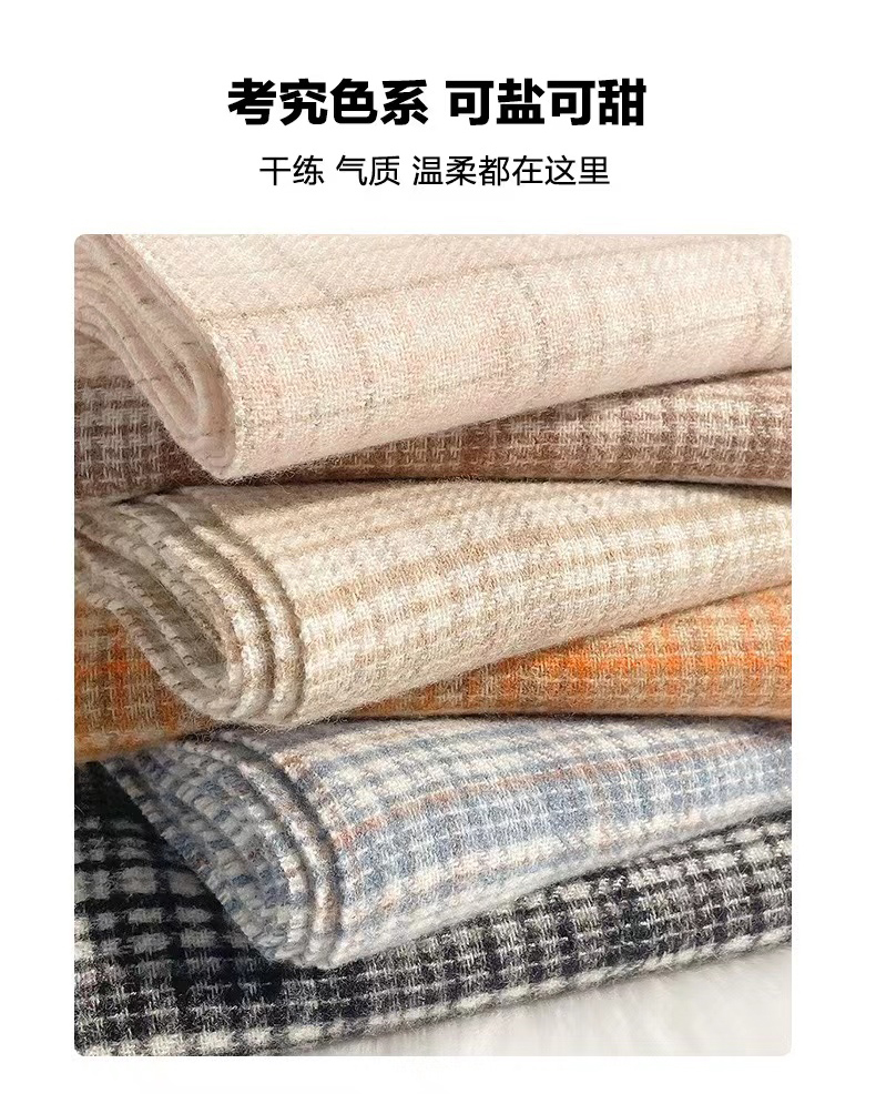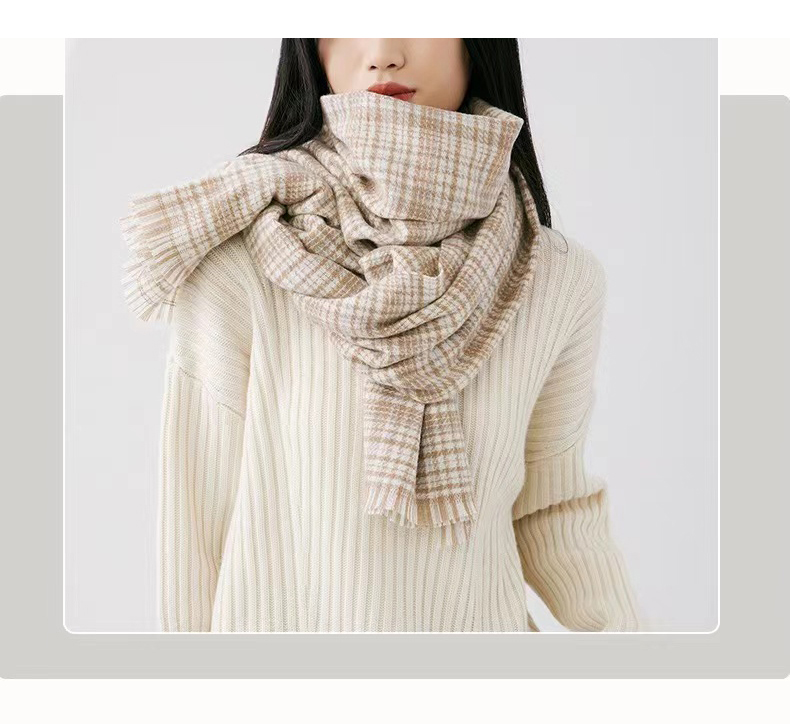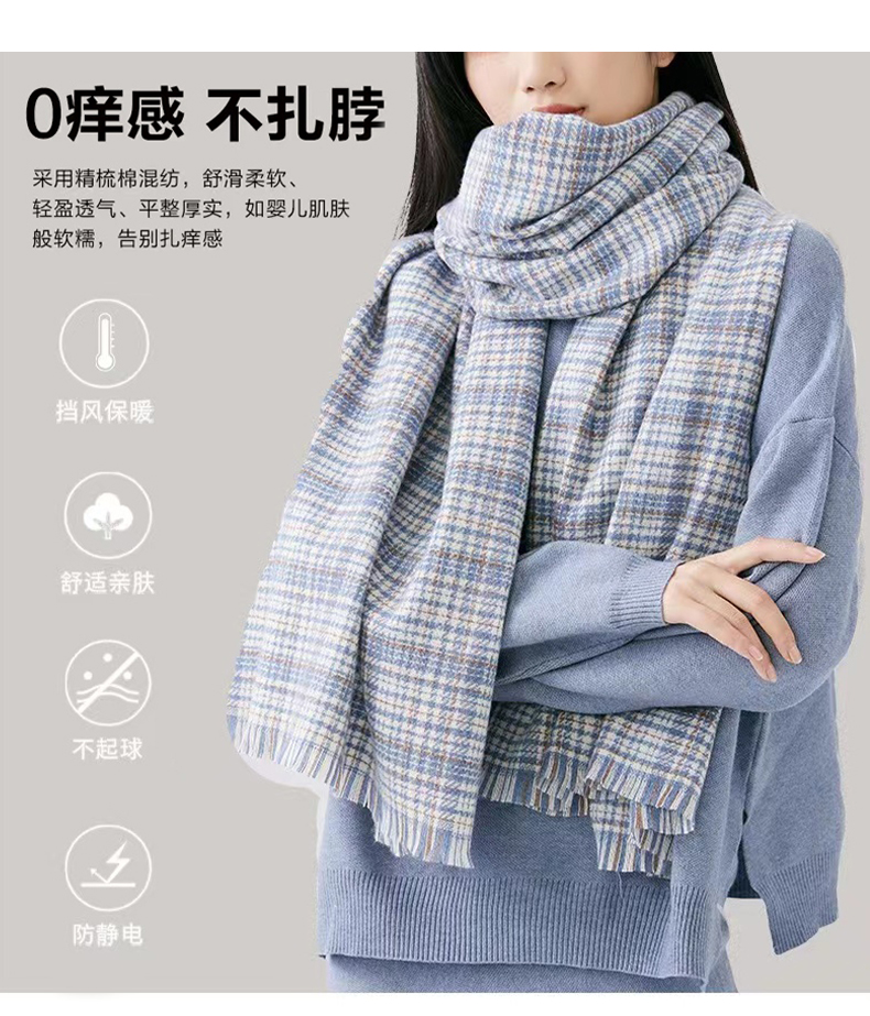 阿菁娜秋冬氛围感英伦复古格纹围巾女韩版时髦百搭披肩保暖围脖F26Q320013