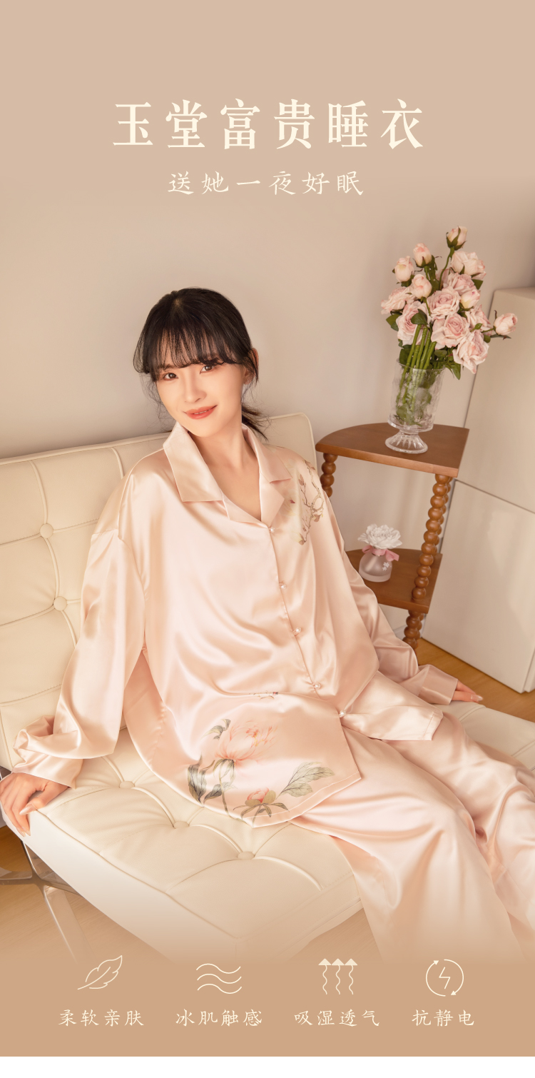【故宫家居】玉堂富贵缎面睡衣套装新婚结婚生日礼物