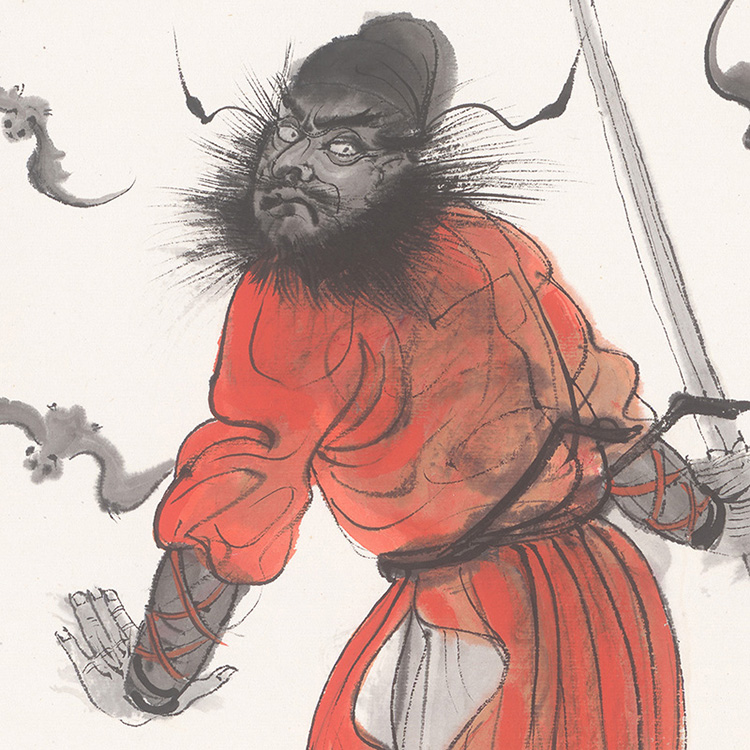 高精原大打印,与原作无二画框为铝合金哑光白。(非限量)画芯尺寸:70cmx27cm外框尺寸:80cmx38cmx3.5cm钟馗出巡背手剑钟馗双蝠穿衣钟馗练功毛钟馗换衣钟馗哈欠钟馗五福钟馗其他尺寸