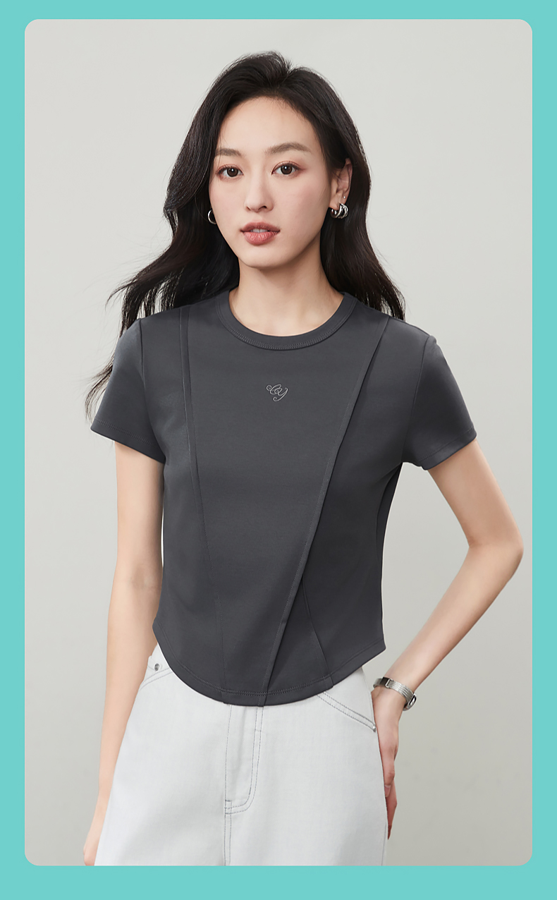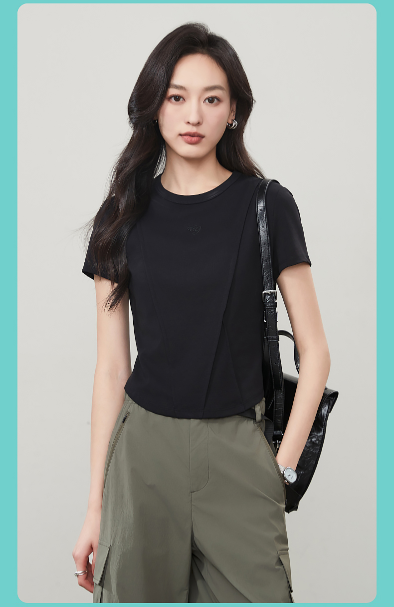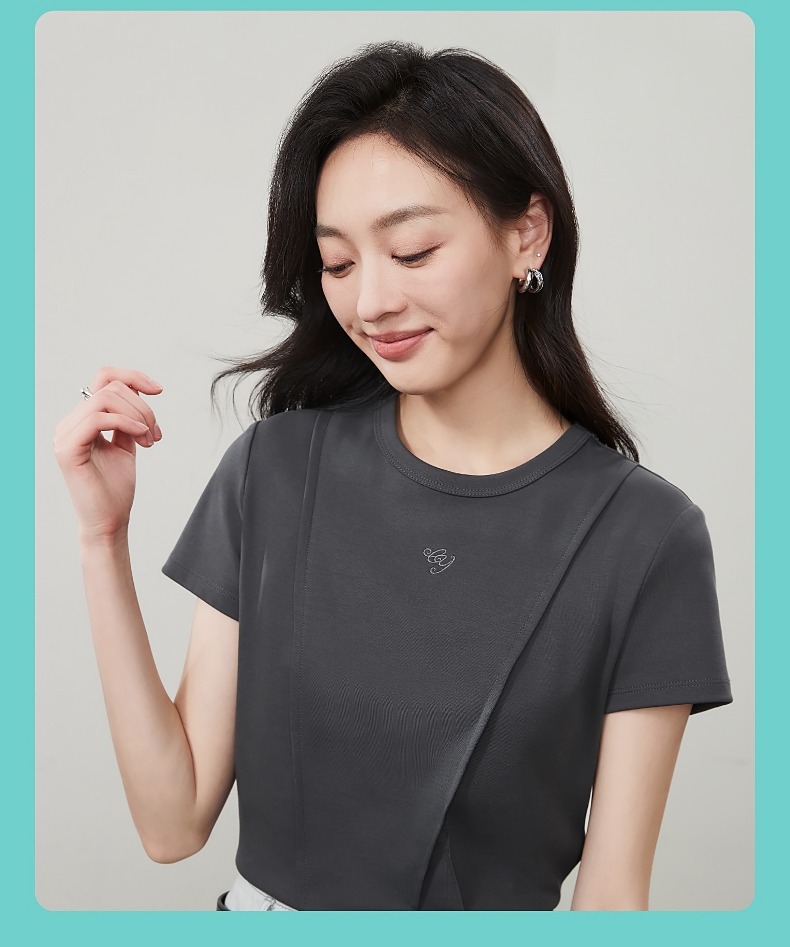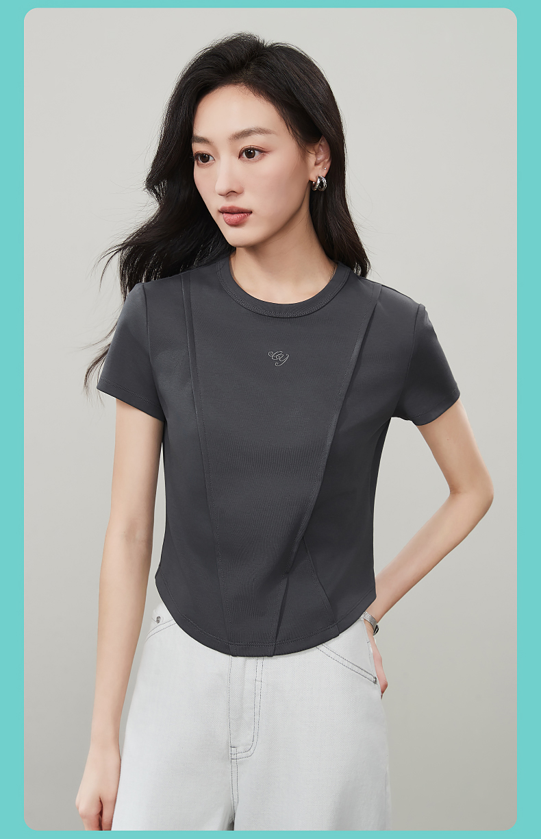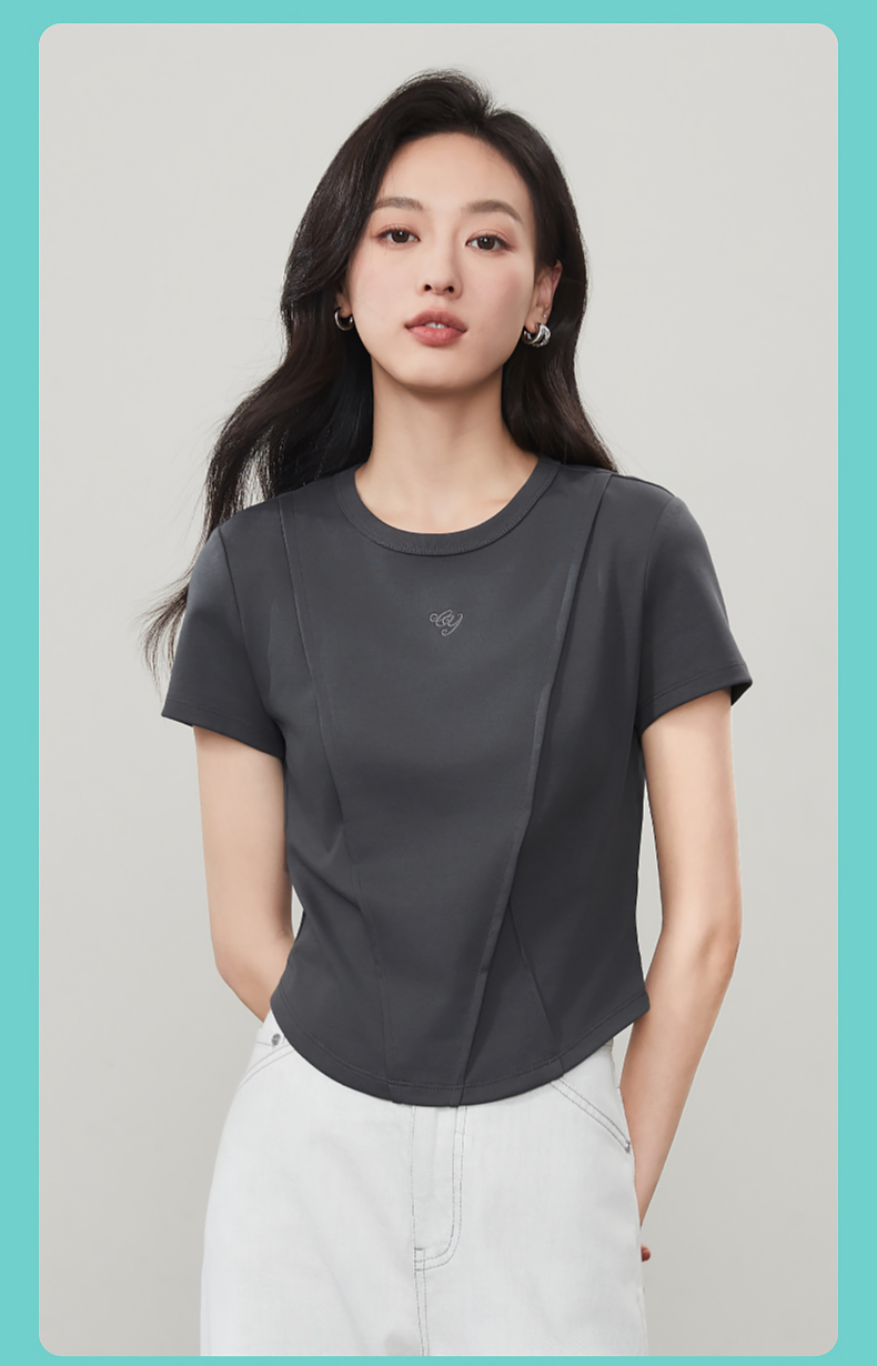 【立体分割正肩T恤】逸阳夏新款柔软抗菌刺绣设计感上衣5146