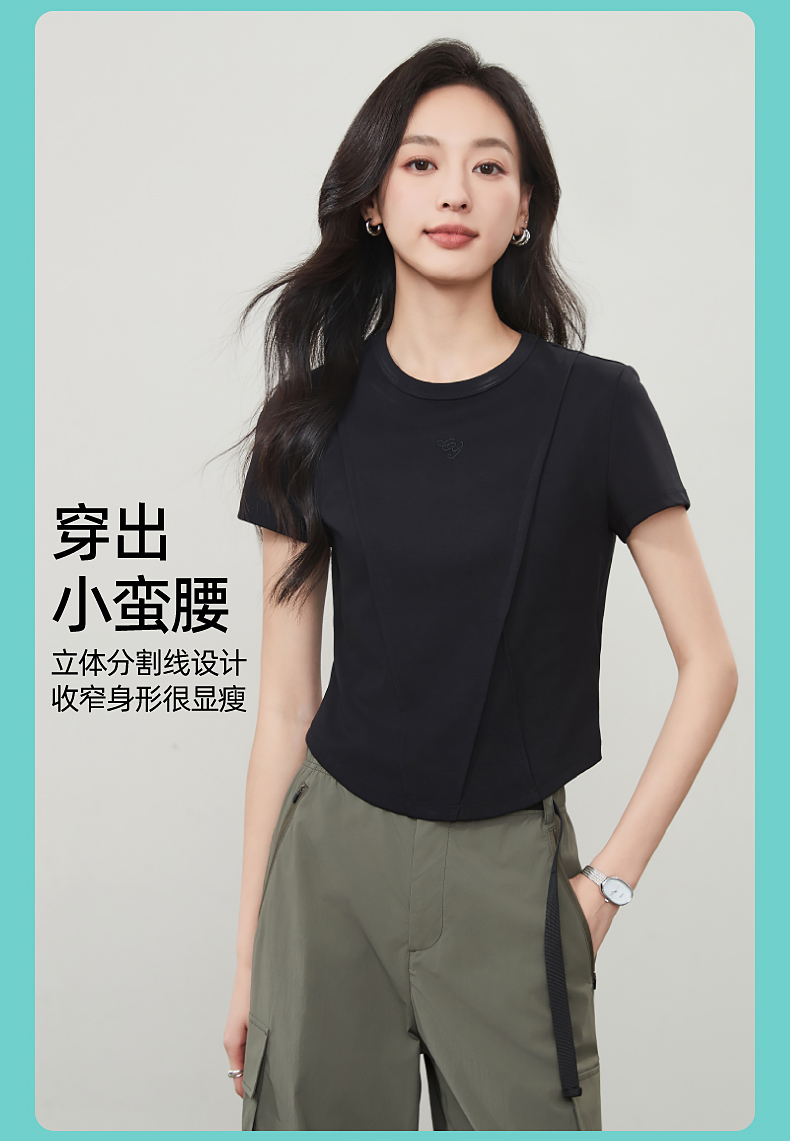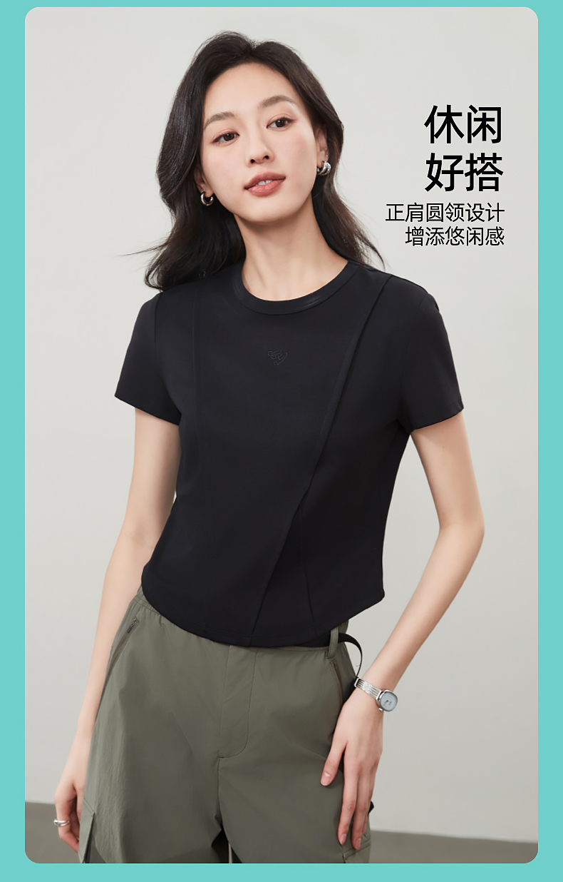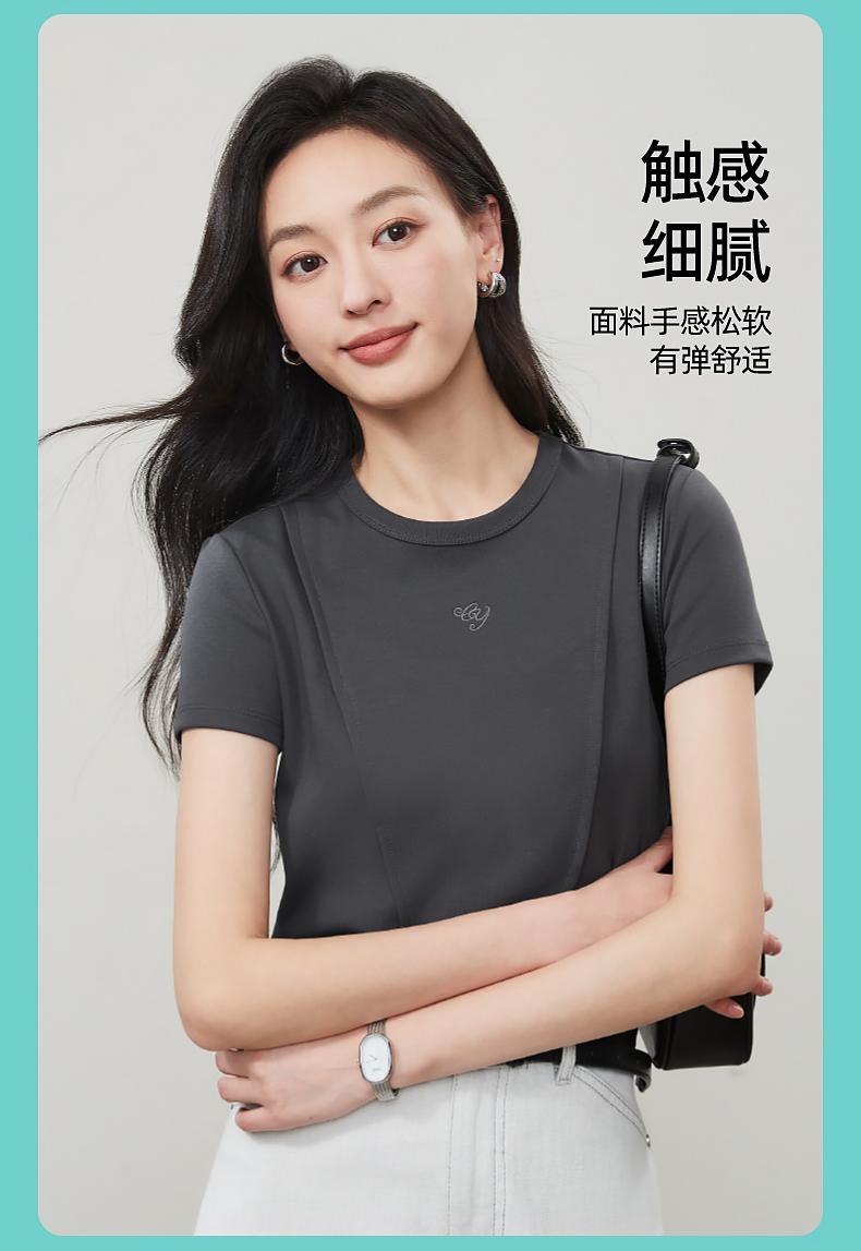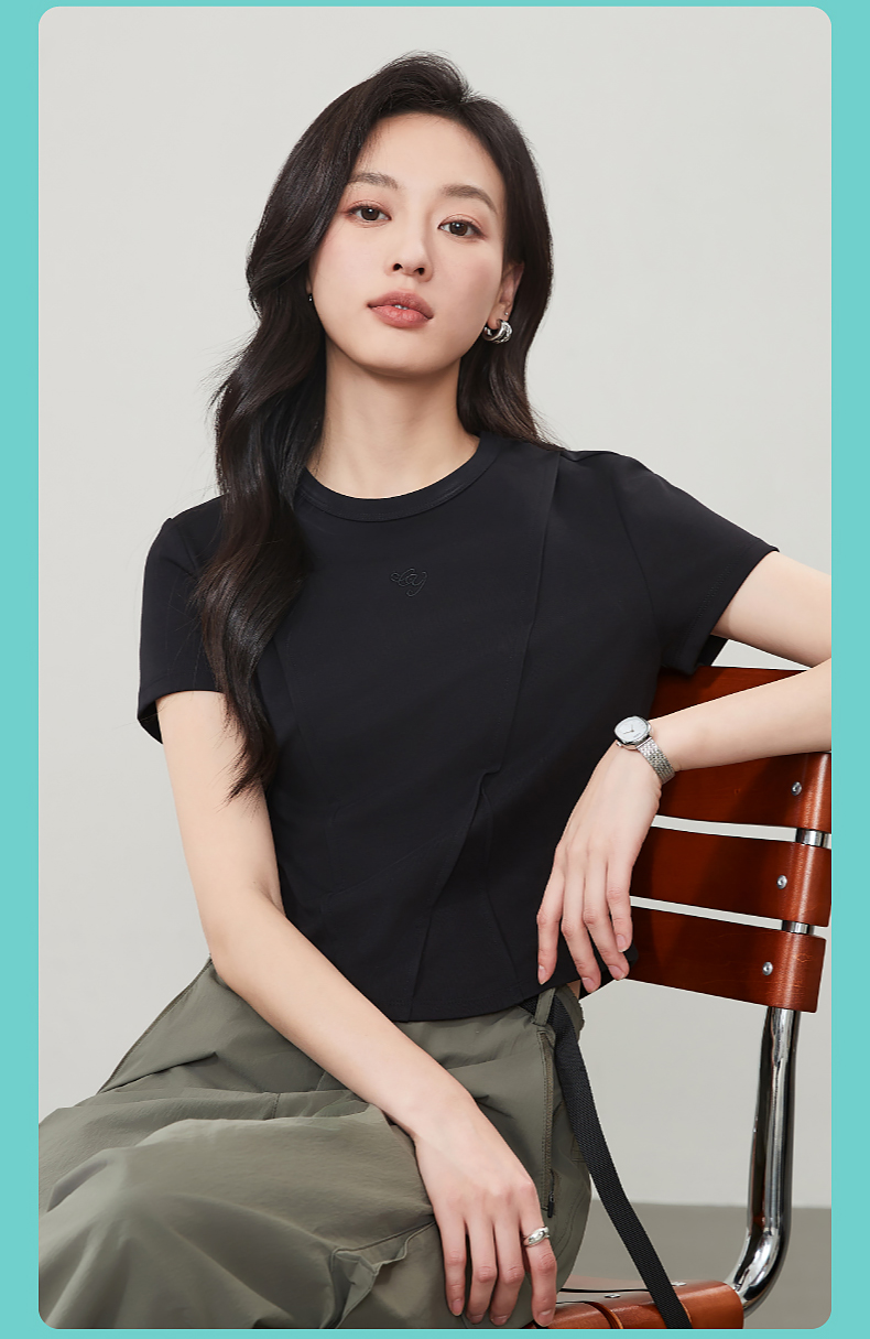 【立体分割正肩T恤】逸阳夏新款柔软抗菌刺绣设计感上衣5146