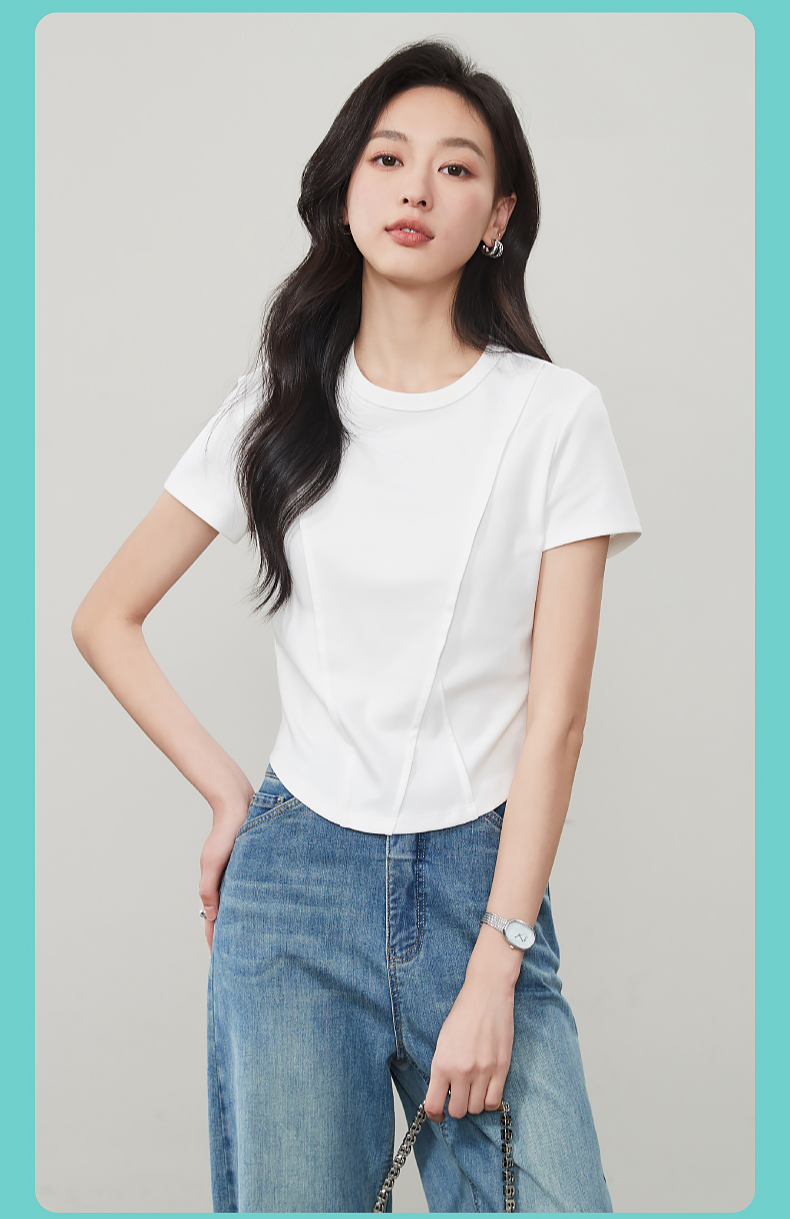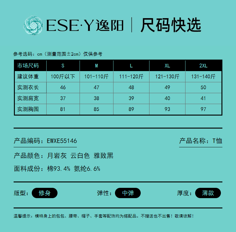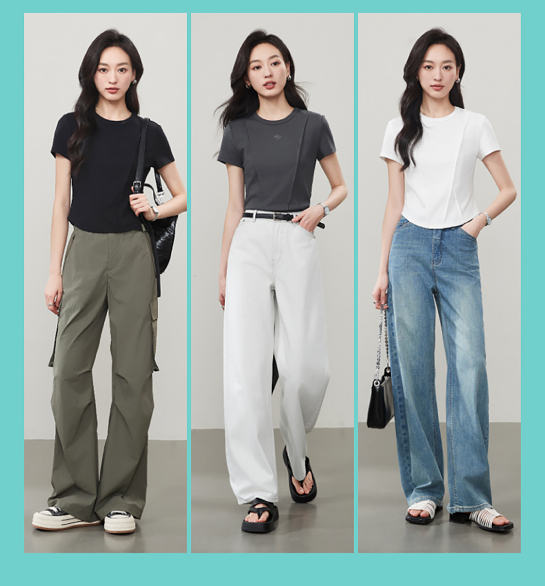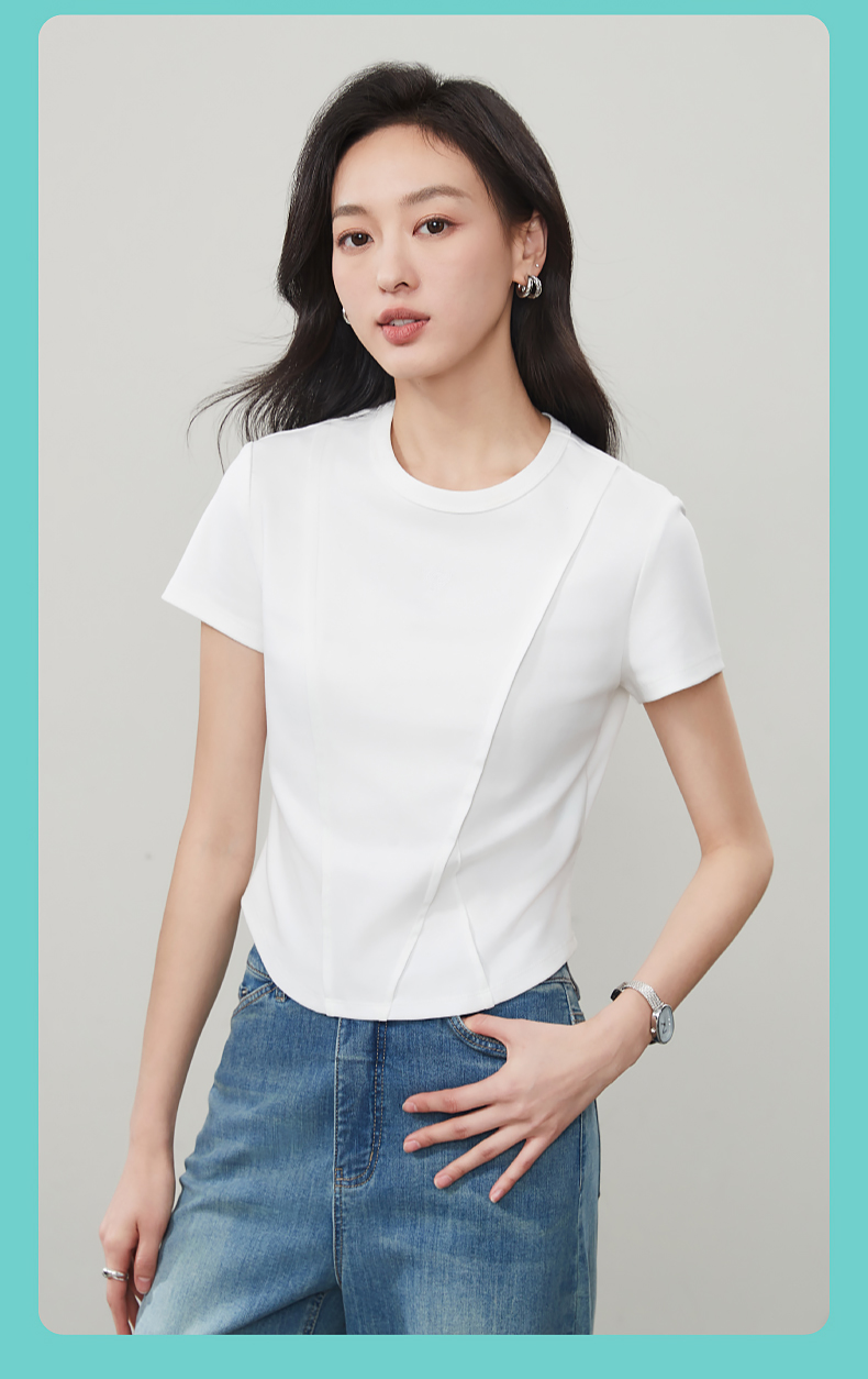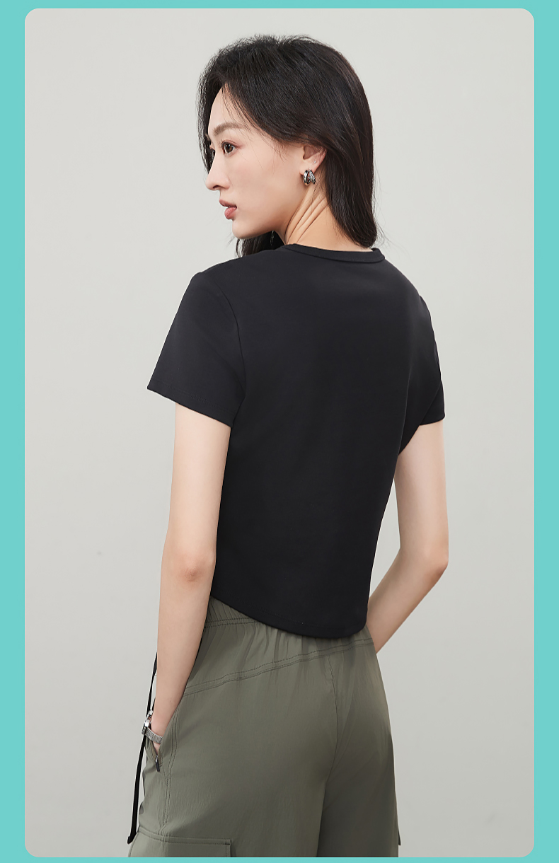 【立体分割正肩T恤】逸阳夏新款柔软抗菌刺绣设计感上衣5146