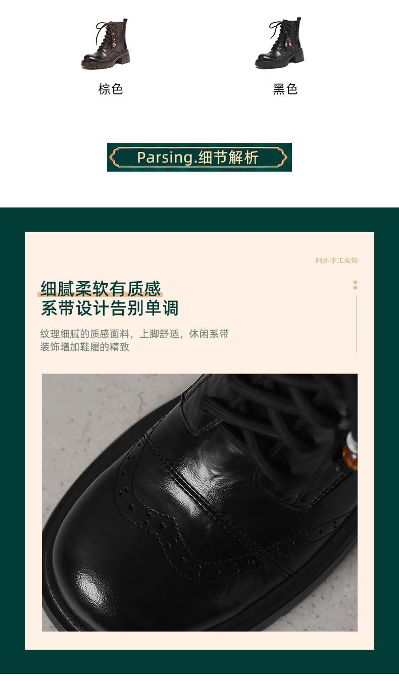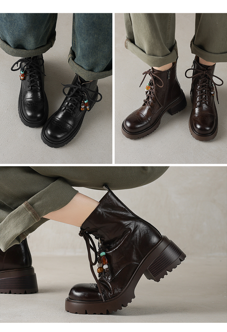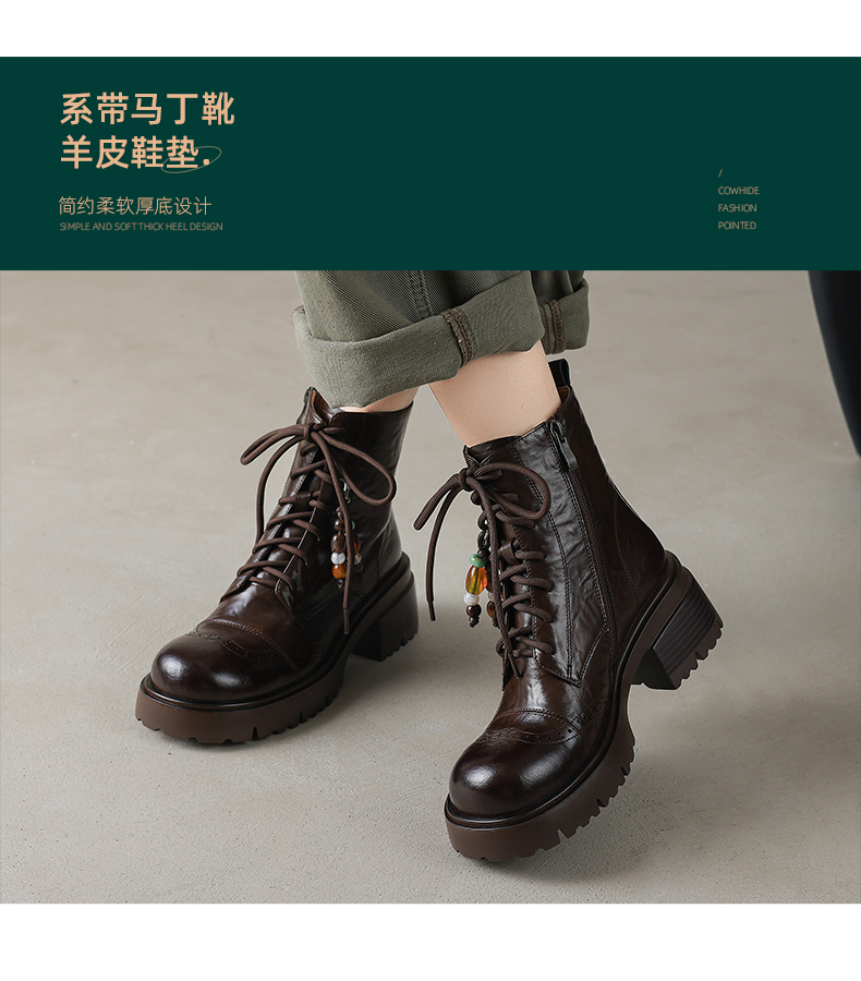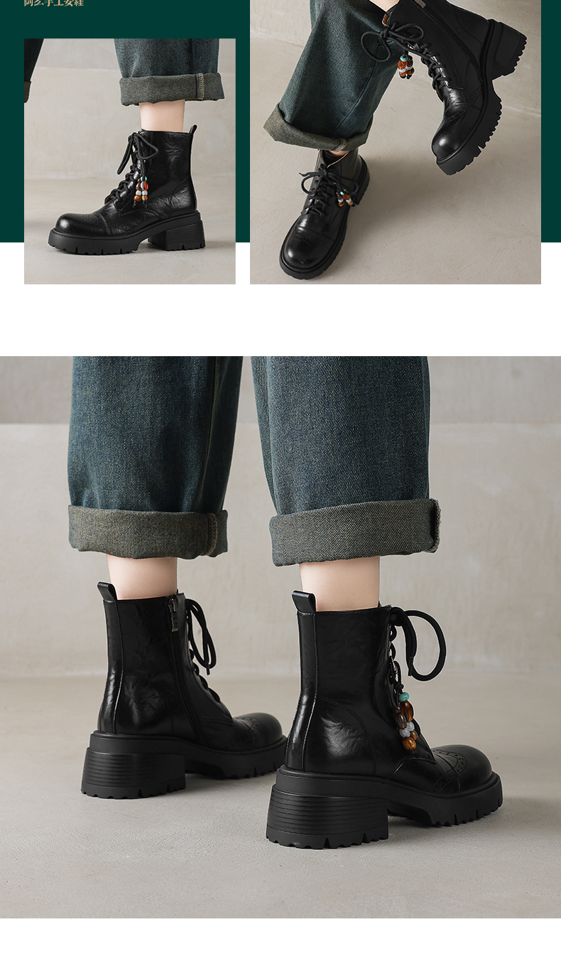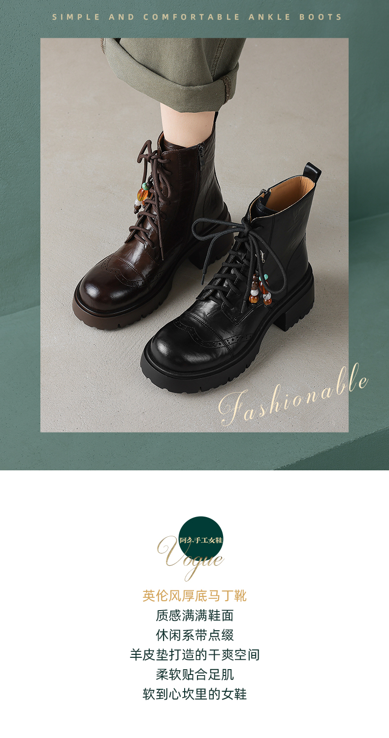 阿么手工女鞋潮流马丁靴女厚底彩色串珠小众民族风真皮短靴6.5CM