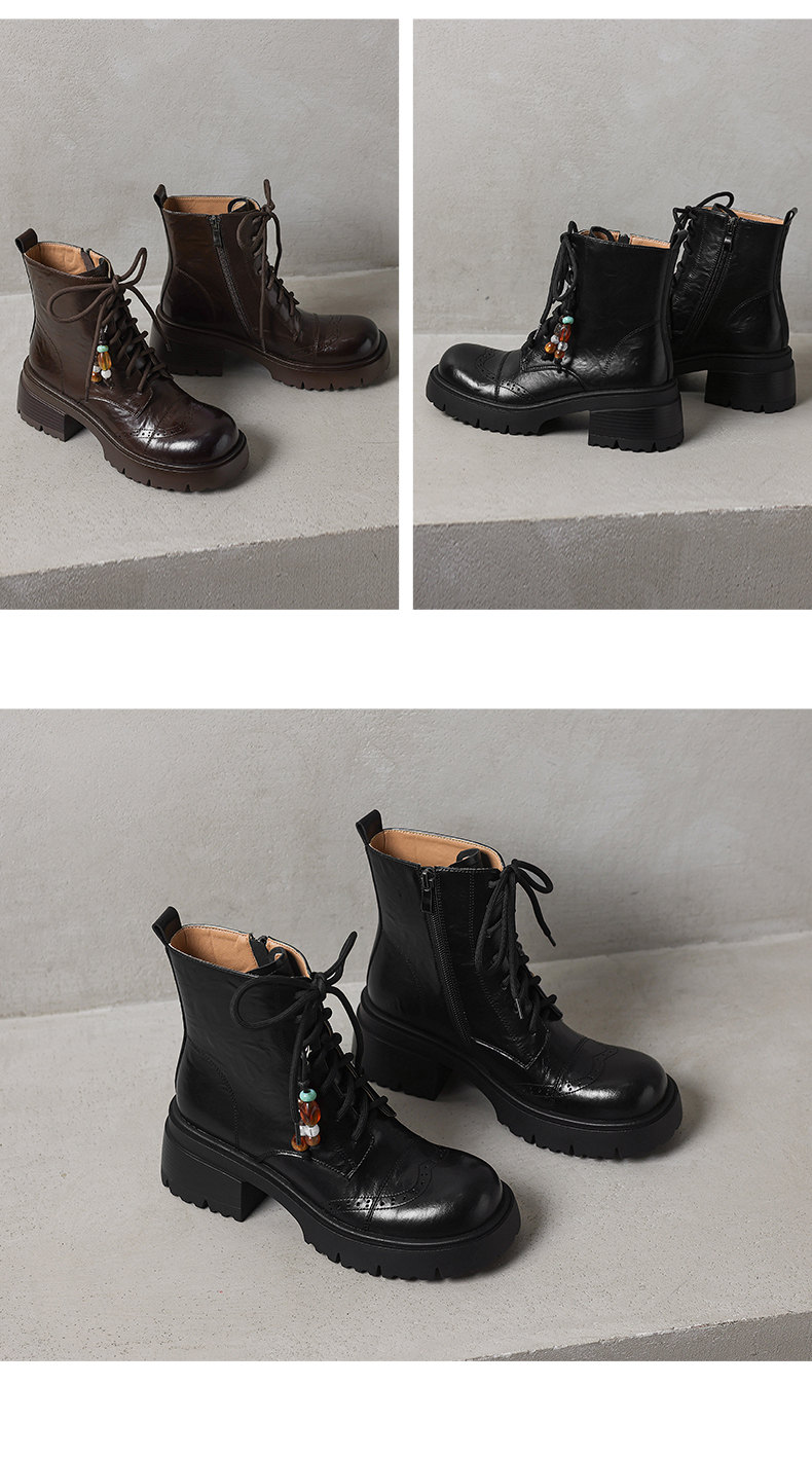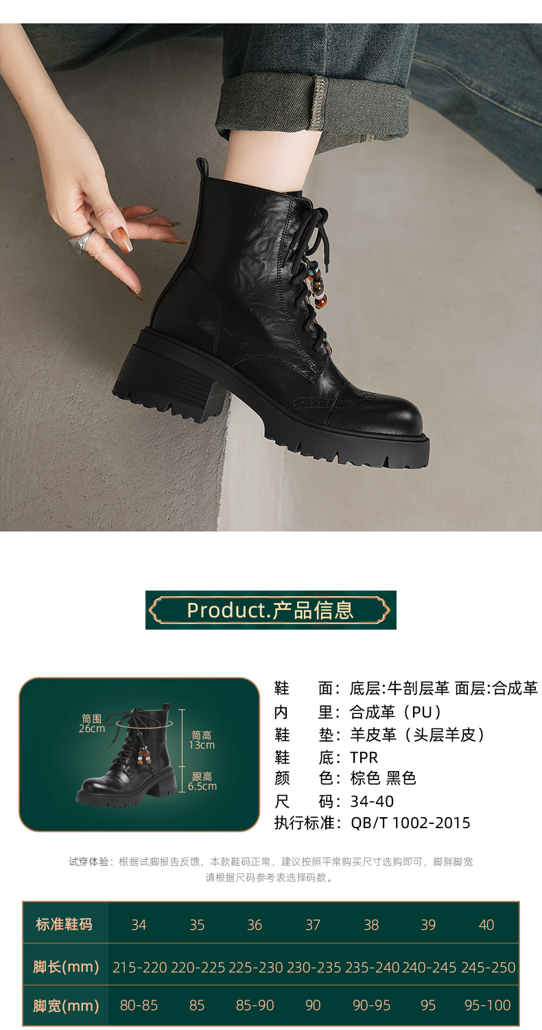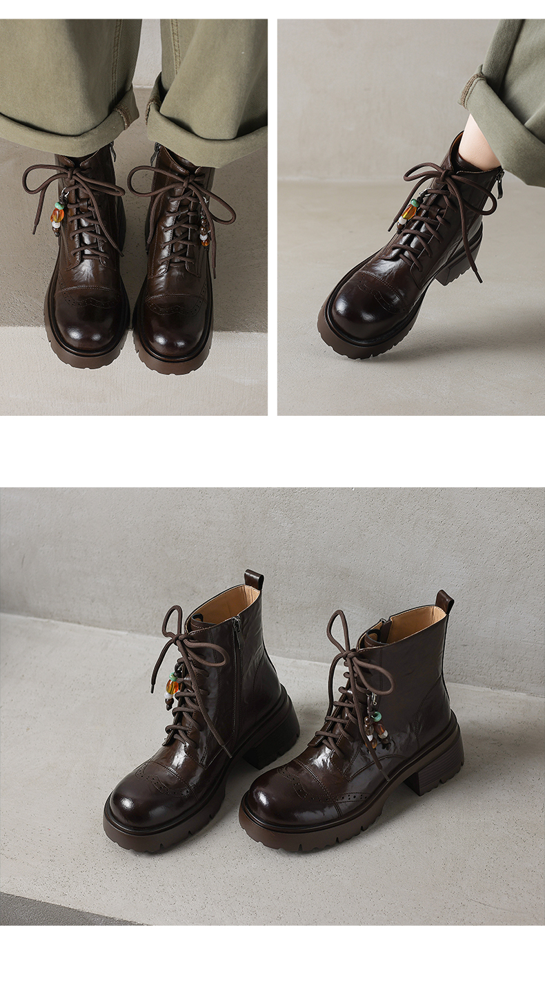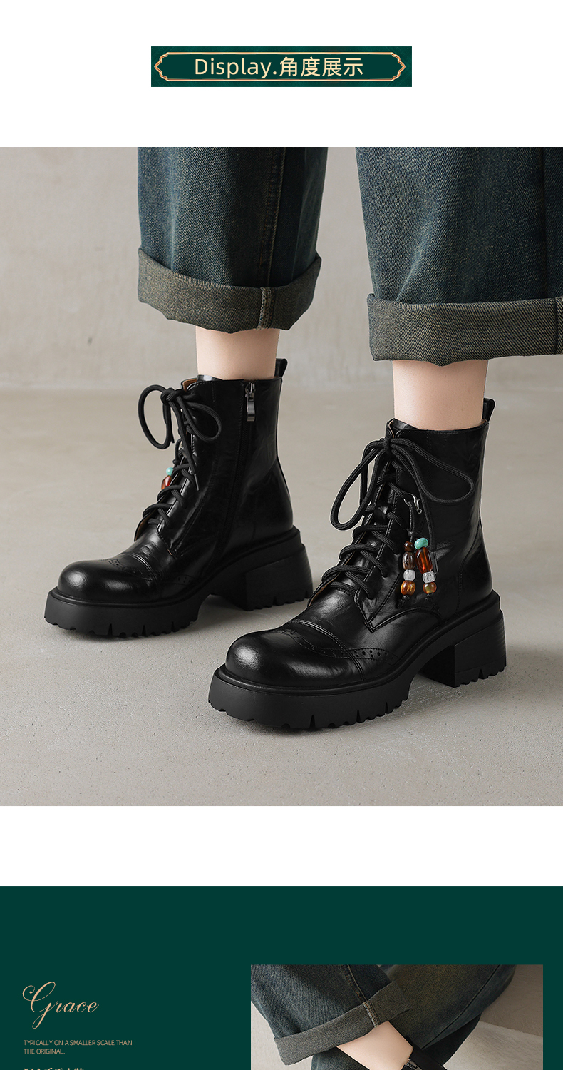 阿么手工女鞋潮流马丁靴女厚底彩色串珠小众民族风真皮短靴6.5CM