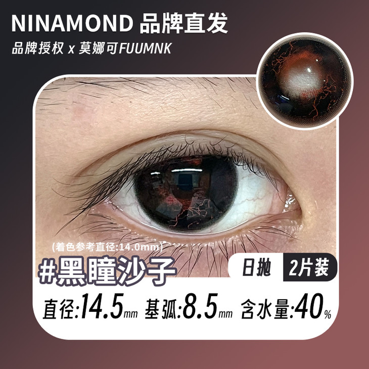 ninamond日抛cos 黑瞳沙子 直径14.5mm着色14.0mm (两片装)