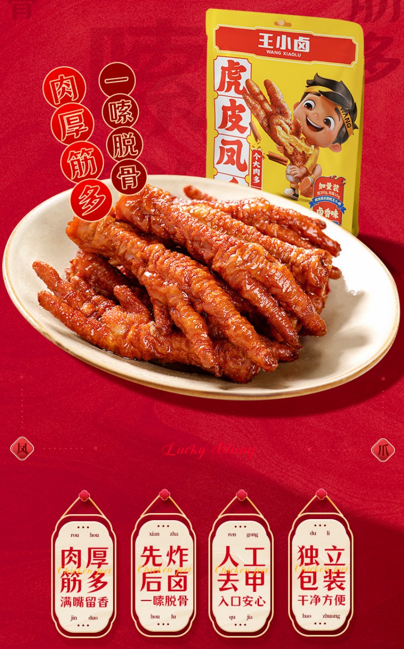 王小卤虎皮凤爪 火锅味210g 鸡爪卤鸡爪 休闲零食 独立包装