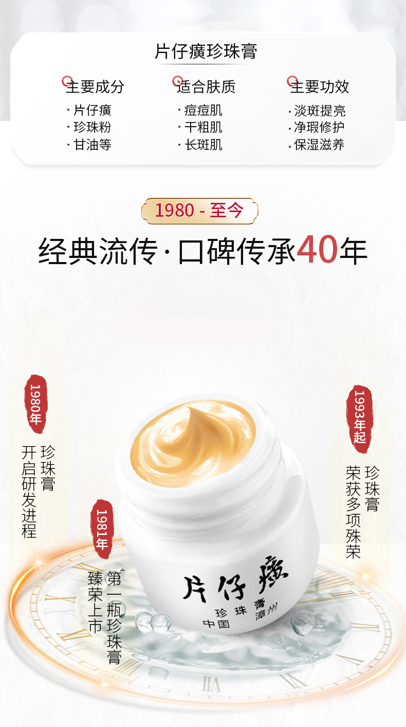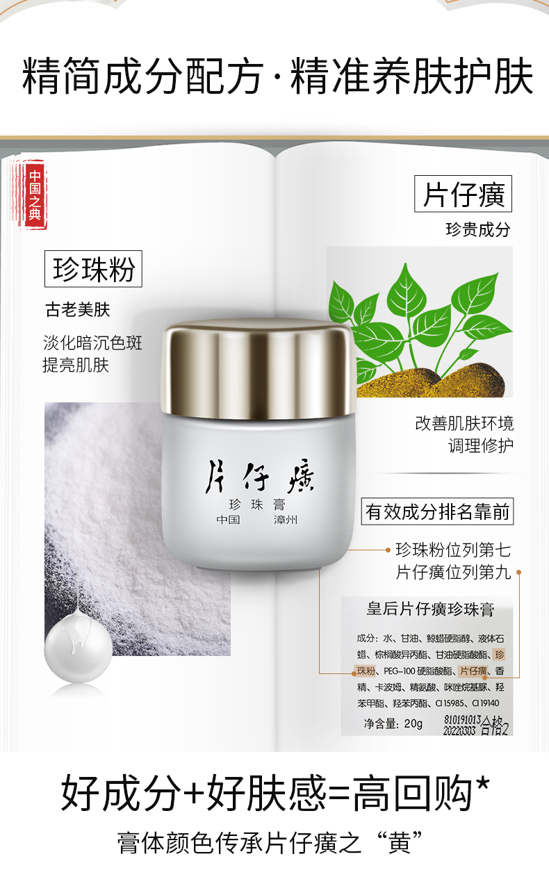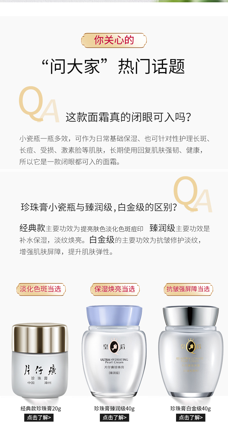 【臻选美妆】【国潮臻选】皇后牌片仔癀珍珠膏珍珠霜 祛痘印润白亮肤改善暗沉补水保湿国货护肤品 珍珠膏20g【礼享生活】