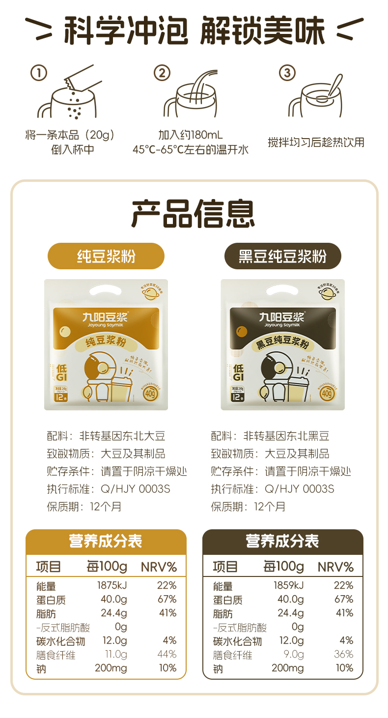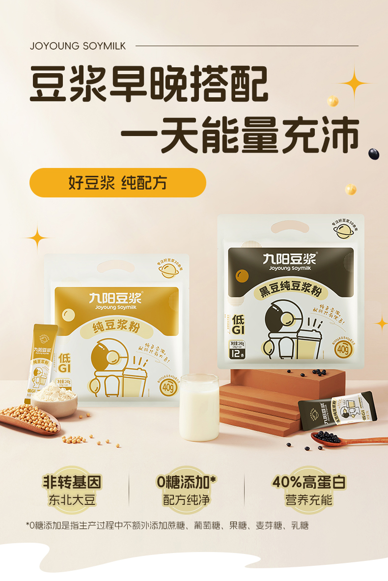 【2袋尝鲜】0糖添加九阳太空豆浆纯豆12条*原味豆浆粉早餐营养健身