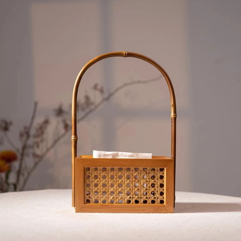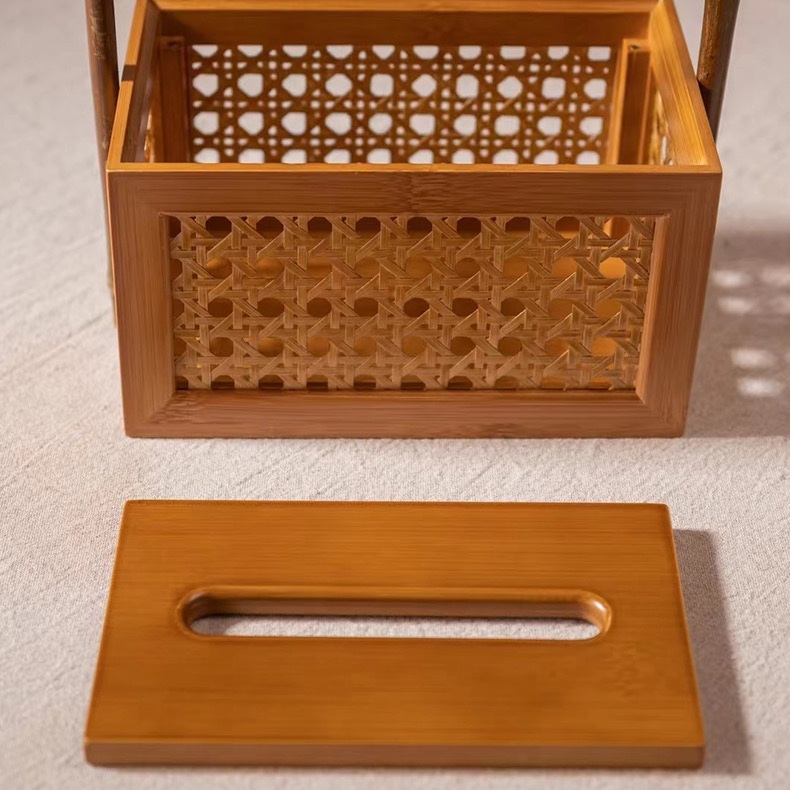 RW 家用客厅抽纸盒手提式家居楠竹餐巾盒茶桌功夫禅意装饰摆件纸巾盒